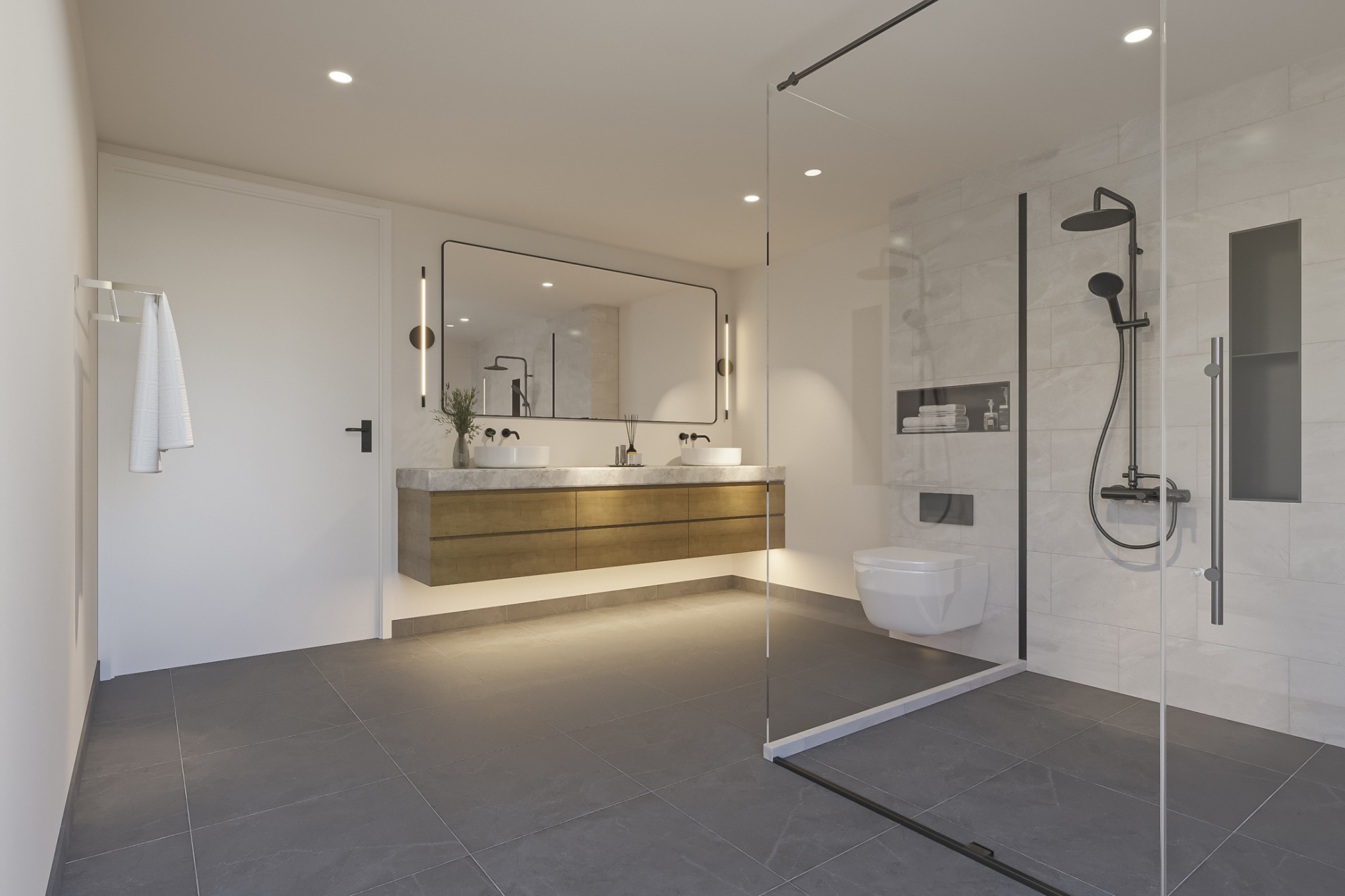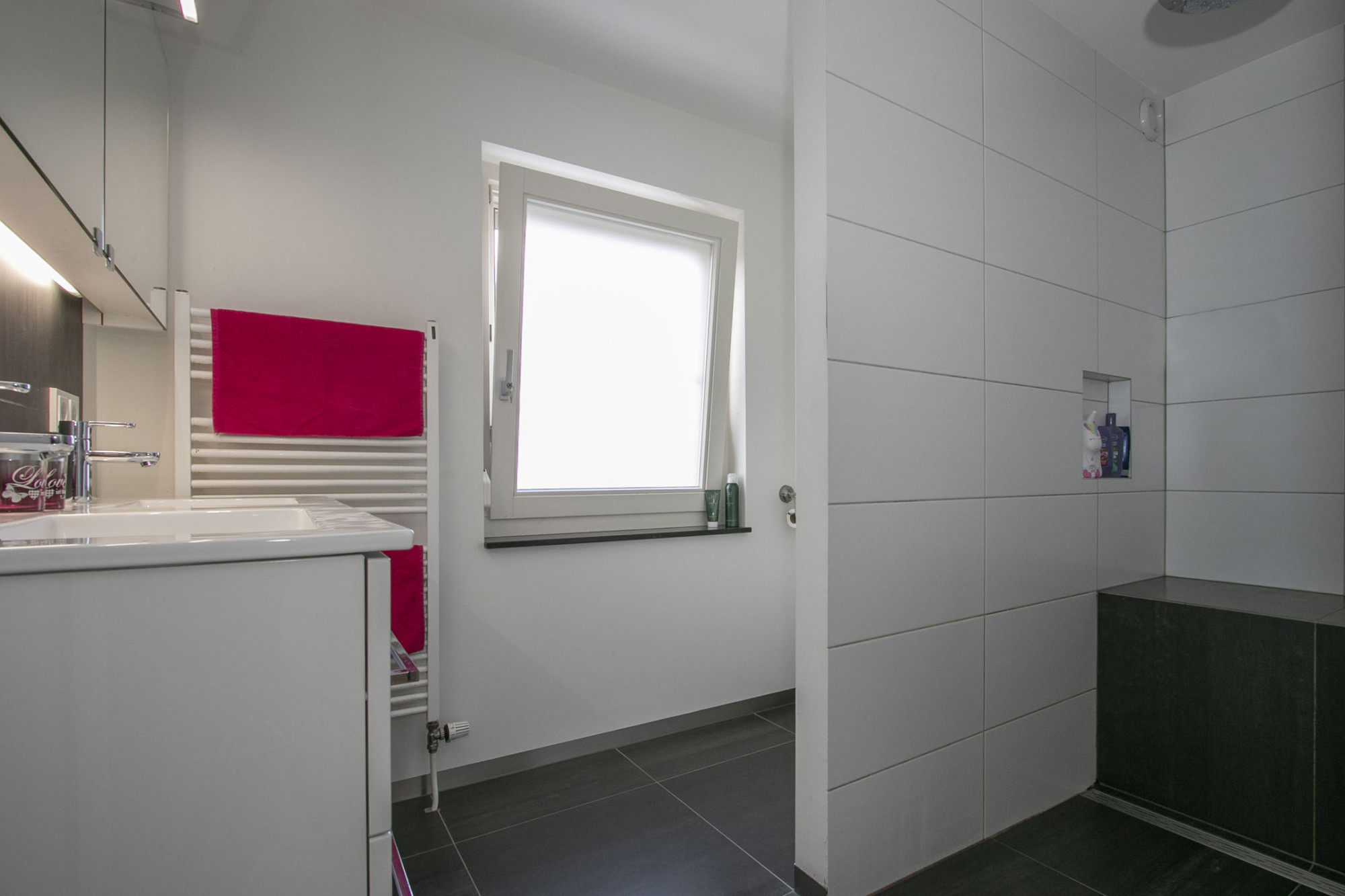 Op deze mooi gerenoveerde verdieping bevinden zich de overloop met airco, twee grote slaapkamers en een middelgrote kamer en een luxe badkamer met inloopdouche, wandcloset, een dubbel wastafelmeubel en vloerverwarming.