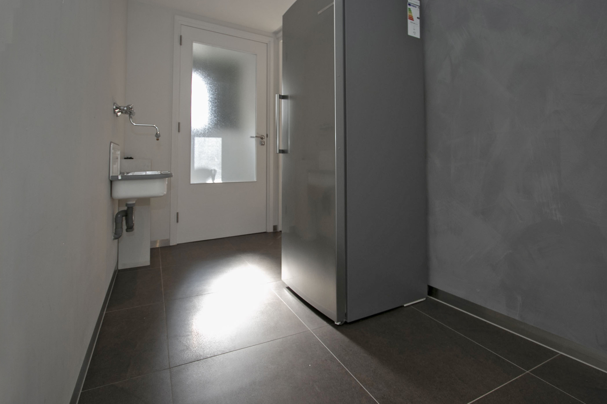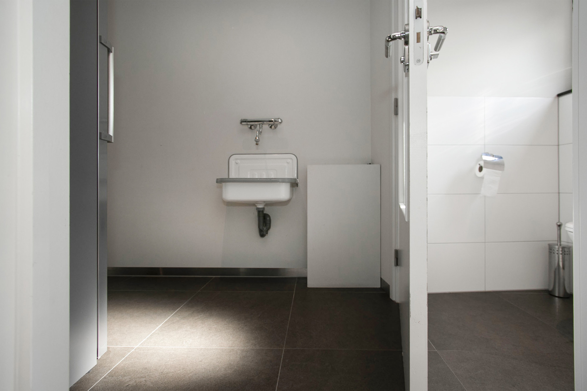In de gang tussen deze twee ruimtes bevindt zich ook een tweede toiletruimte en uitstortgrootsteen.