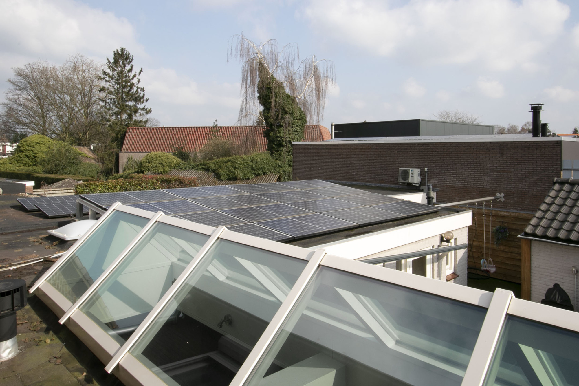 Op het dak van de aanbouw zijn 16 zonnepanelen geplaatst.