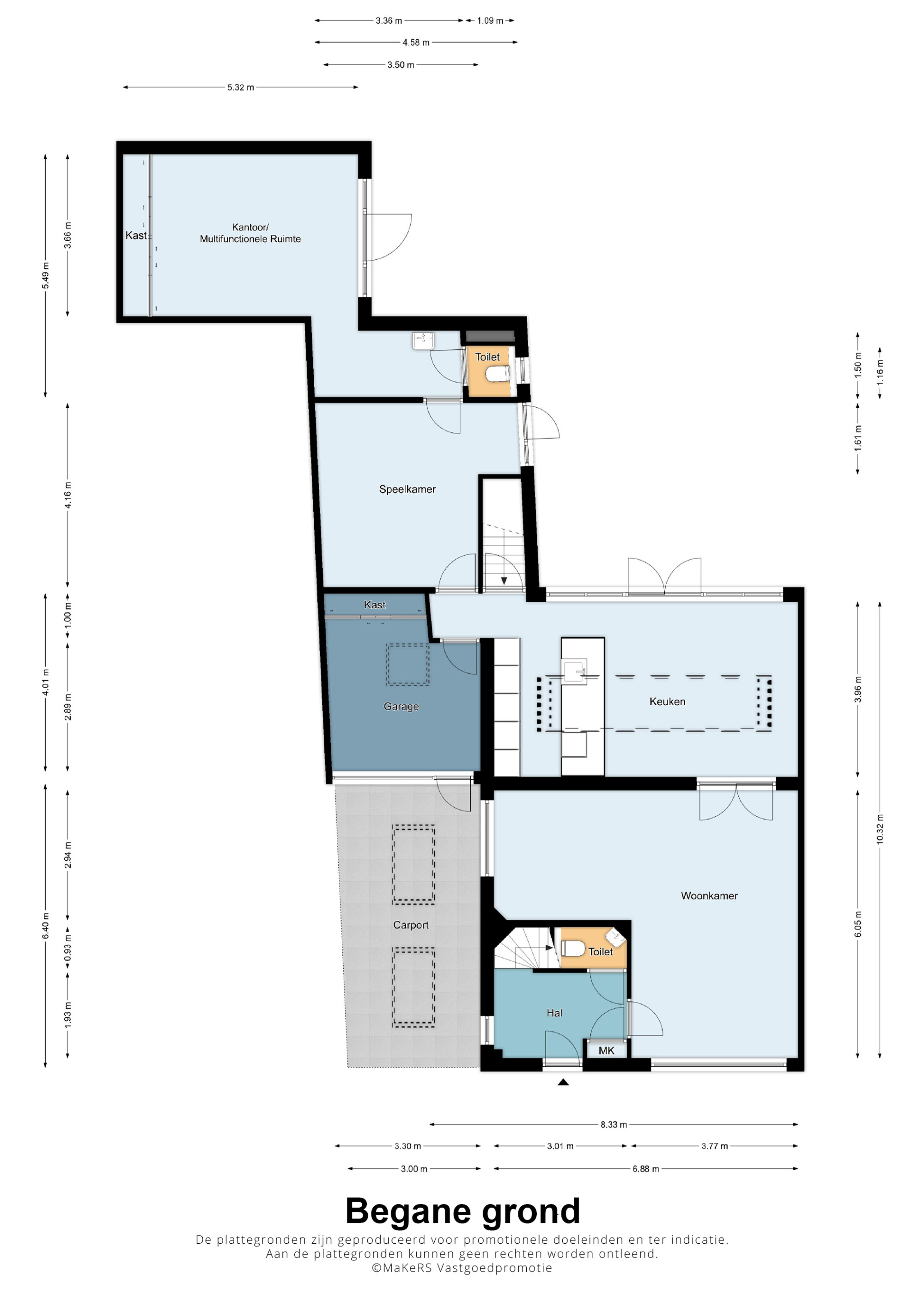 Vanuit de keuken is er toegang tot de tuin middels een dubbele deur met hor, toegang tot de kelder, garage en twee multifunctionele ruimtes.