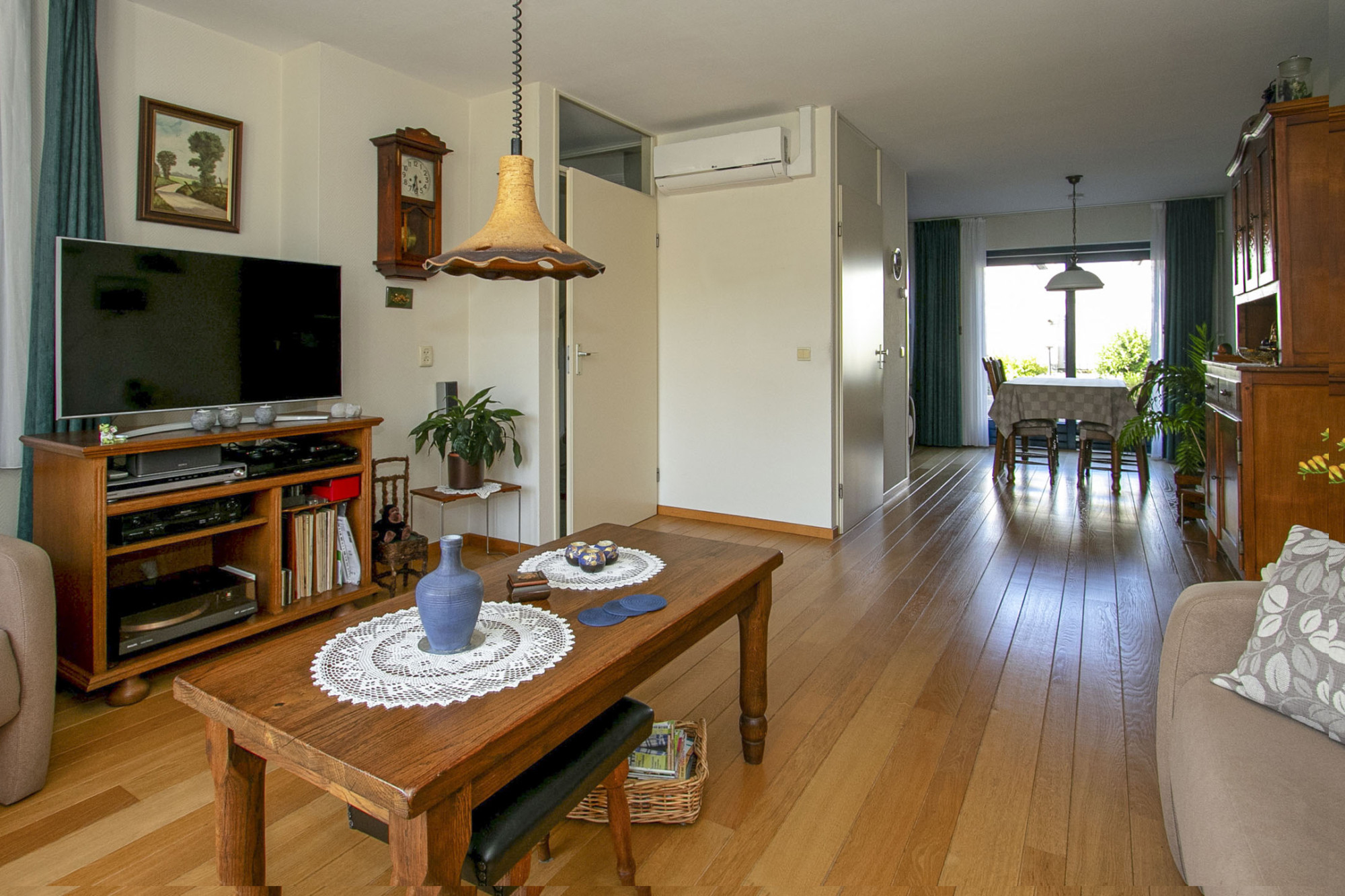 Vanuit de ontvangsthal bereik je de woonkamer. De woonkamer biedt plek voor een gezellig zitgedeelte en grenst aan de open keuken met hoekopstand. In het eetgedeelte heb je heerlijk tuincontact middels de schuifdeuren naar de tuin. De ramen in de woonkamer zijn allemaal voorzien van screens.