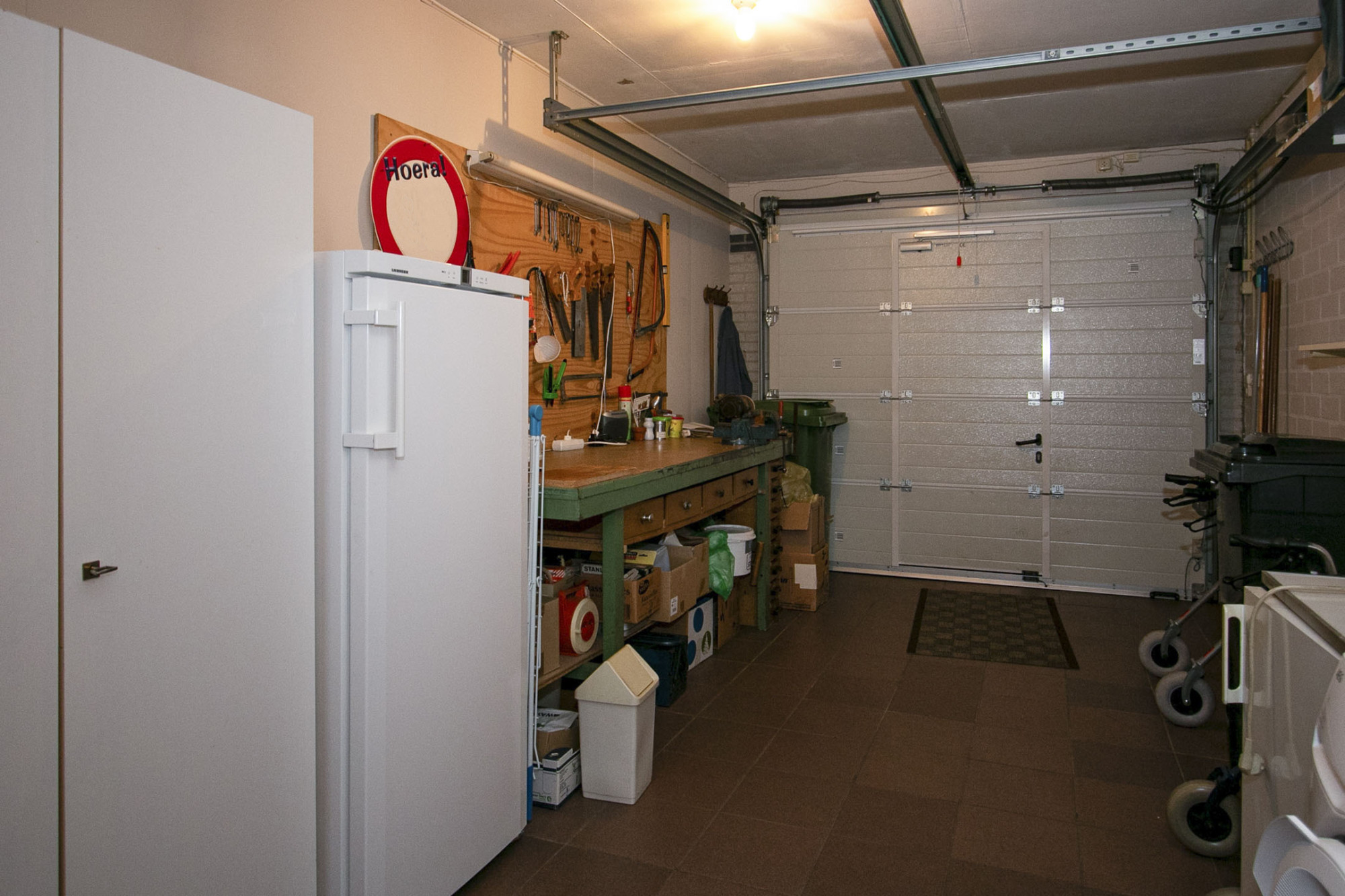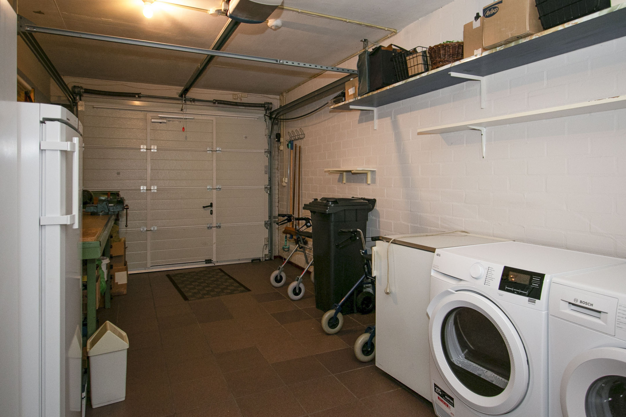 De grote inpandige garage niet alleen vanuit binnen toegankelijk. Deze is ook te bereiken via een loopdeur alsmede de elektrische garagedeur. De Nefit HR cv-ketel uit 2001 en de witgoedaansluitingen tref je hier aan.