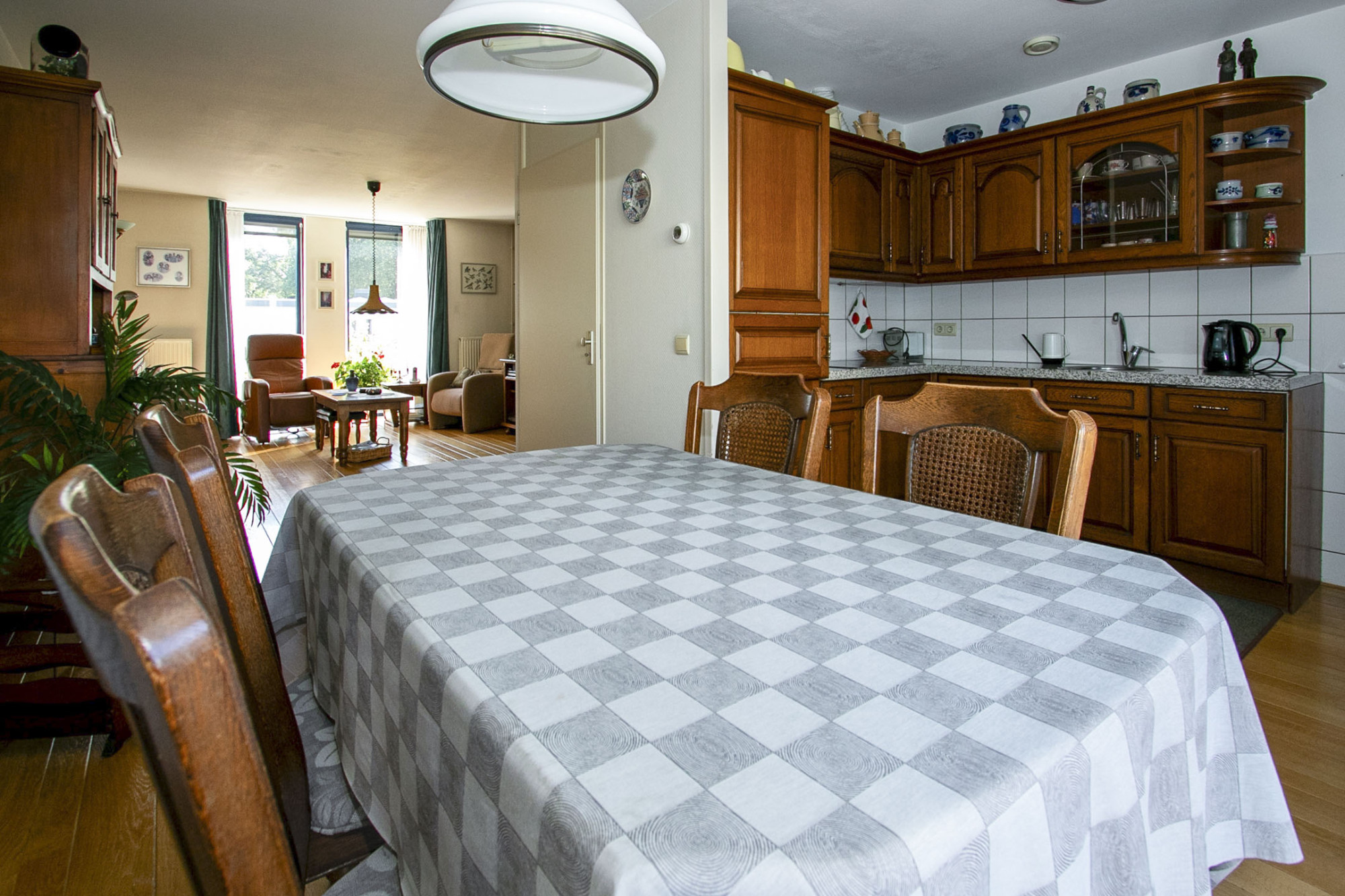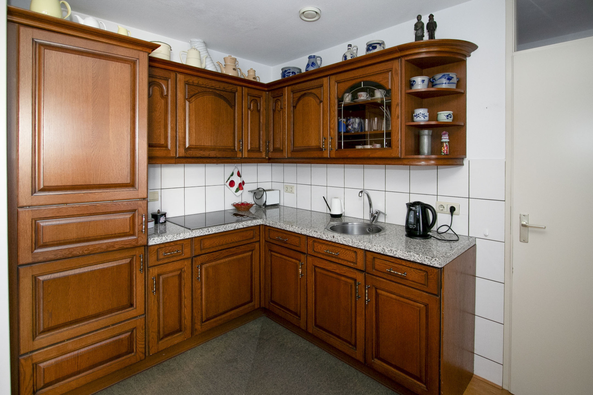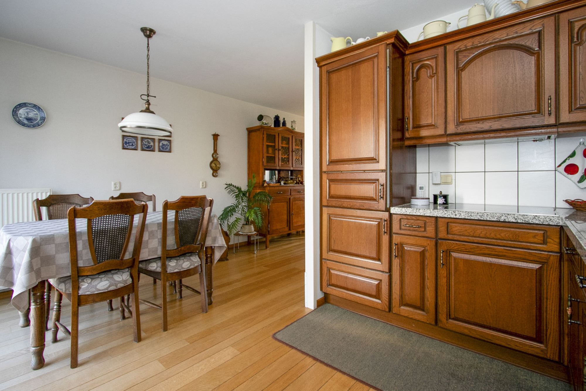 De keuken is ruim van opzet en gemaakt van super degelijk kersenhout. De keuken heeft een granieten werkblad, inductie kookplaat, afzuigkap, inbouw vaatwasser en inbouwkoelkast. Om de hoek is nog een kastenwand gerealiseerd met een inbouw combi-oven, inbouw vriezer en veel opbergruimte.