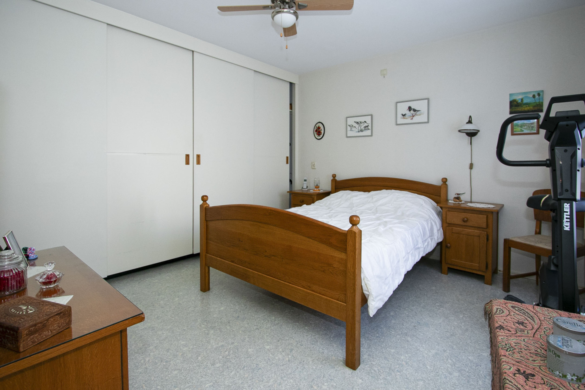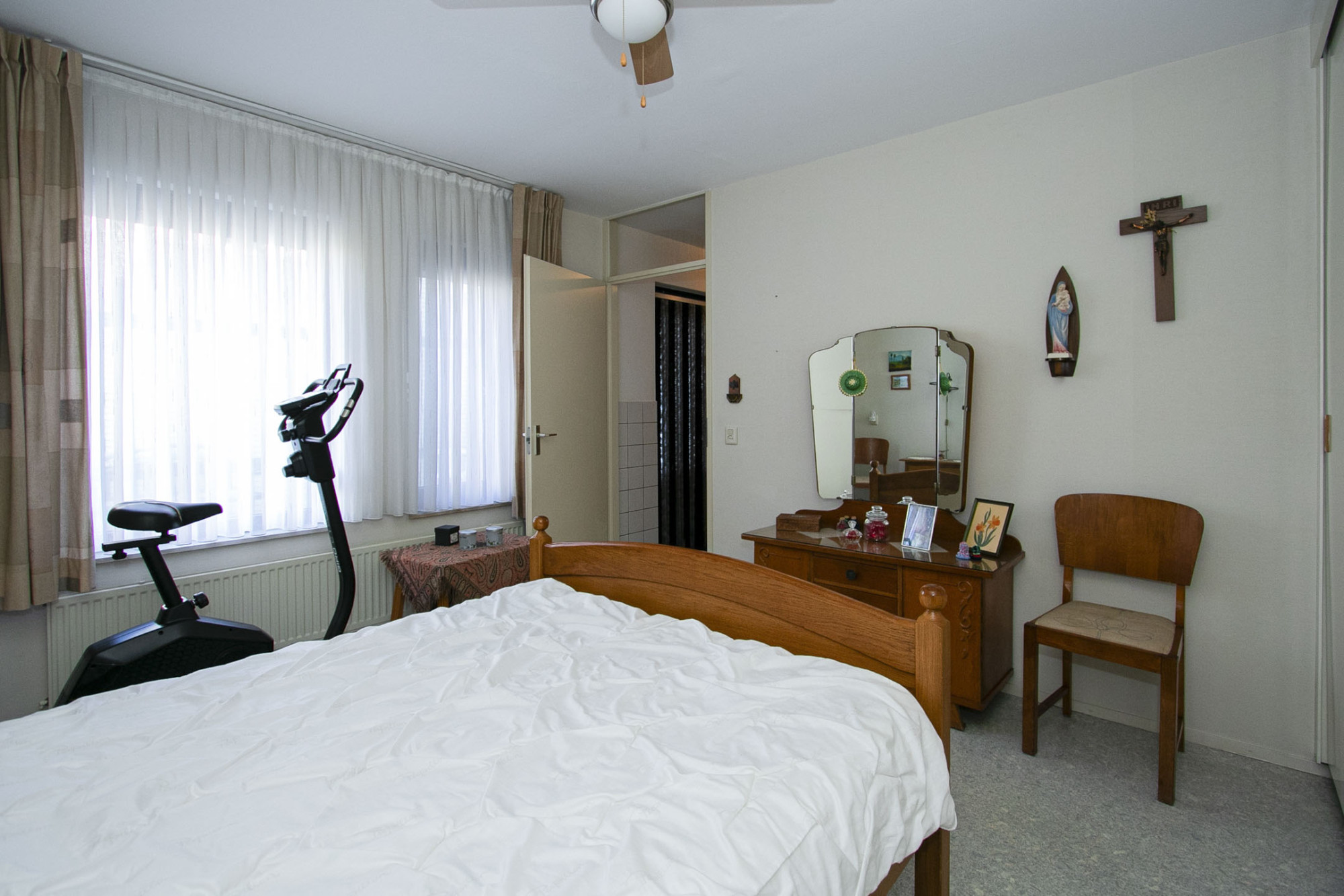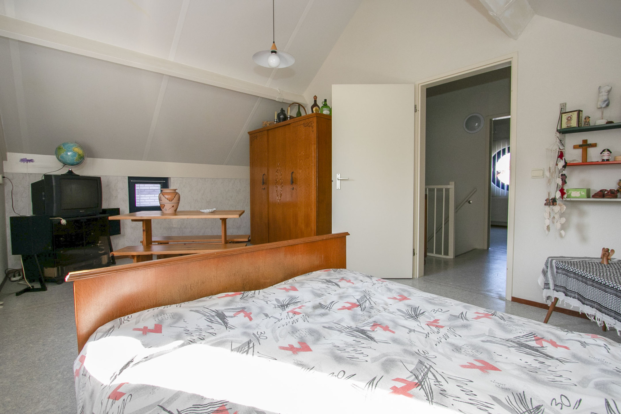 De slaapkamer heeft een prettige inbouwkast, waar je veel in kwijt kunt. Ook zijn beide ramen voorzien van screens.
