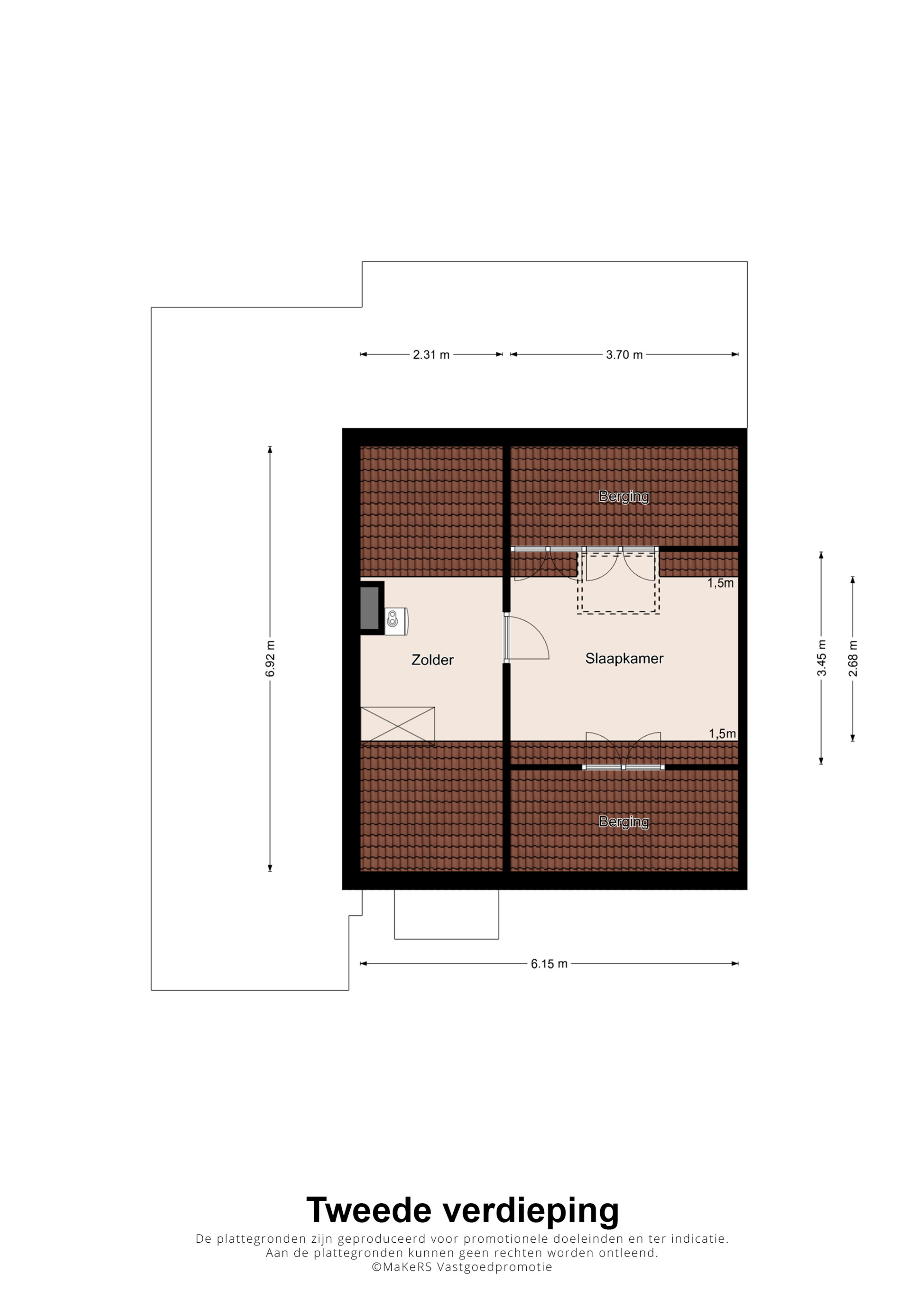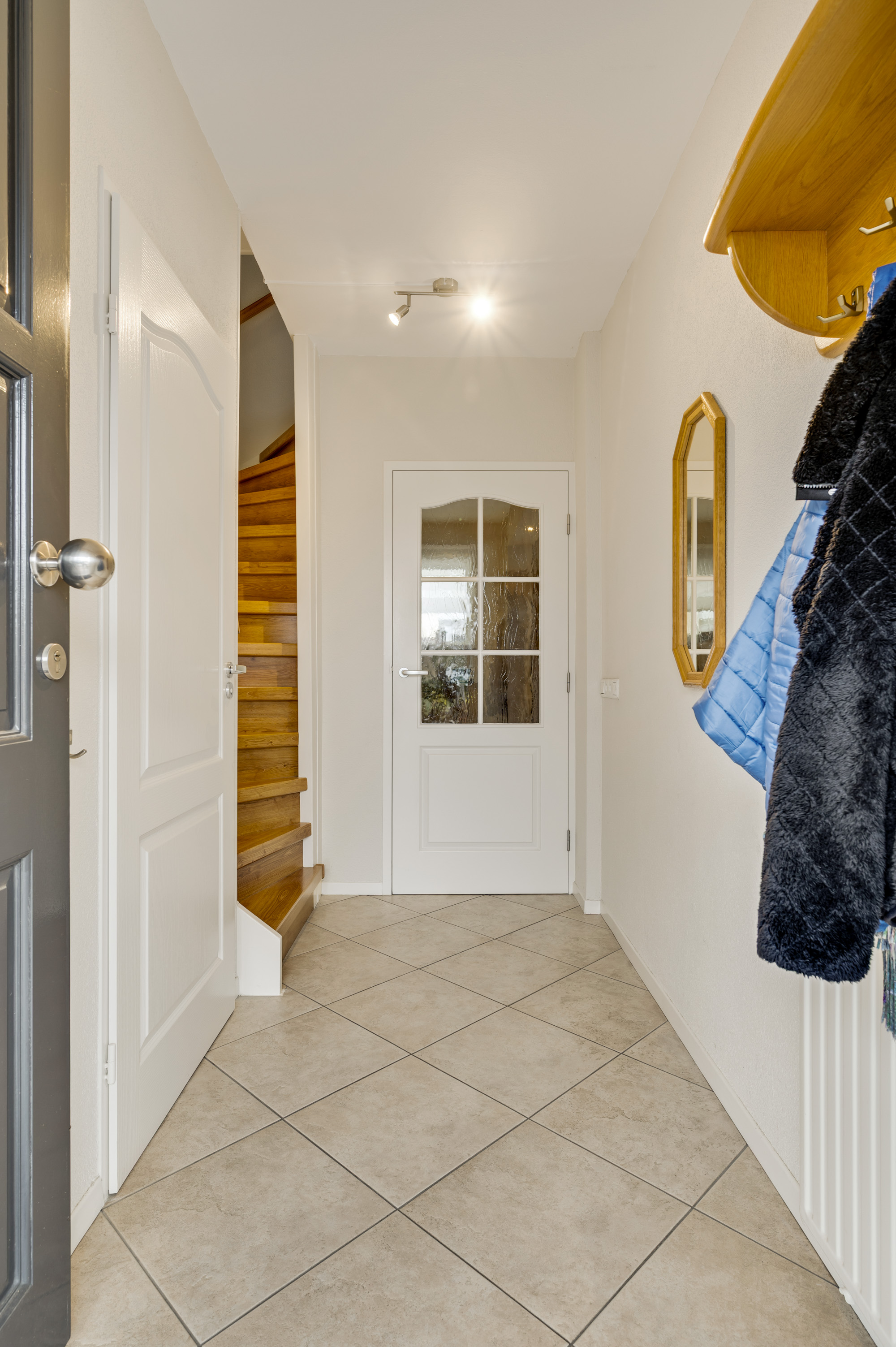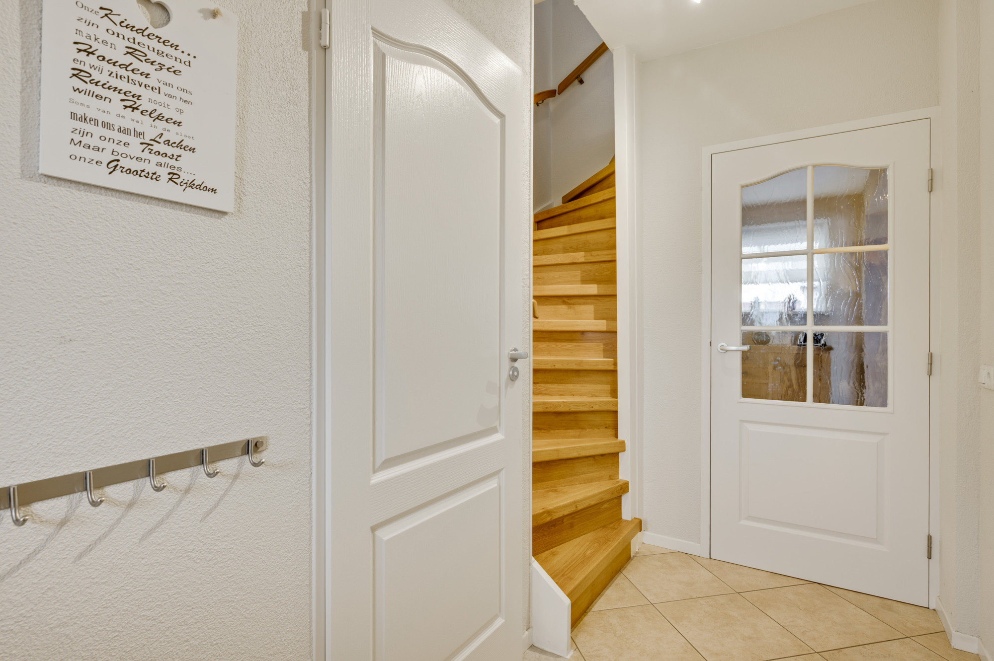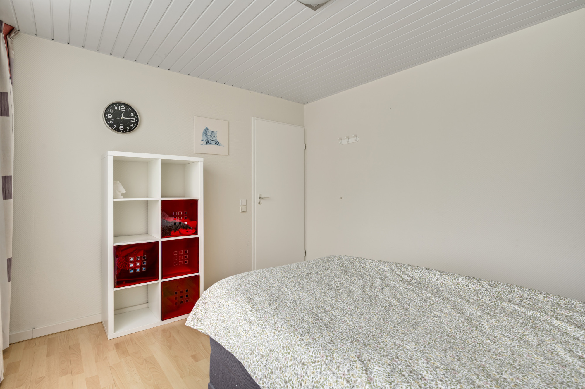 Via een vaste steektrap bereikt u de tweede verdieping. Hier bevindt zich een voorportaal met de opstelling van de cv-ketel (Nefit Proline HR, eigendom, ca. 2020) en toegang tot de vierde slaapkamer. Deze kamer is voorzien van een dakraam en extra bergruimte. Een perfect inzetbare verdieping voor een extra slaapkamer, werk- of hobbyruimte.