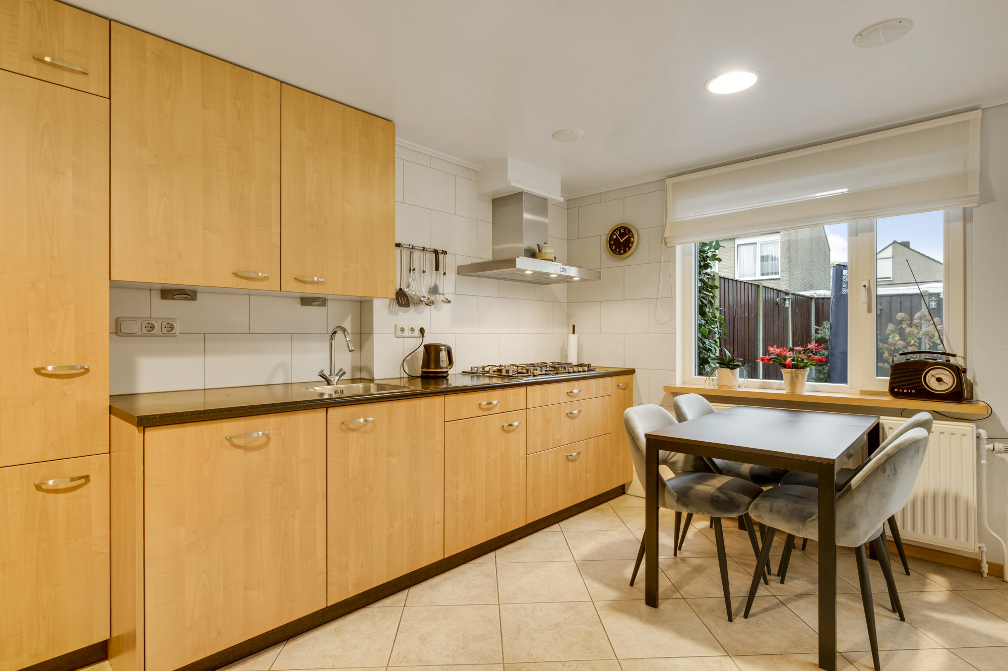 Aan de rustige Esdoornstraat, direct naast een speel- en groenvoorziening, staat deze zorgvuldig onderhouden woning waar comfort en leefruimte centraal staan. Dankzij de aanbouw is er een royale leefkeuken ontstaan en de zonnige achtertuin op het zuidwesten met overkapping maakt het geheel helemaal compleet. Een heerlijke woning voor wie graag ruim, praktisch én op een toplocatie in Nederweert wil wonen.