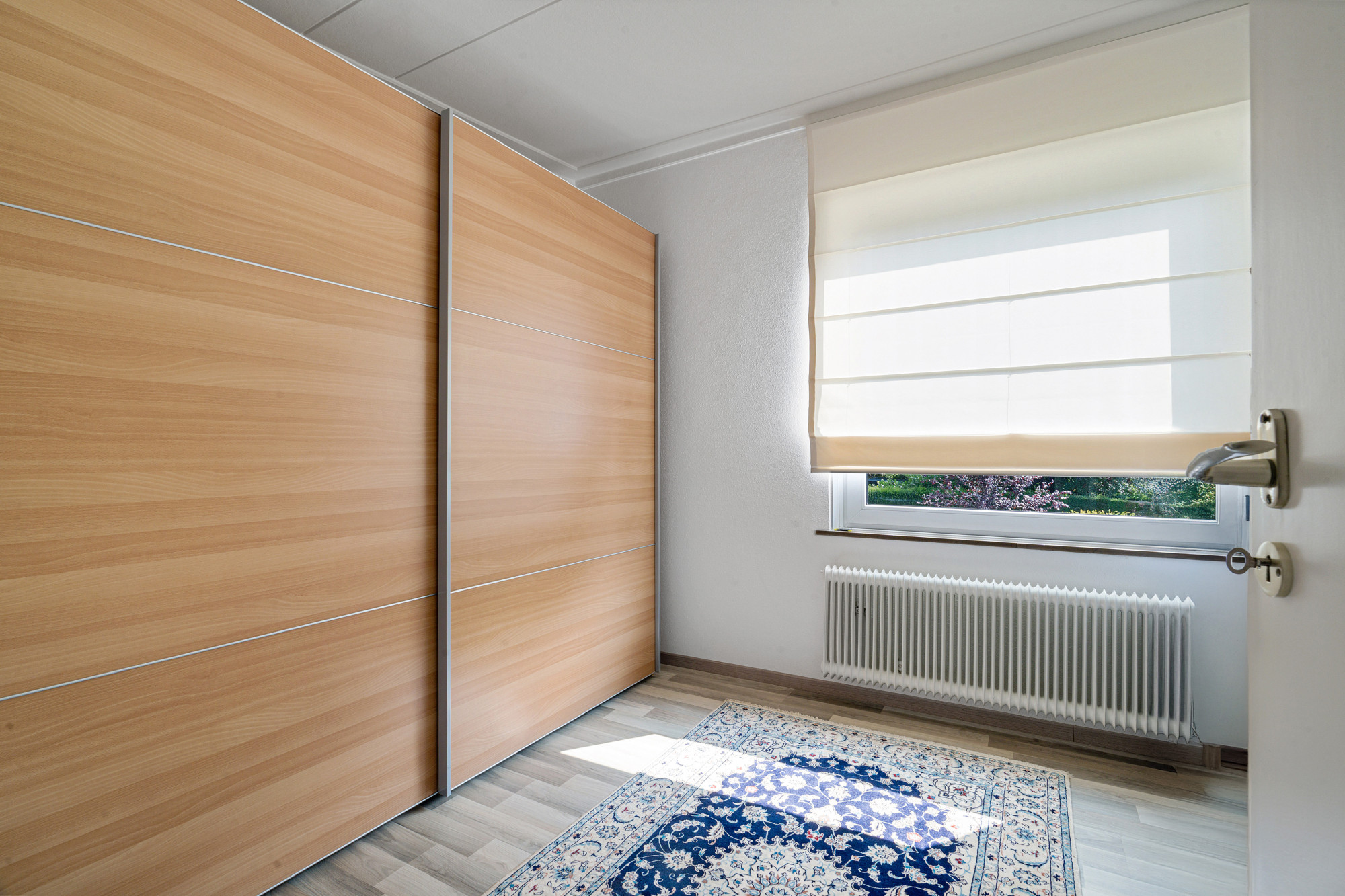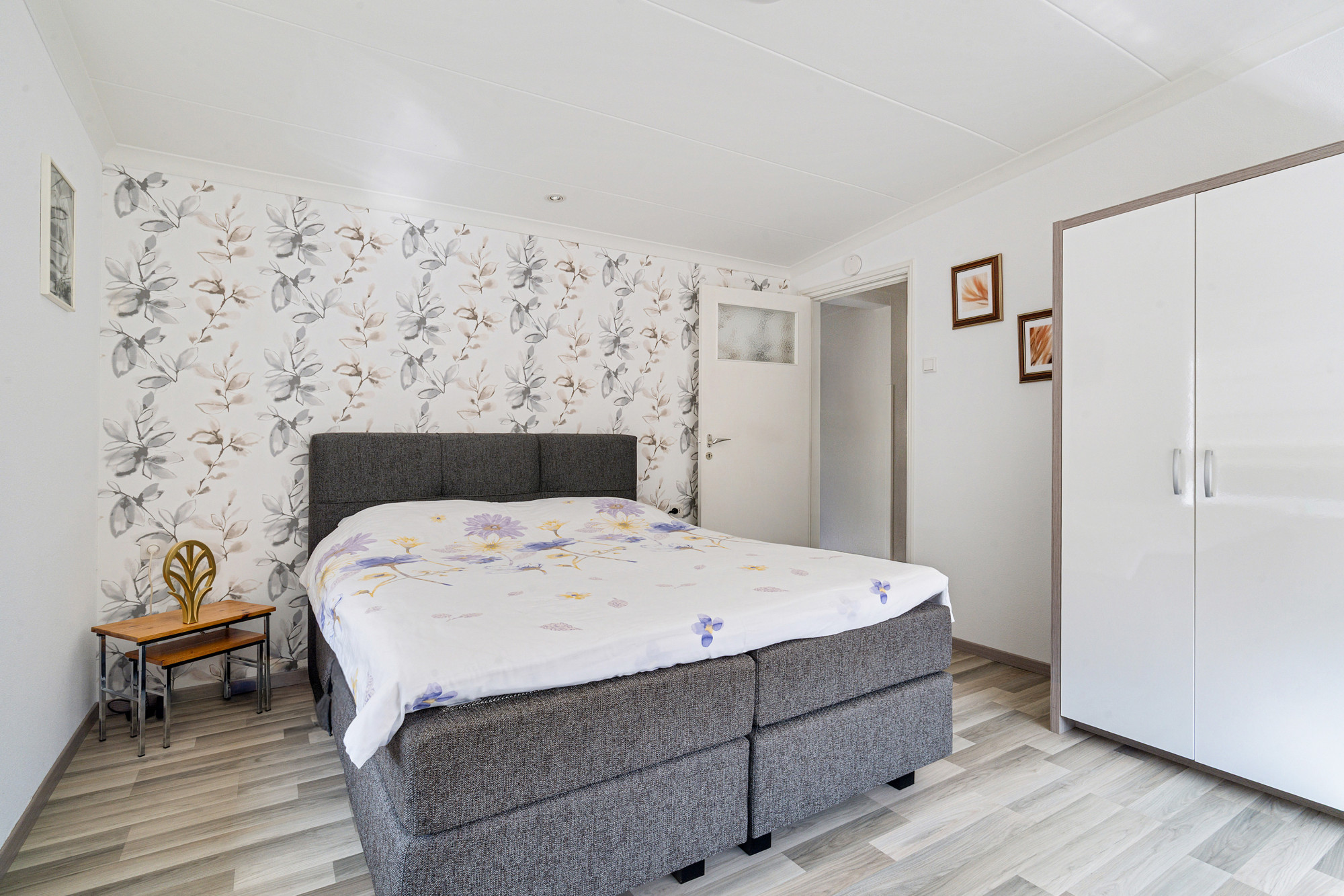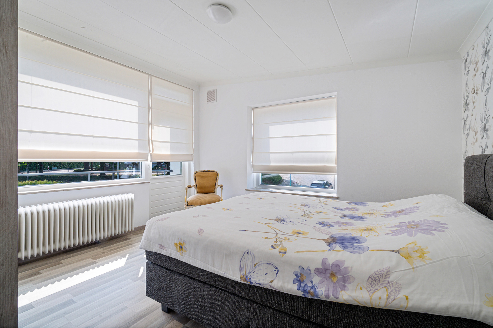 De woning beschikt over drie slaapkamers die bereikbaar zijn vanuit een korte trap. De hoofdslaapkamer biedt directe toegang tot een balkon. De overloop en drie slaapkamers zijn uitgerust met een keurige laminaatvloer.
