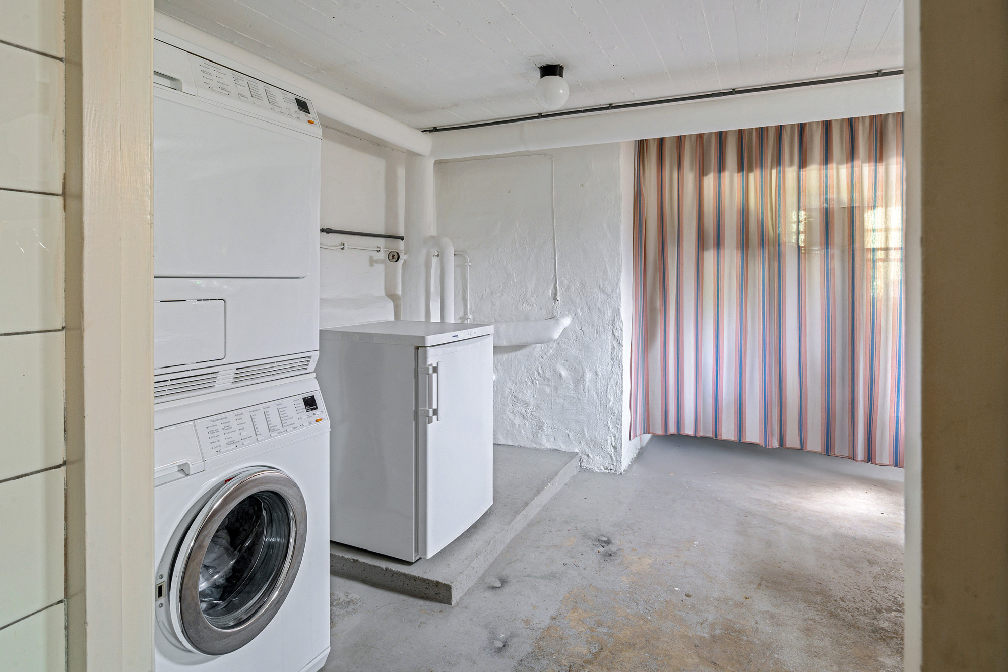 Het souterrain is multifunctioneel en praktisch ingedeeld. Hier bevindt zich de inpandige garage, toegankelijk via de oprit, die een dubbele parkeergelegenheid heeft. De garage biedt ruimte voor uw auto en opslag. Aangrenzend vindt u een aparte wasruimte met witgoedaansluitingen. Een niveau lager treft u de berging en stookruimte aan.