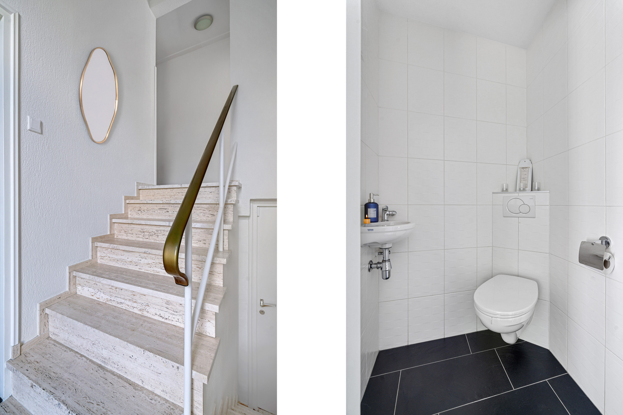 In de ruime en lichte hal treft u tevens het toilet met fonteintje en meterkast aan.