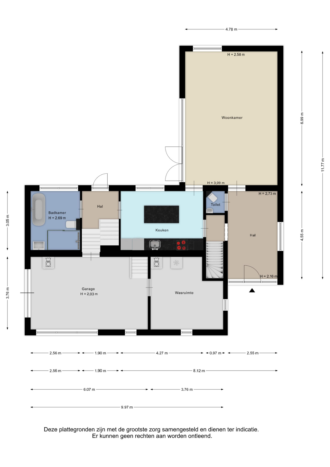 Alle door ons kantoor verstrekte informatie omtrent onroerende zaken, moet beschouwd worden als een uitnodiging om in onderhandeling te treden, en is geheel vrijblijvend! Alle vermelde maten en afmetingen zijn slechts bij benadering. Aan deze beperkte info kunnen geen rechten worden ontleend. Indien in enige documentatie of op enige website informatie staat die niet overeen komt met de werkelijkheid, dan geldt de feitelijke situatie waarin de woning zich bevindt, zoals koper deze tijdens de bezichtiging heeft kunnen waarnemen, en wordt de woning in deze feitelijke situatie/staat verkocht. Een (eventueel) bijgevoegde plattegrond dient uitsluitend als globale indicatie/visualisatie. Hieraan kunnen uitdrukkelijk geen rechten worden ontleend.