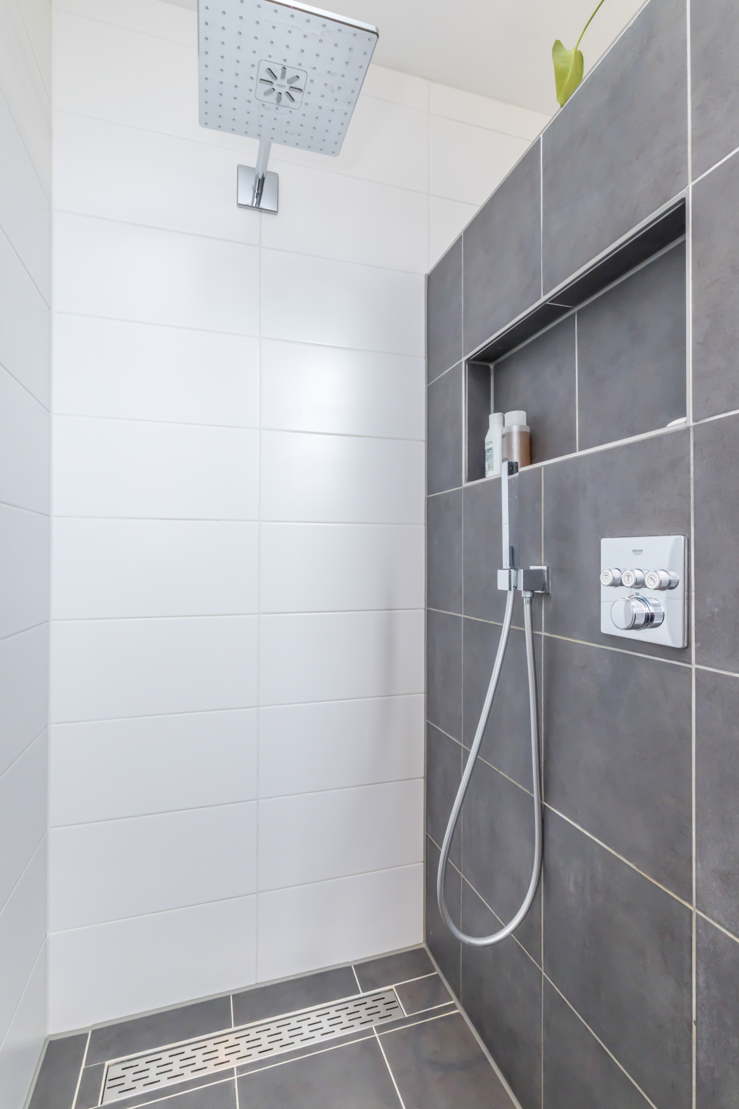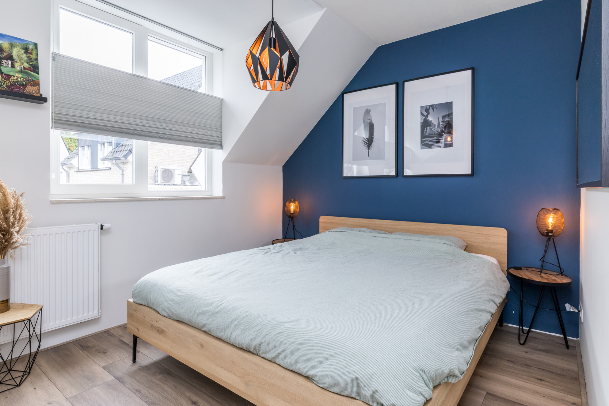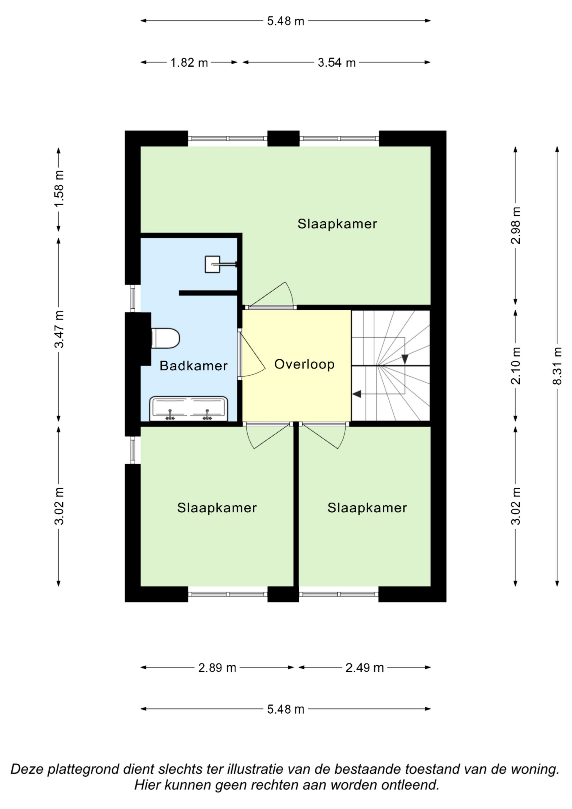Overloop met toegang tot 3 slaapkamers en moderne badkamer. Slaapkamer I (3,02 m x 2,89 m) is net als slaapkamer II (3,02 m x 2,49 m) aan de voorzijde gelegen. Slaapkamer III (5,48 m/ 3,54 m x 2,98 m/ 1,58 m) is aan de achterzijde gelegen. De moderne badkamer (3,47 m x 1,82 m) v.v. ruime inloopdouche, zwevend closet en dubbele wastafel/ badmeubel.