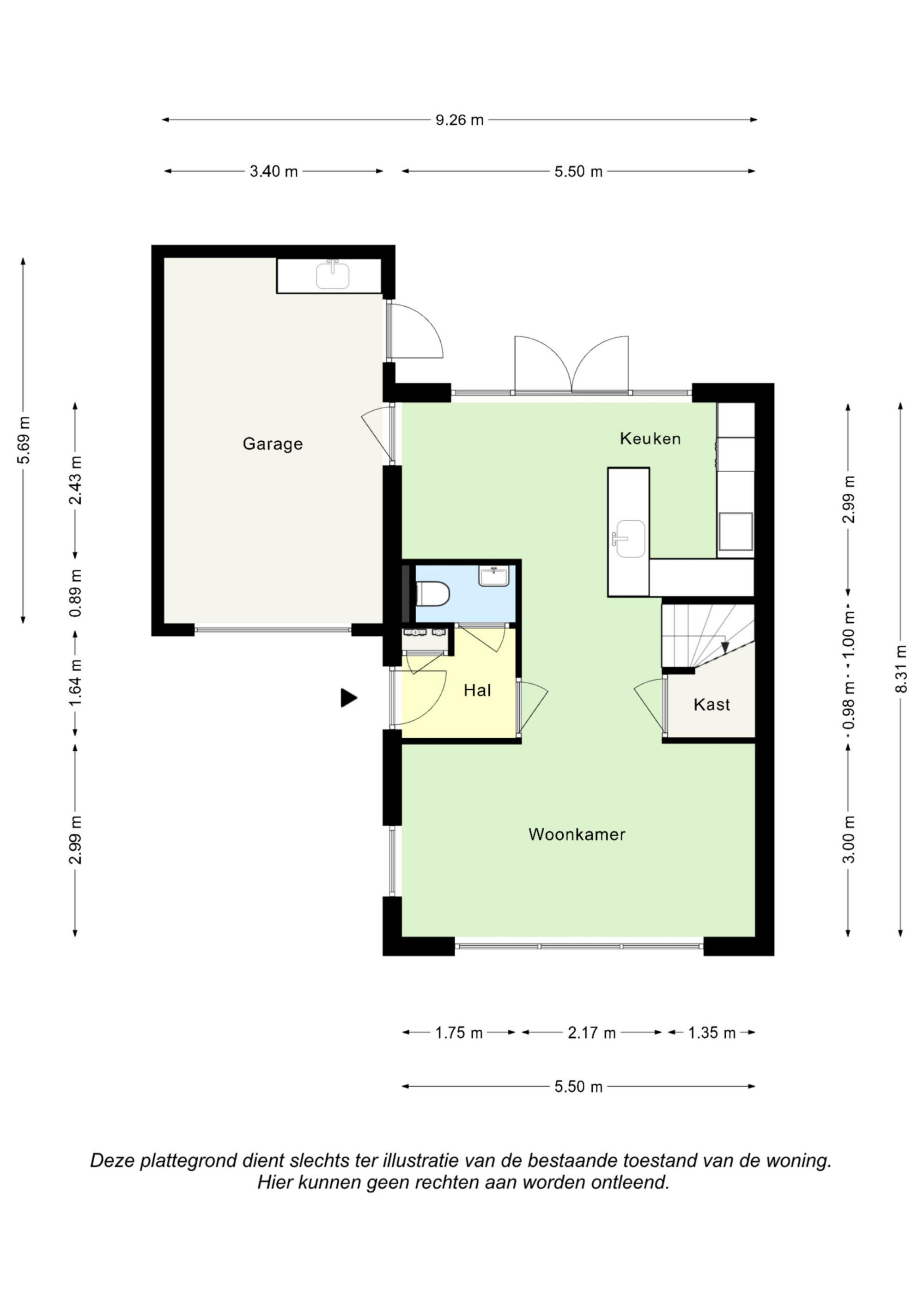 Begane grond: (geheel v.v. vloerverwarming)