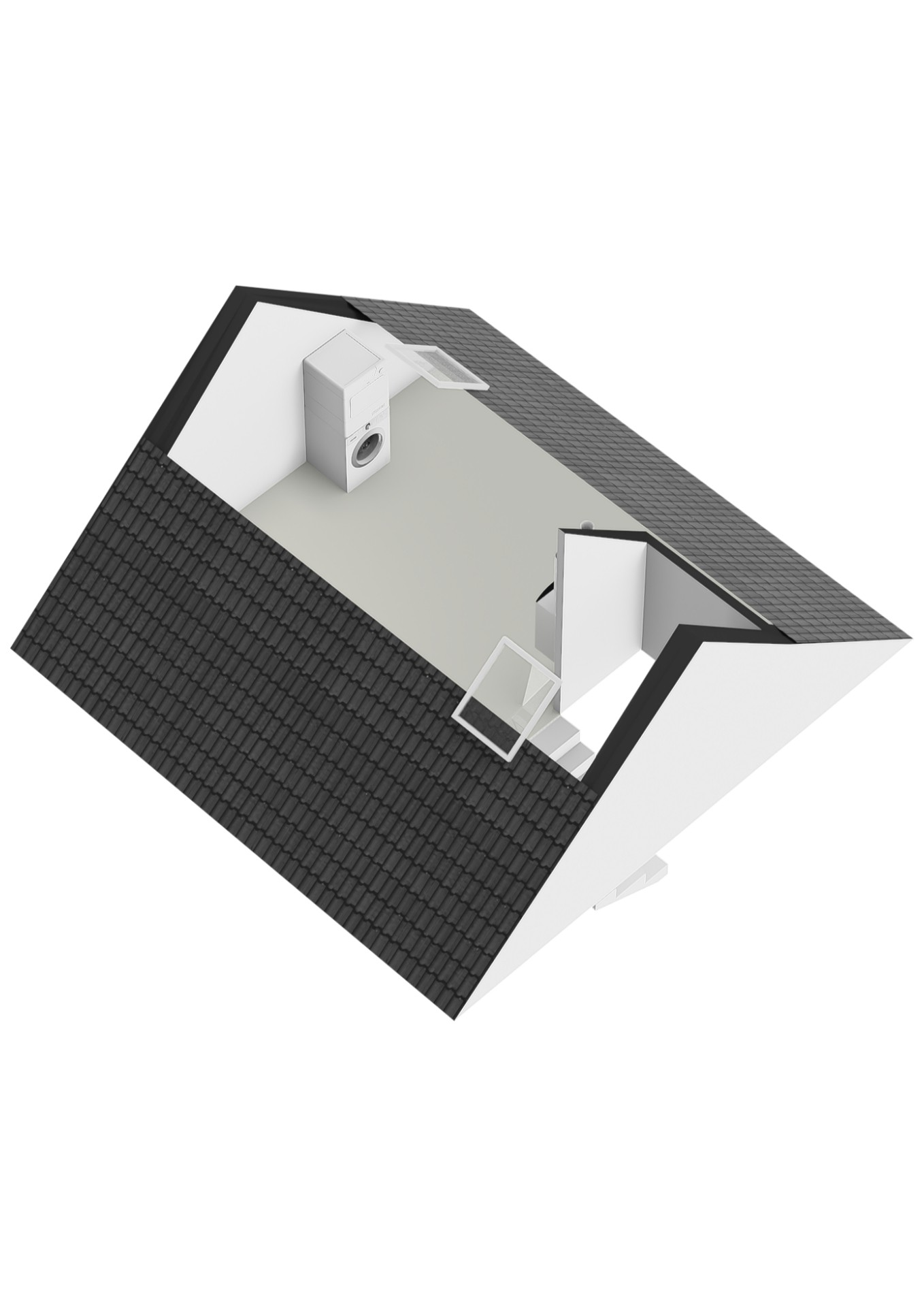 Ruime zolderverdieping alwaar aansluitingen voor witgoedapparatuur en cv-ketel.