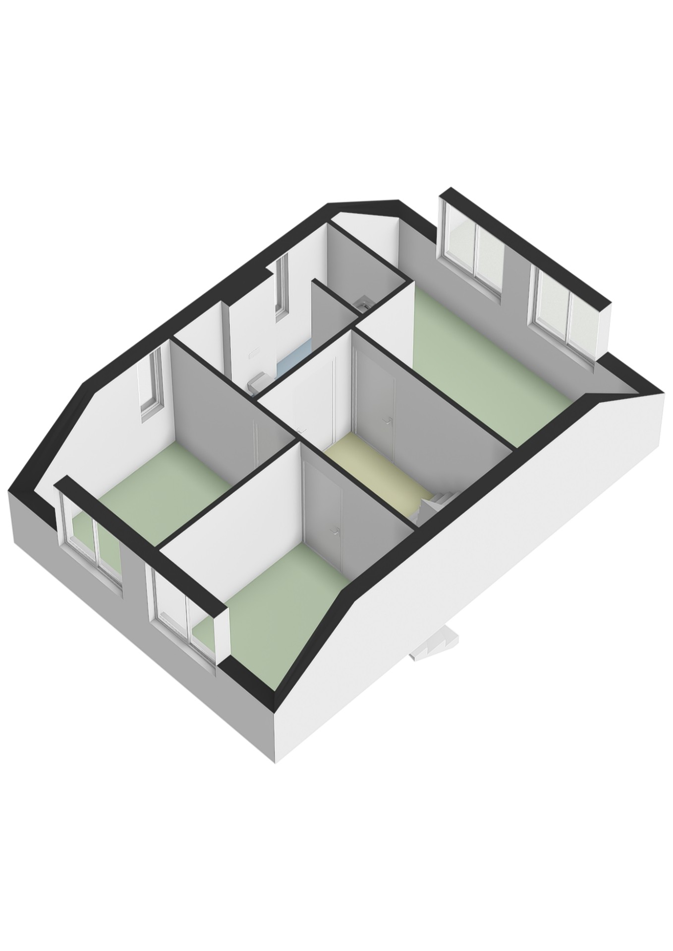 1e verdieping: (geheel v.v. laminaatvloer)