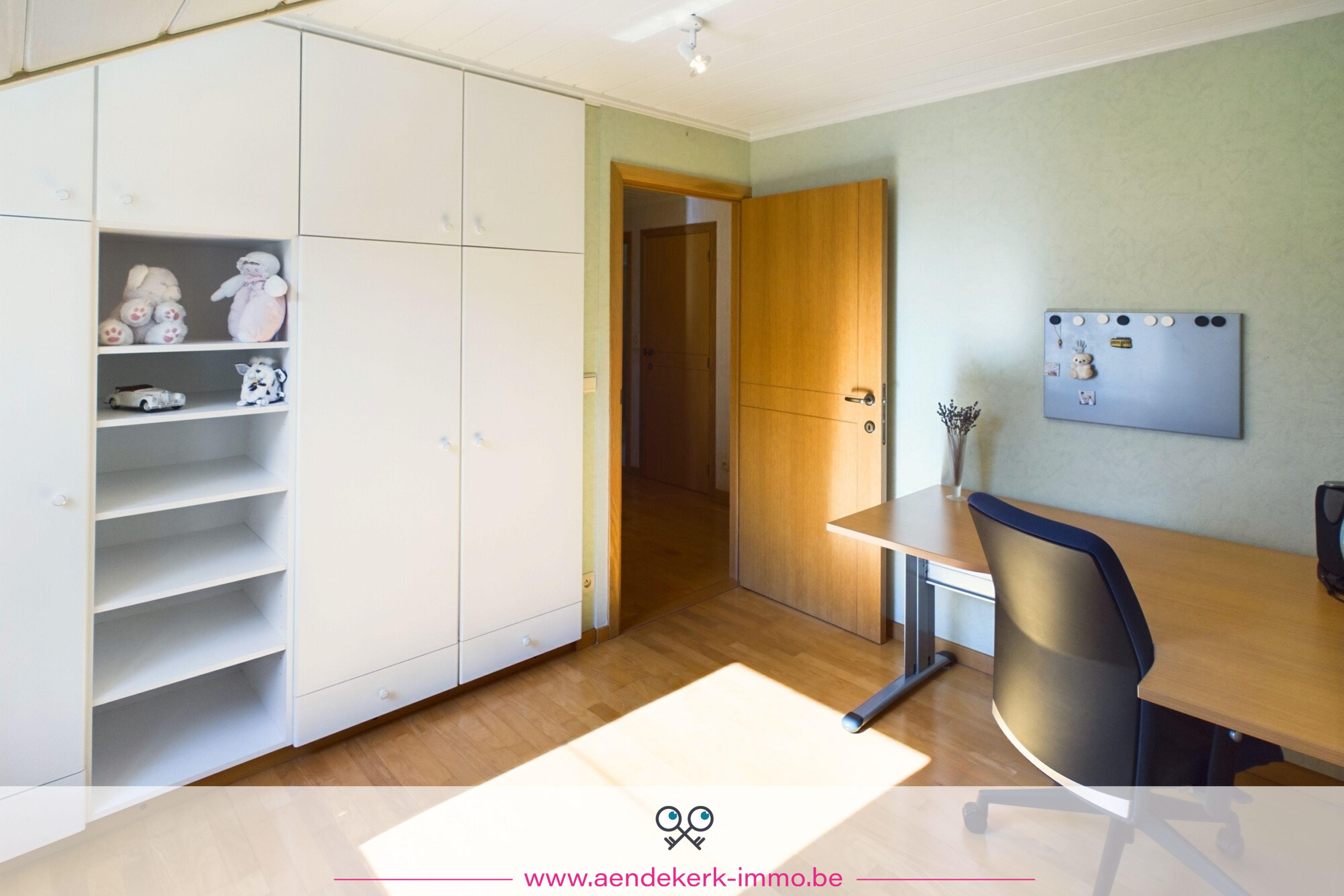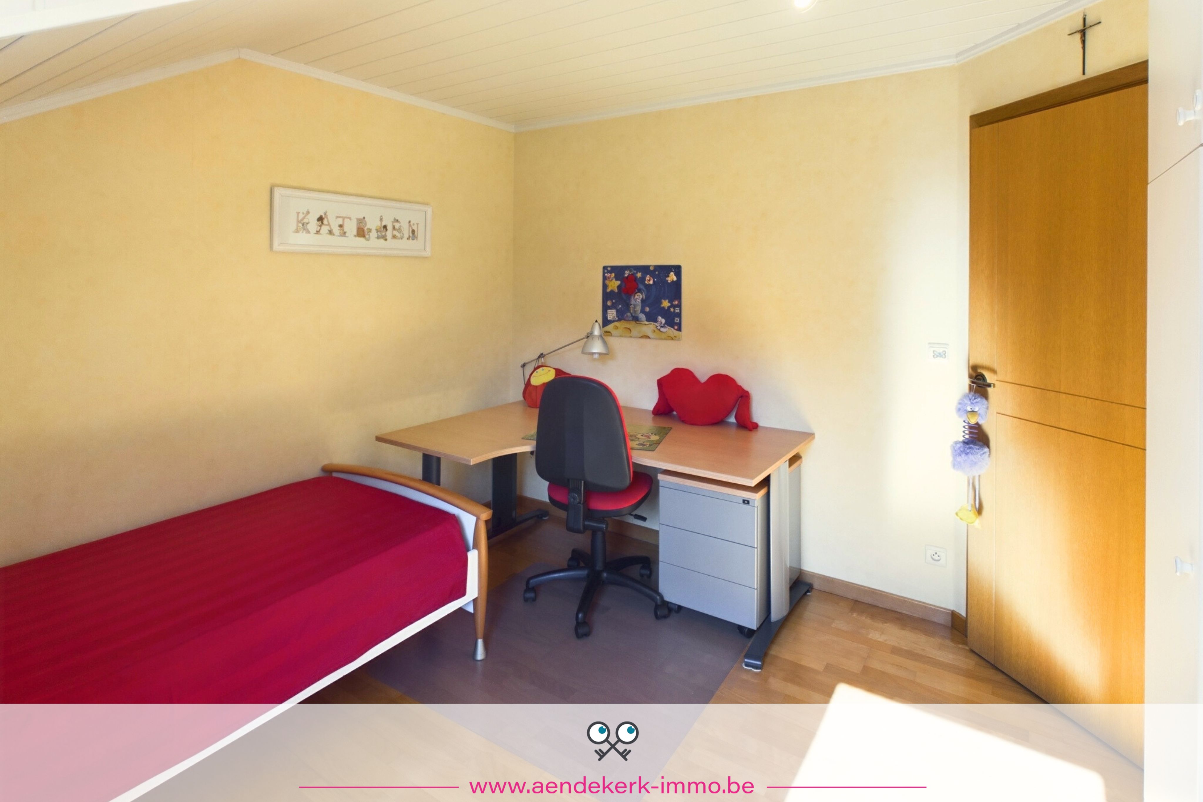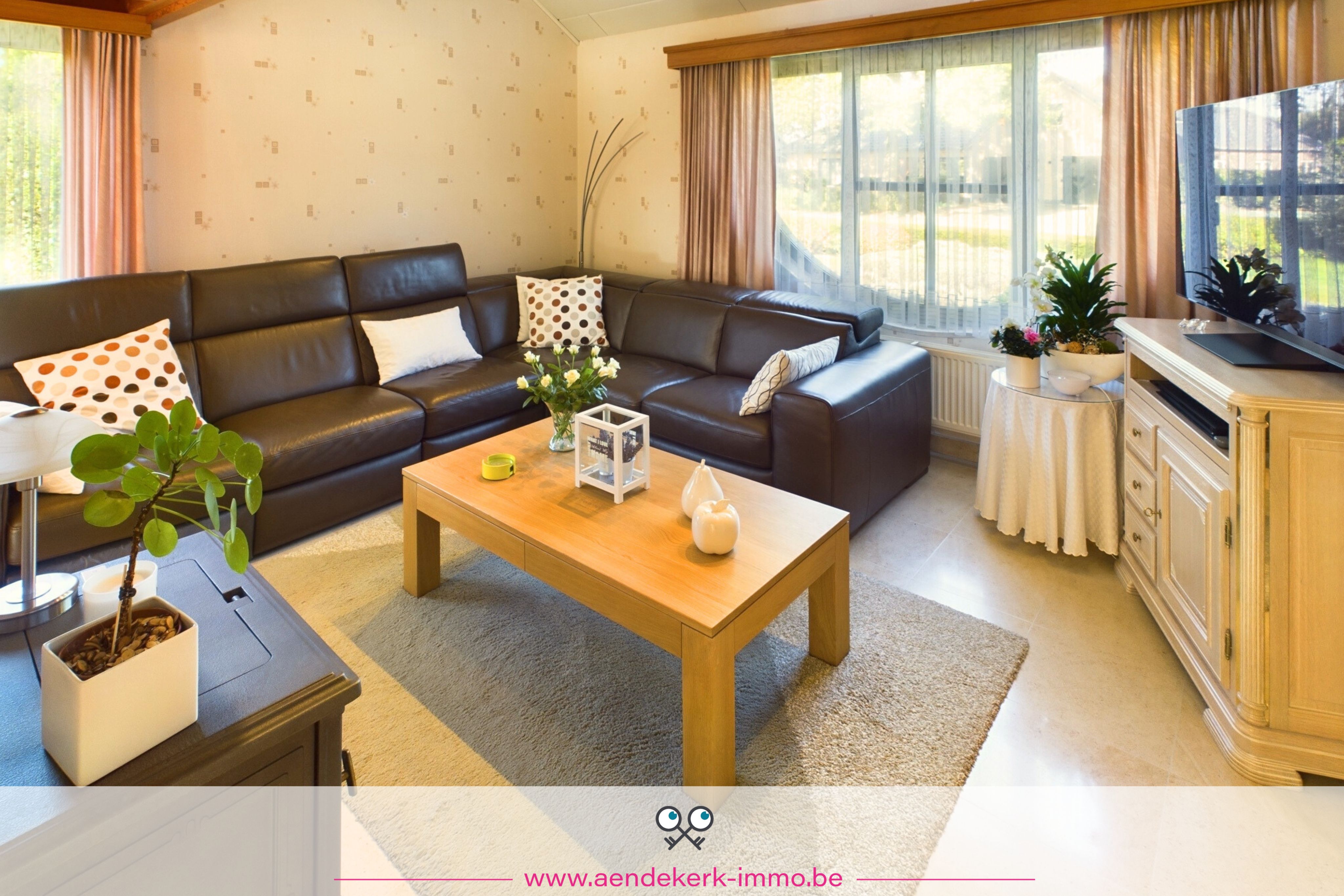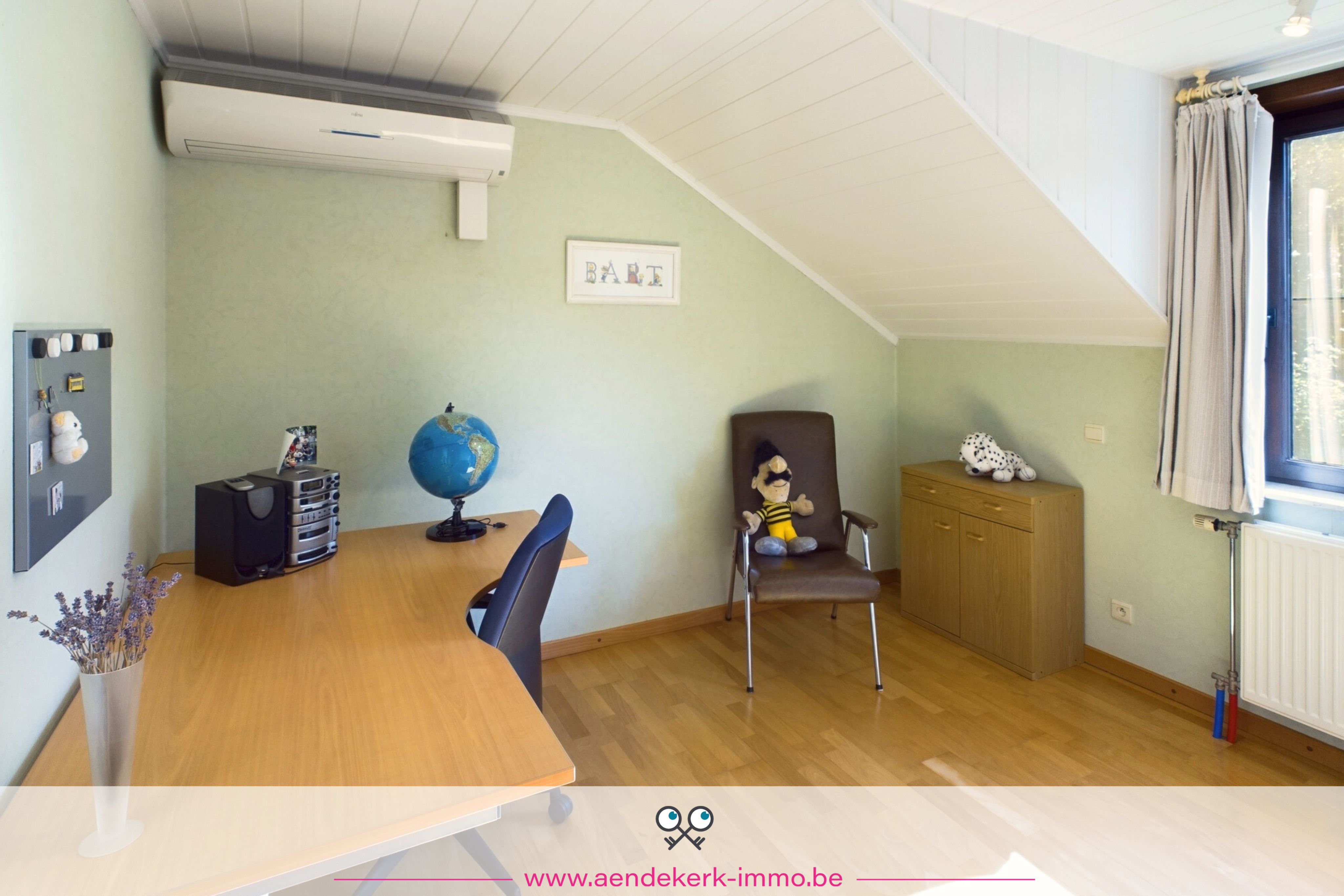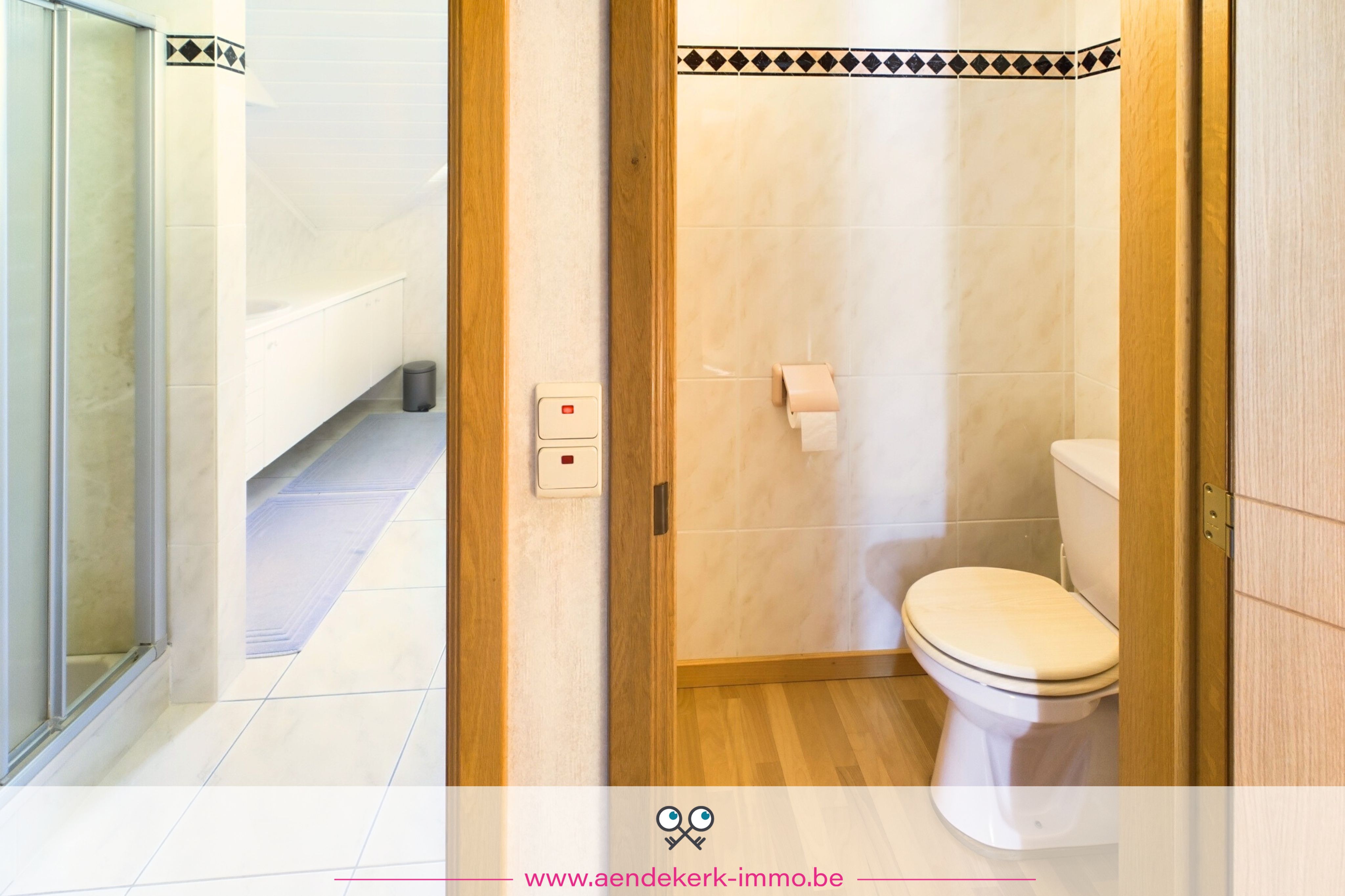 Bij het binnenkomen betreed je een ruime inkomhal die toegang biedt tot de verschillende leefruimtes. De woonkamer is royaal opgezet en baadt in het daglicht dankzij de grote ramen, die meteen een verbinding met de groene tuin geven. Hier is het fijn vertoeven voor een gezellig samenzijn of een avondje ontspannen.