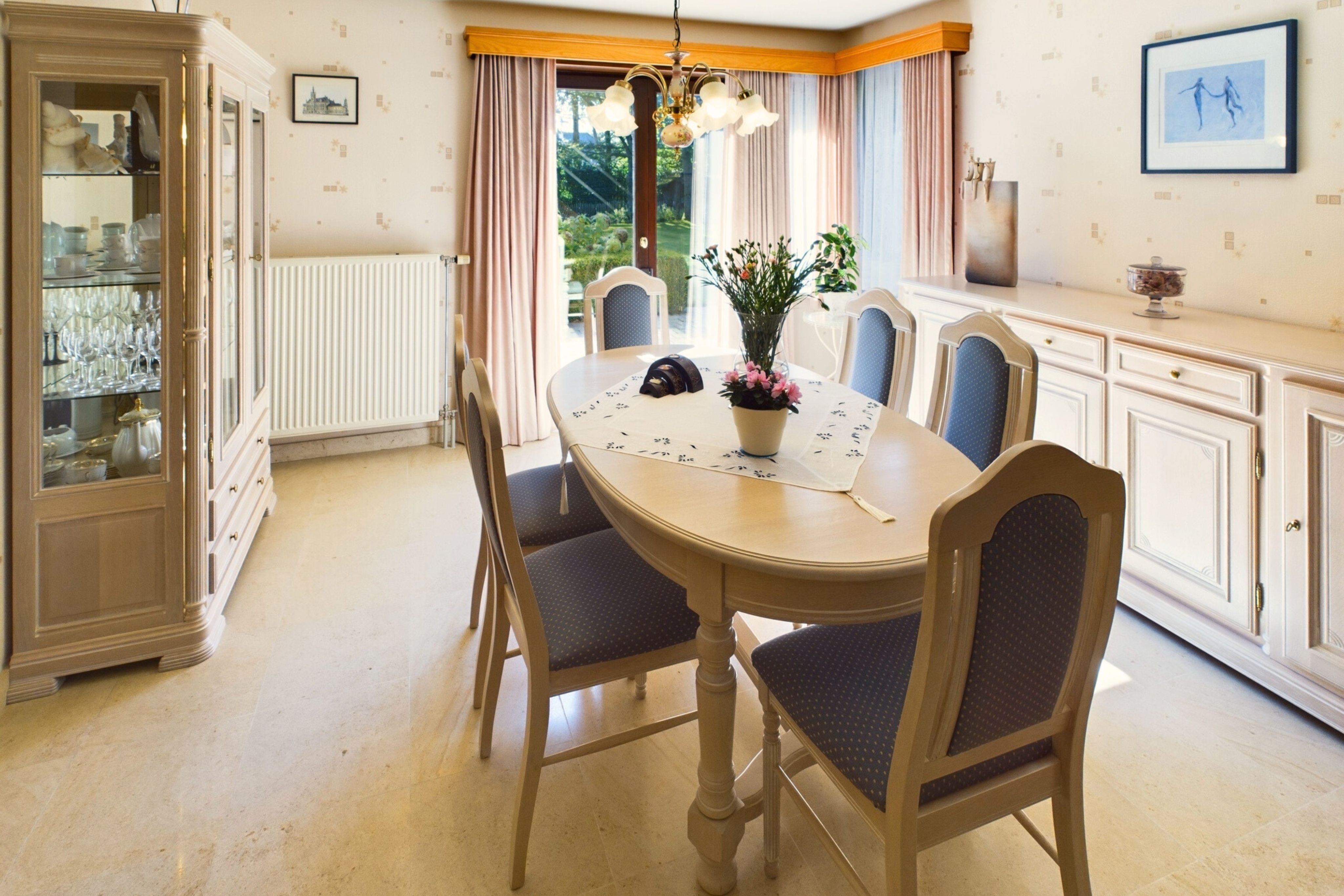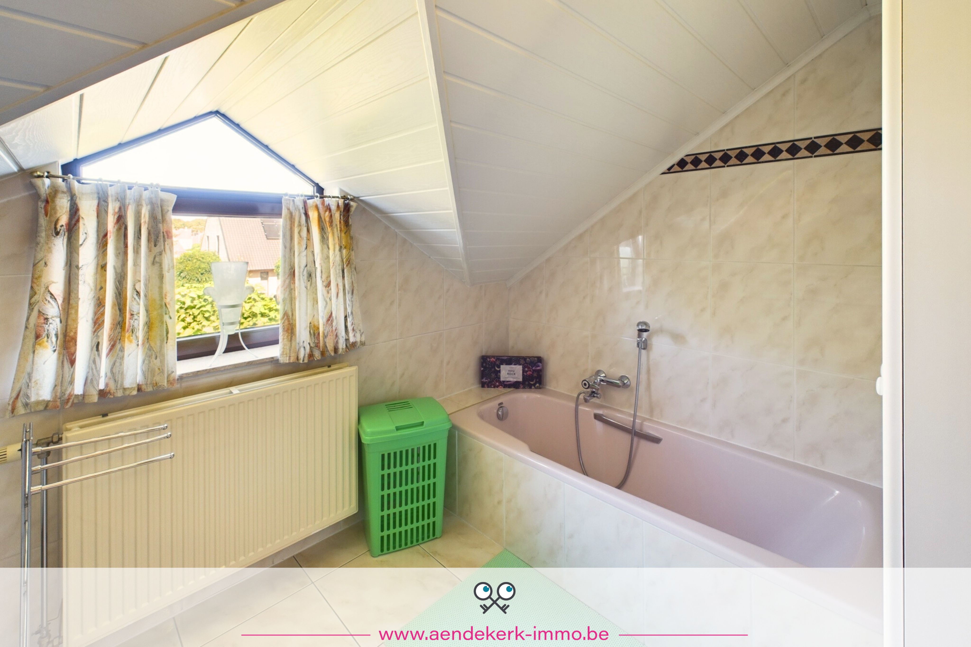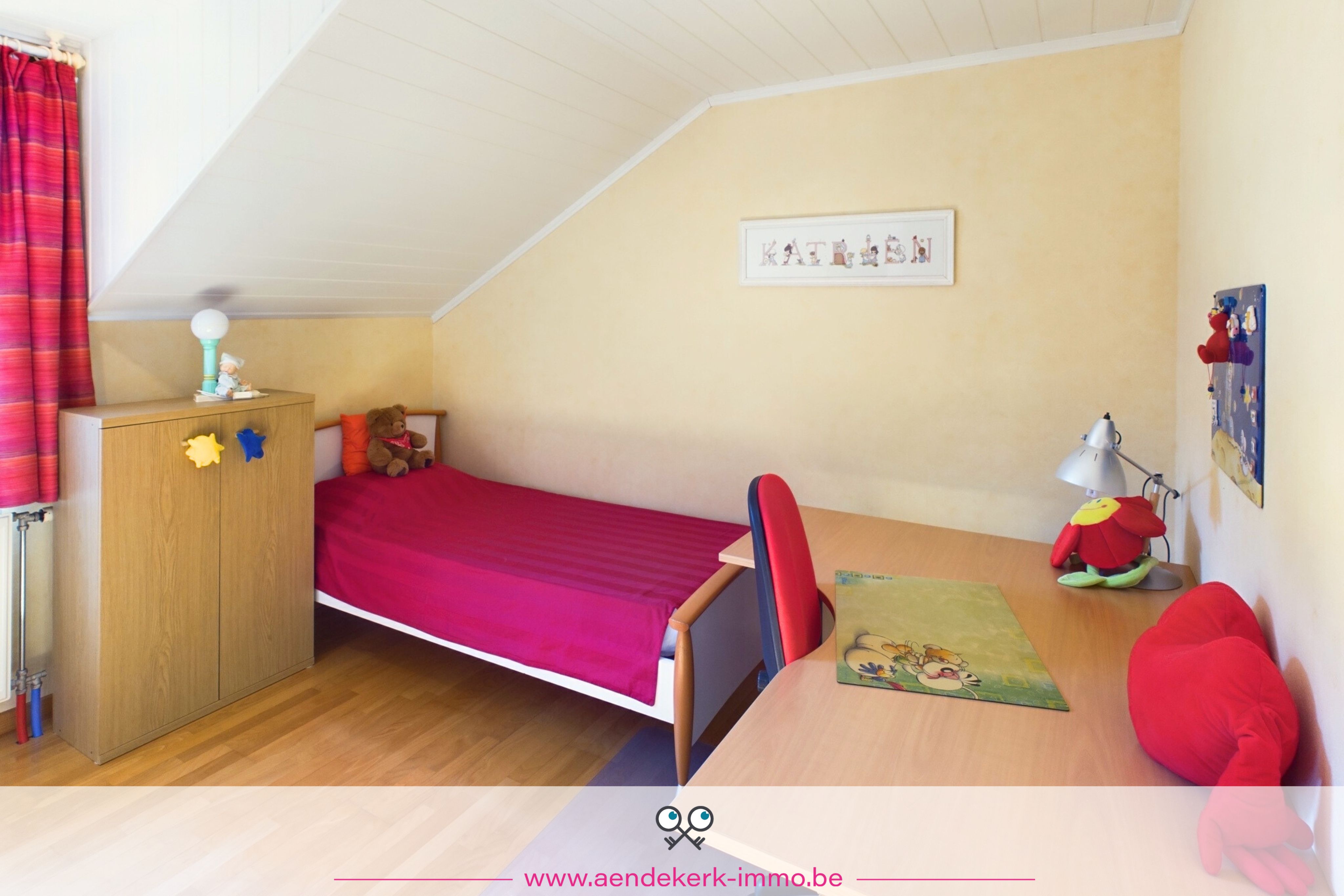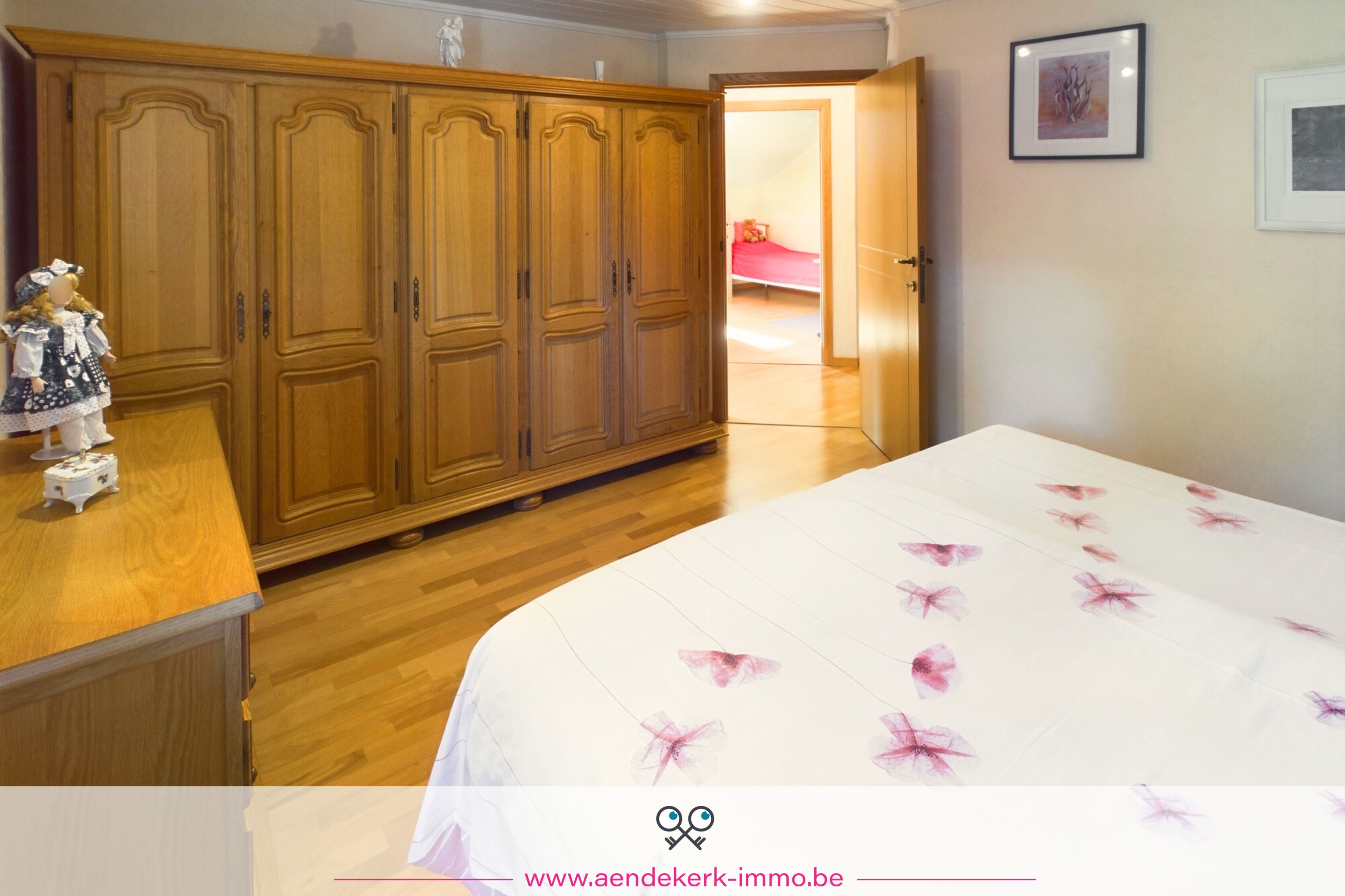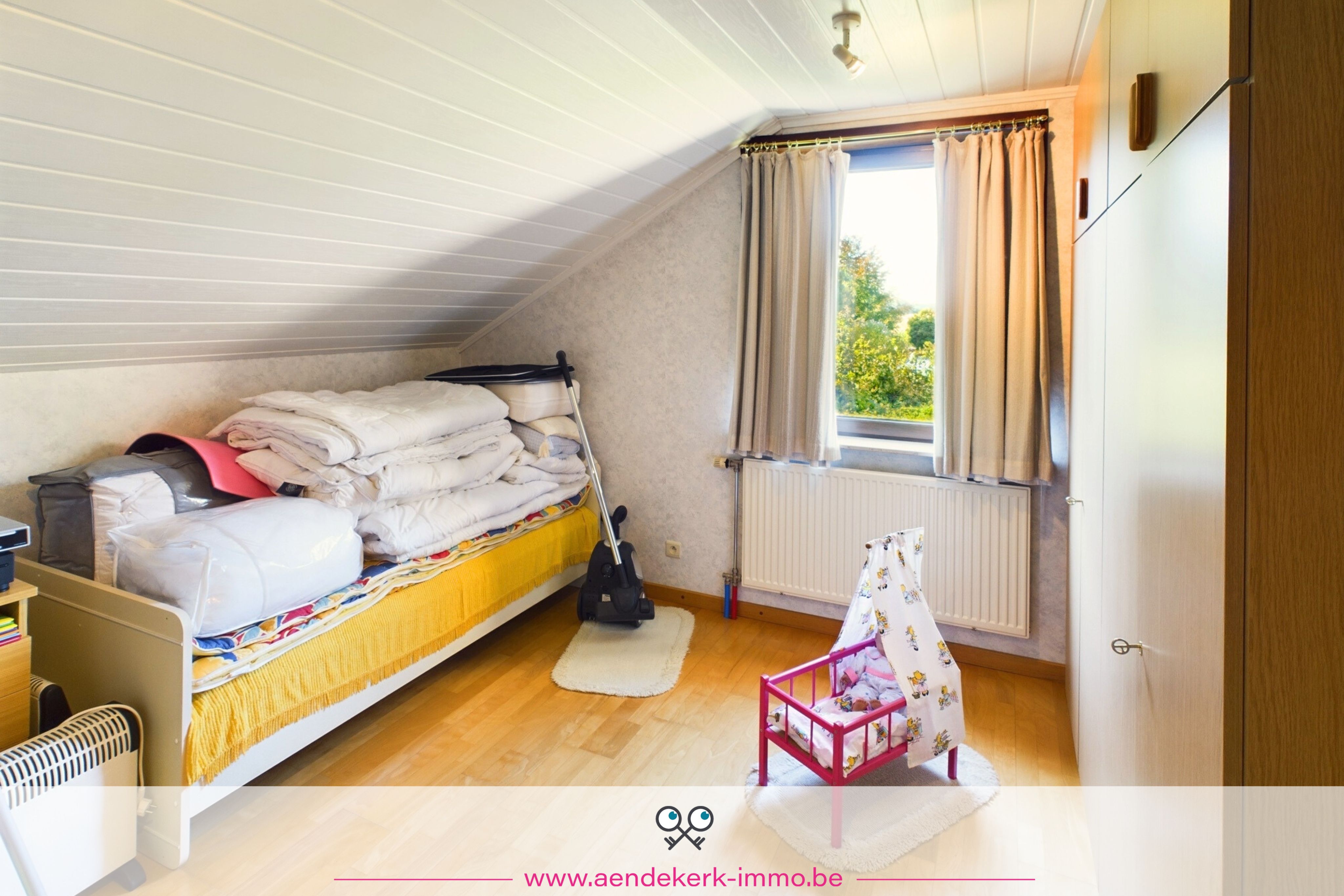 Bij het binnenkomen betreed je een ruime inkomhal die toegang biedt tot de verschillende leefruimtes. De woonkamer is royaal opgezet en baadt in het daglicht dankzij de grote ramen, die meteen een verbinding met de groene tuin geven. Hier is het fijn vertoeven voor een gezellig samenzijn of een avondje ontspannen.