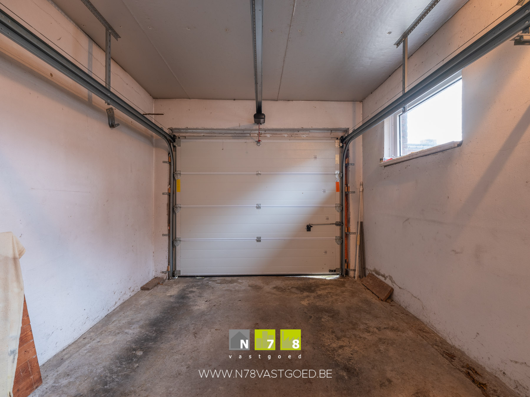 - Gemetste garage (4,71m x 2,93m = 13,80m²): automatische sectionaalpoort, betonvloer.