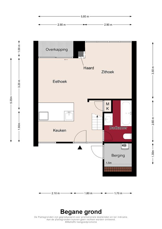 Entree, halfopen keuken met een laminaatvloer (op een doorlopende tegelvloer) en een vernieuwde combinatie in hoekopstelling met 4-pits gaskookplaat, afzuigkap, koelkast, magnetron en een vaatwasser. De gezellige woonkamer is voorzien van een schouw met sfeervolle haard, alsmede een laminaatvloer. Middels een grote raam alsmede de schuifpui is er sprake van een fraai tuincontact. Verder is er op de begane grond de vernieuwde badkamer gelegen welke is voorzien van een wastafel met meubel, douche en een toilet. Onder de trap is de meterkast geplaatst. Aan de voorzijde van de woning is een verwarmde berging gelegen met wasmachineaansluiting en plaatsing cv-combi ketel (Intergas HR, eigendom, ca. 2015).