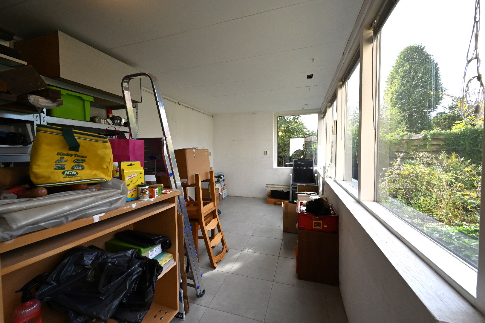 - De multifunctionele ruimte heeft houten kozijnen met zowel enkele als dubbele beglazing;