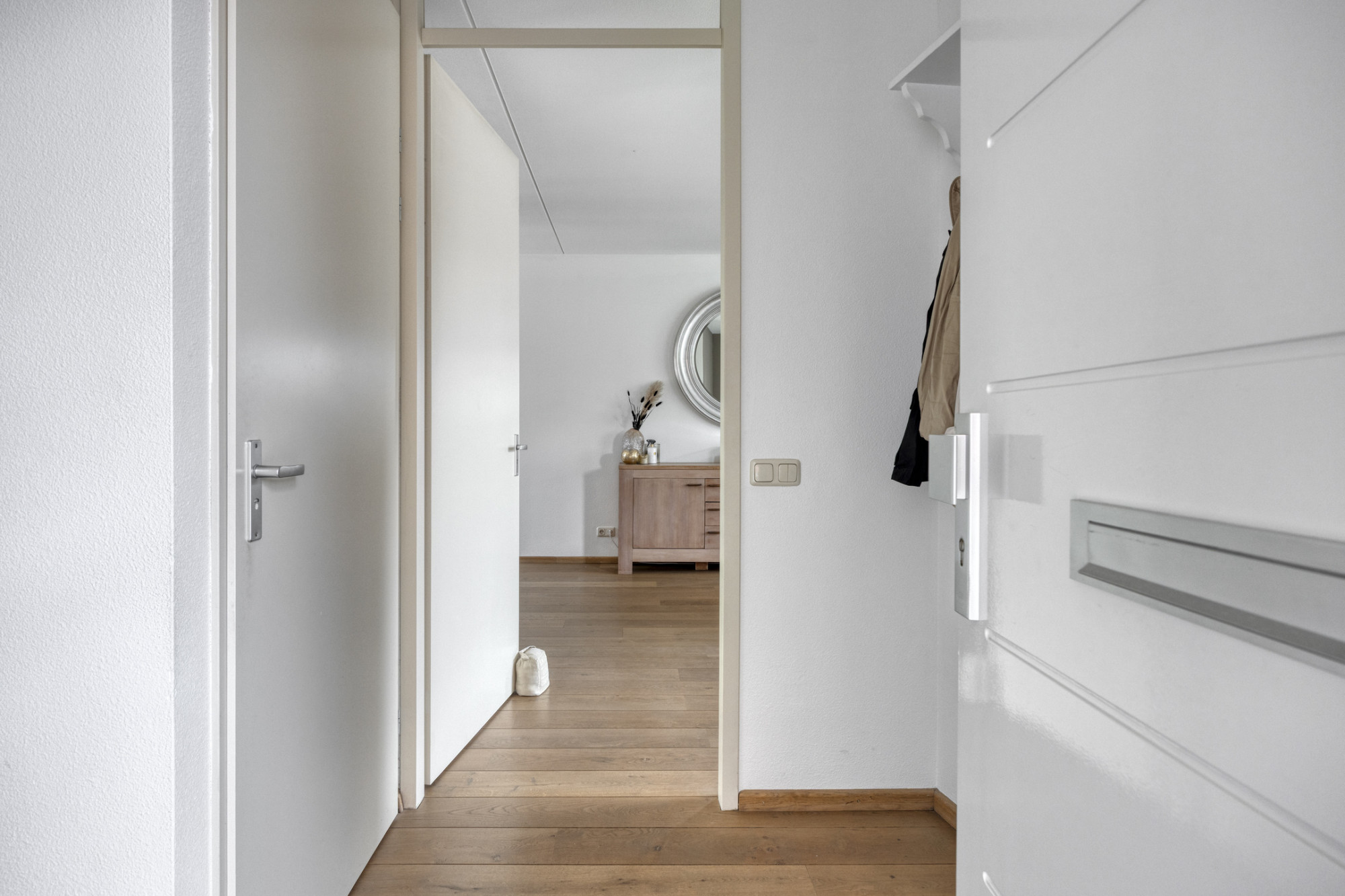 Ruime en lichte hal met meterkast.