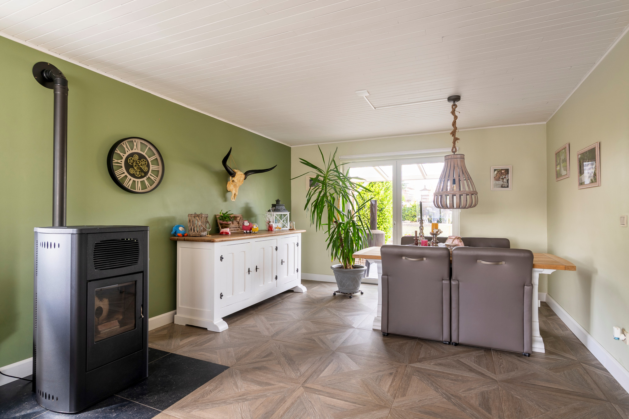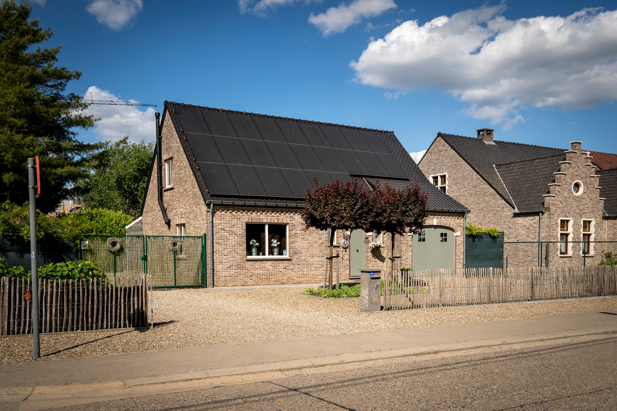 The house further features 24 photovoltaic panels (2024 yield of 4.21 MWh) and a home battery, water softener, fixed built-in cupboards and a pellet stove.