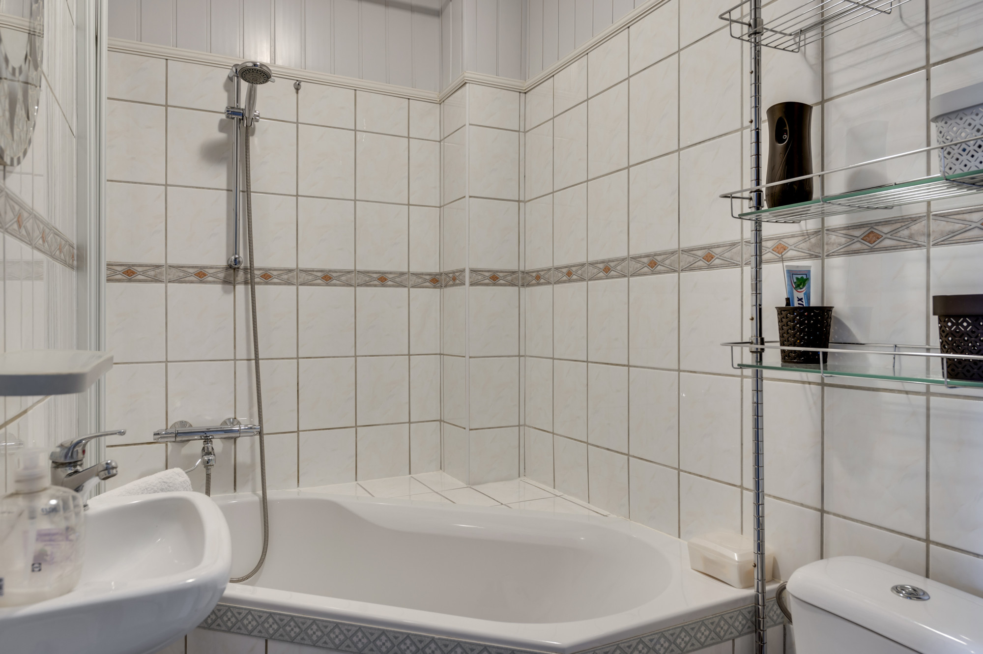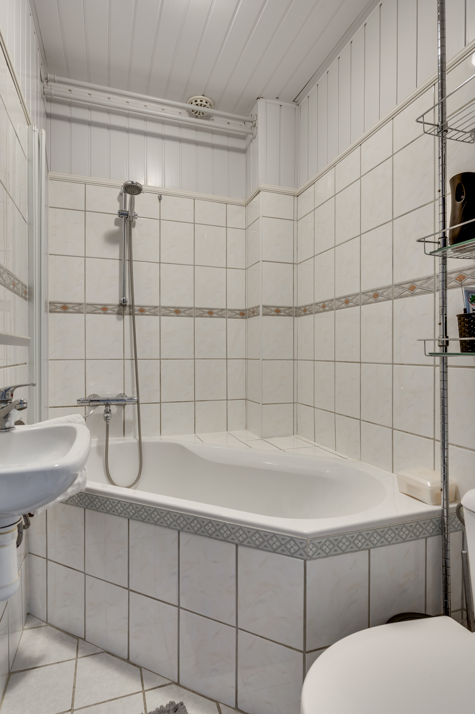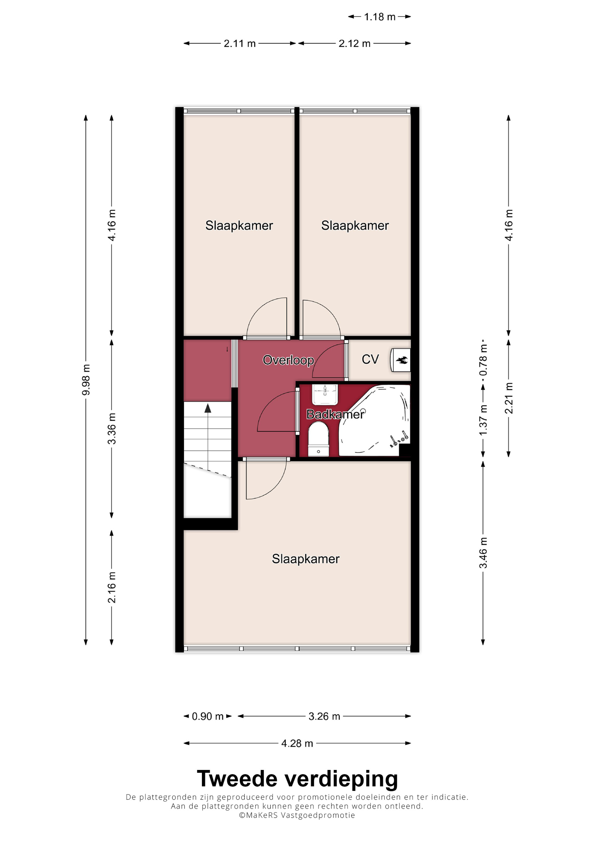 Via een vaste trap geeft de overloop toegang tot 3 ruime, lichte slaapkamers, de badkamer en een praktische opbergkast waar tevens de cv-ketel (Vaillant HR, ca. 2013, Eigendom) is opgesteld. Aan de achterzijde van de woning zijn 2 slaapkamers en aan de voorzijde de hoofdslaapkamer ook wel de master bedroom genoemd. De geheel betegelde, nette badkamer is voorzien van een ligbad, toilet en wastafel.