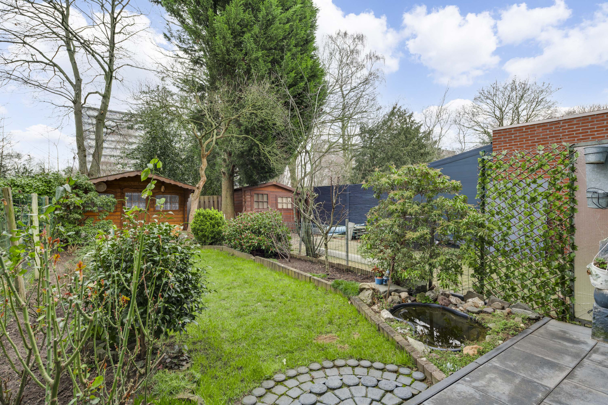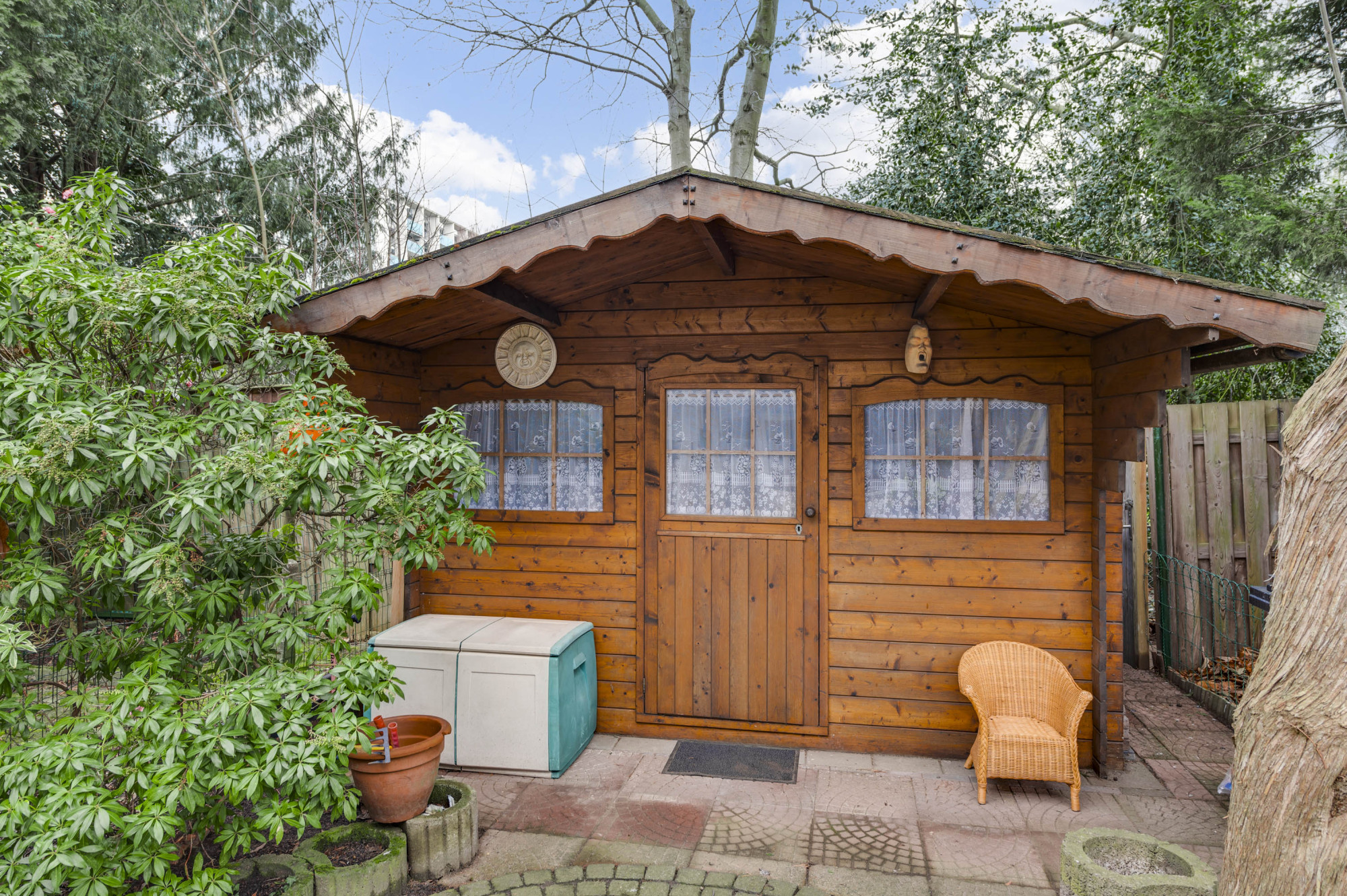 De woning is voorzien van een eigen voor- en achtertuin. De voortuin is fraai aangelegd met diverse beplanting. De diepe zonnige achtertuin is gelegen op het zuidwesten waardoor het hier tijdens de zomerdagen heerlijk vertoeven is. Voor schaduwliefhebbers biedt de tuin tevens een overkapping/overstek aan de woning. Verder beschikt de achtertuin over een gazon, borders, terrassen en een praktisch houten tuinhuis met overkapping en een vrije achterom.