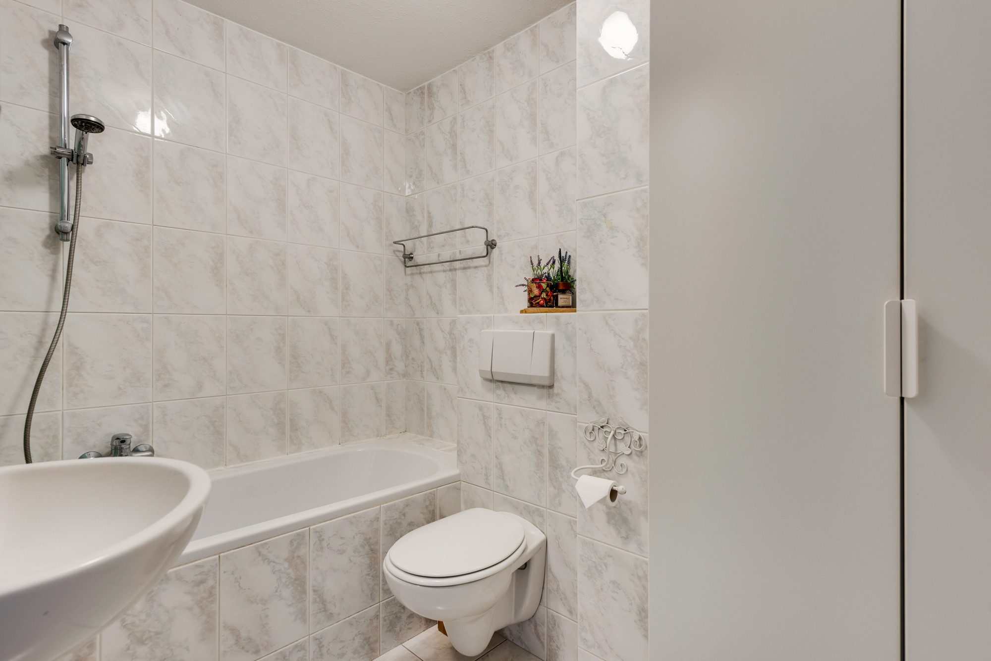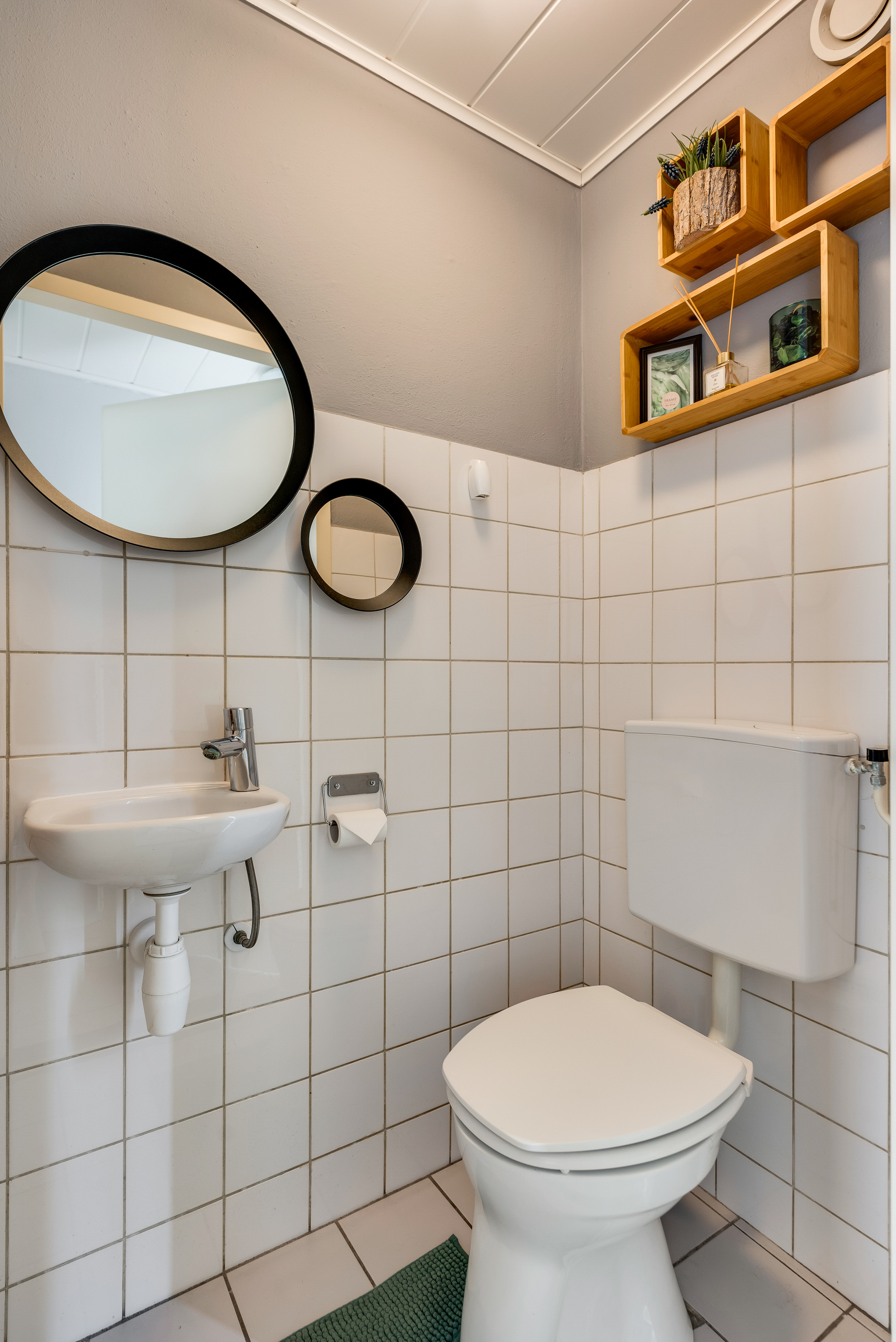 Via de overloop zijn hier de eerste 4 slaapkamers en de badkamer toegankelijk. De badkamer is geheel betegeld en voorzien van een ligbad/douchecombinatie, zwevend toilet, wastafel en een wastafelmeubel. De eerste verdieping is met uitzondering van de badkamer uitgerust met een laminaatvloer.