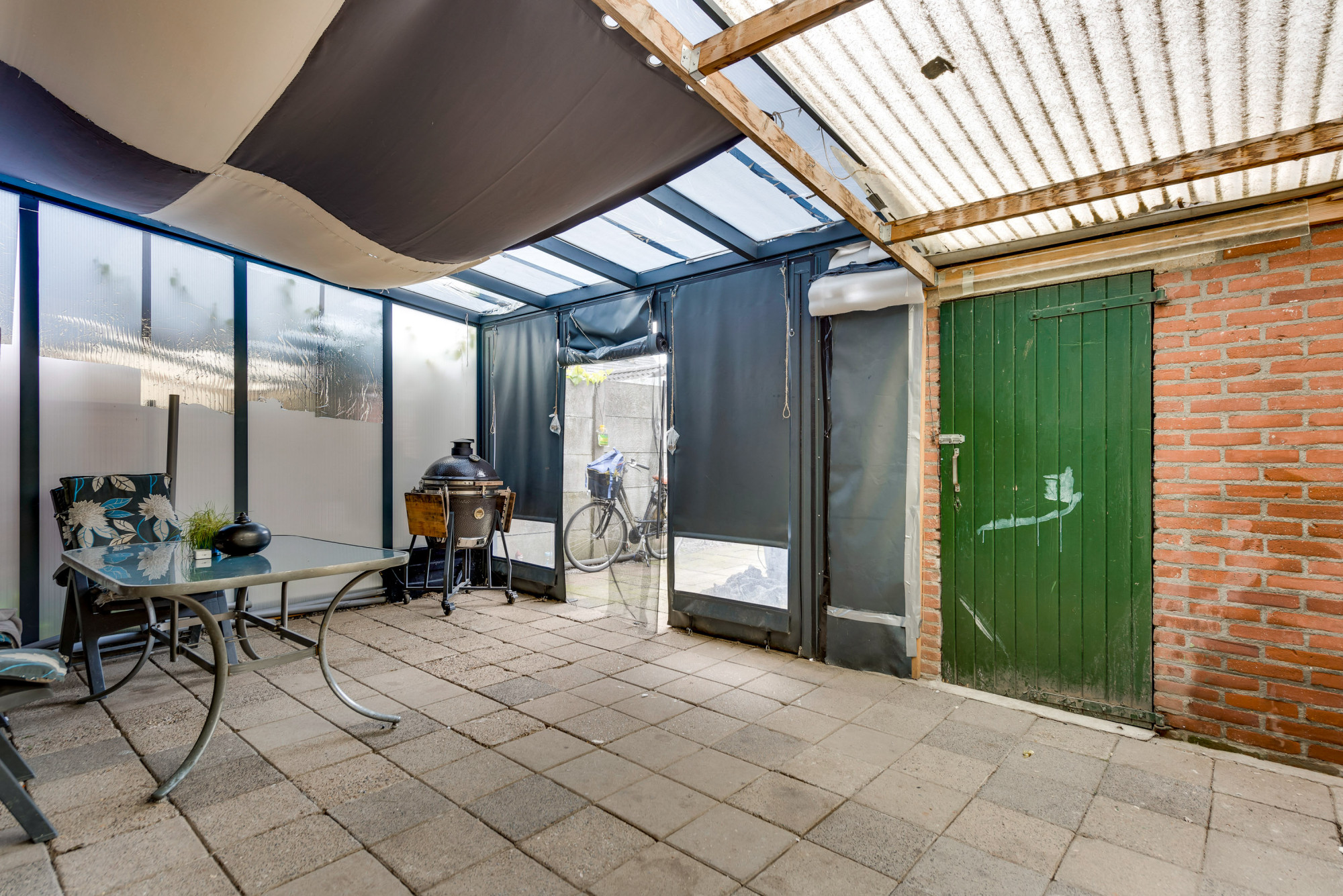 Houten kozijnen met dubbel glas en grotendeels voorzien van rolluiken. De woning heeft muurisolatie en dakisolatie en is voorzien van acht zonnepanelen en twee airco's.