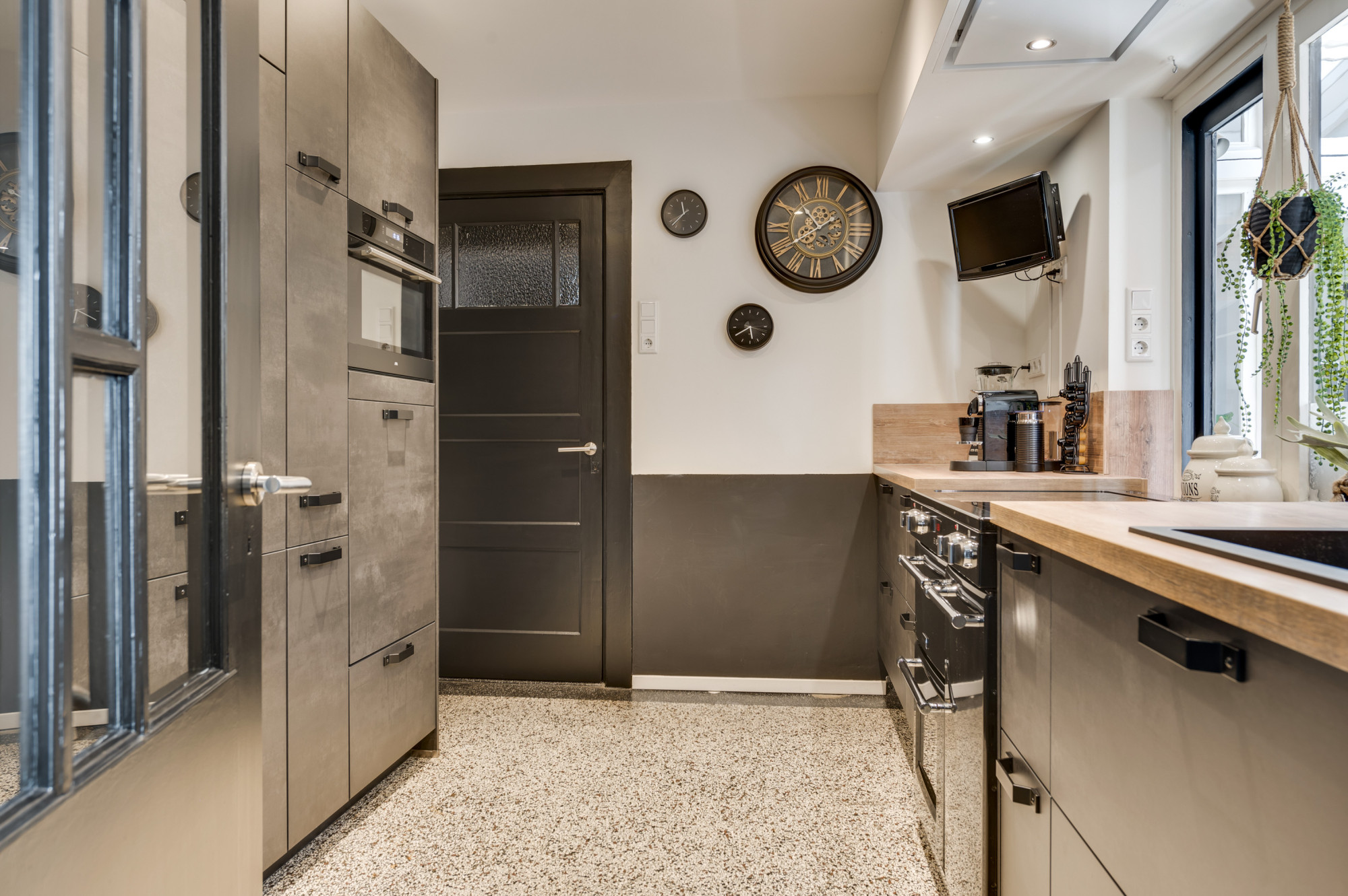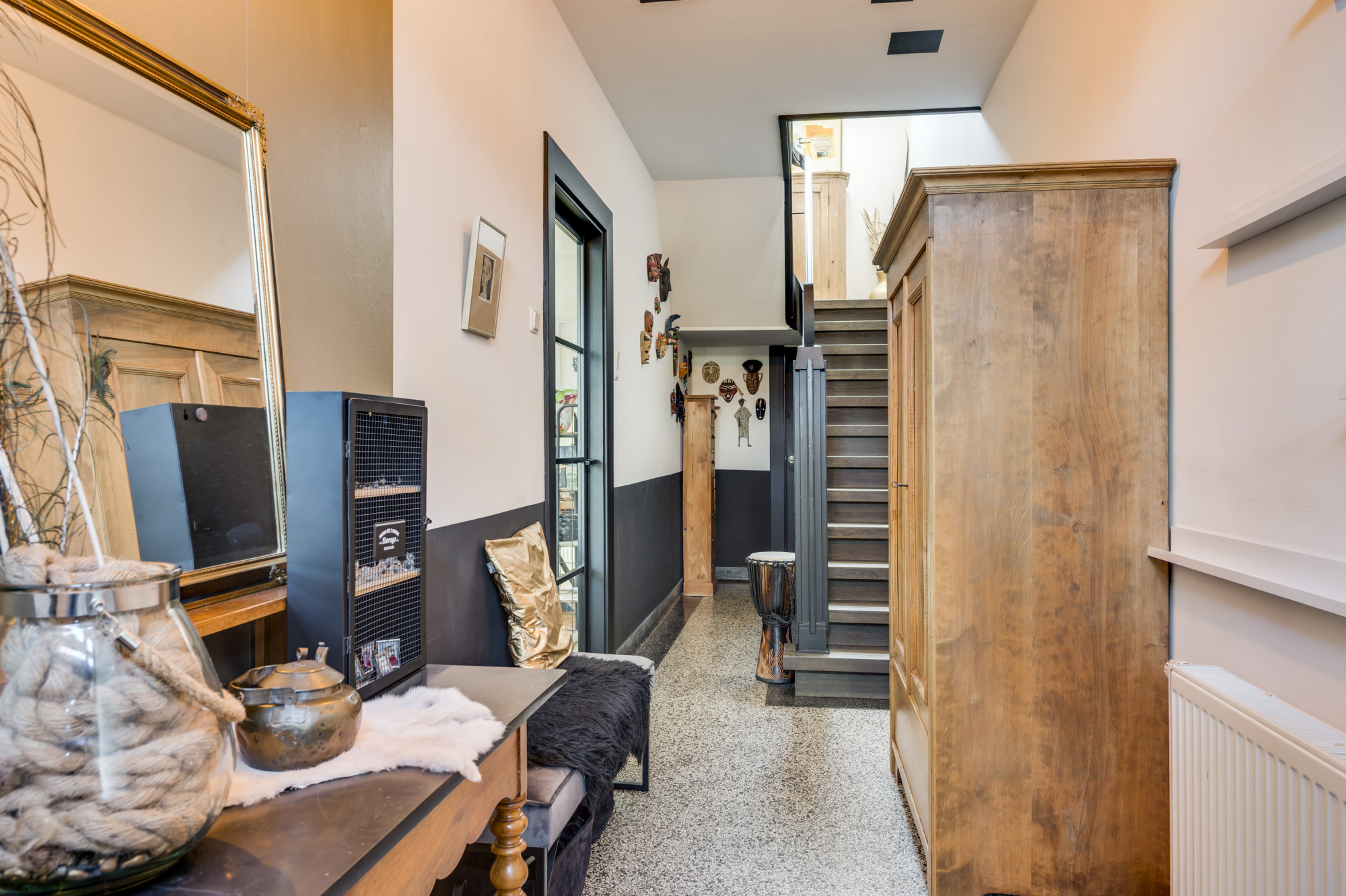Bij binnenkomst via de uitnodigende hal springt direct de originele terrazzovloer in het oog. Deze vloer vormt een stijlvolle basis en benadrukt het authentieke karakter van de woning. De hal biedt toegang tot de woonkamer, keuken en kelder en heeft een trapopgang naar de eerste verdieping. De riante woonkamer is een lichte en sfeervolle ruimte, mede dankzij het grote raam aan de voorzijde dat volop daglicht binnenlaat. De combinatie van de houtkachel en de moderne laminaatvloer zorgt voor een warme en gezellige sfeer, ideaal voor lange avonden met familie en vrienden. Aangrenzend bevindt zich de tuinkamer, een multifunctionele ruimte die naar wens kan worden gebruikt als werkplek, speelkamer of tweede zithoek. Via een schuifpui heeft u directe toegang tot de diepe achtertuin, die veel privacy biedt en een oase van rust is. De moderne keuken, eveneens voorzien van een terrazzo vloer, is van alle gemakken voorzien. Inbouwapparatuur zoals een inductiekookplaat, afzuigkap, oven, combi-oven, koel-/vriescombinatie en vaatwasser maken koken een plezier. De keuken biedt verrassend veel kastruimte, zodat alles netjes en georganiseerd kan worden opgeborgen. Via een tussenhal, waar zich de toiletruimte, wasruimte en cv-ruimte (Intergas HRE, eigendom, 2013) bevinden, is de tuinkamer bereikbaar en er is een loopdeur naar de achtertuin.