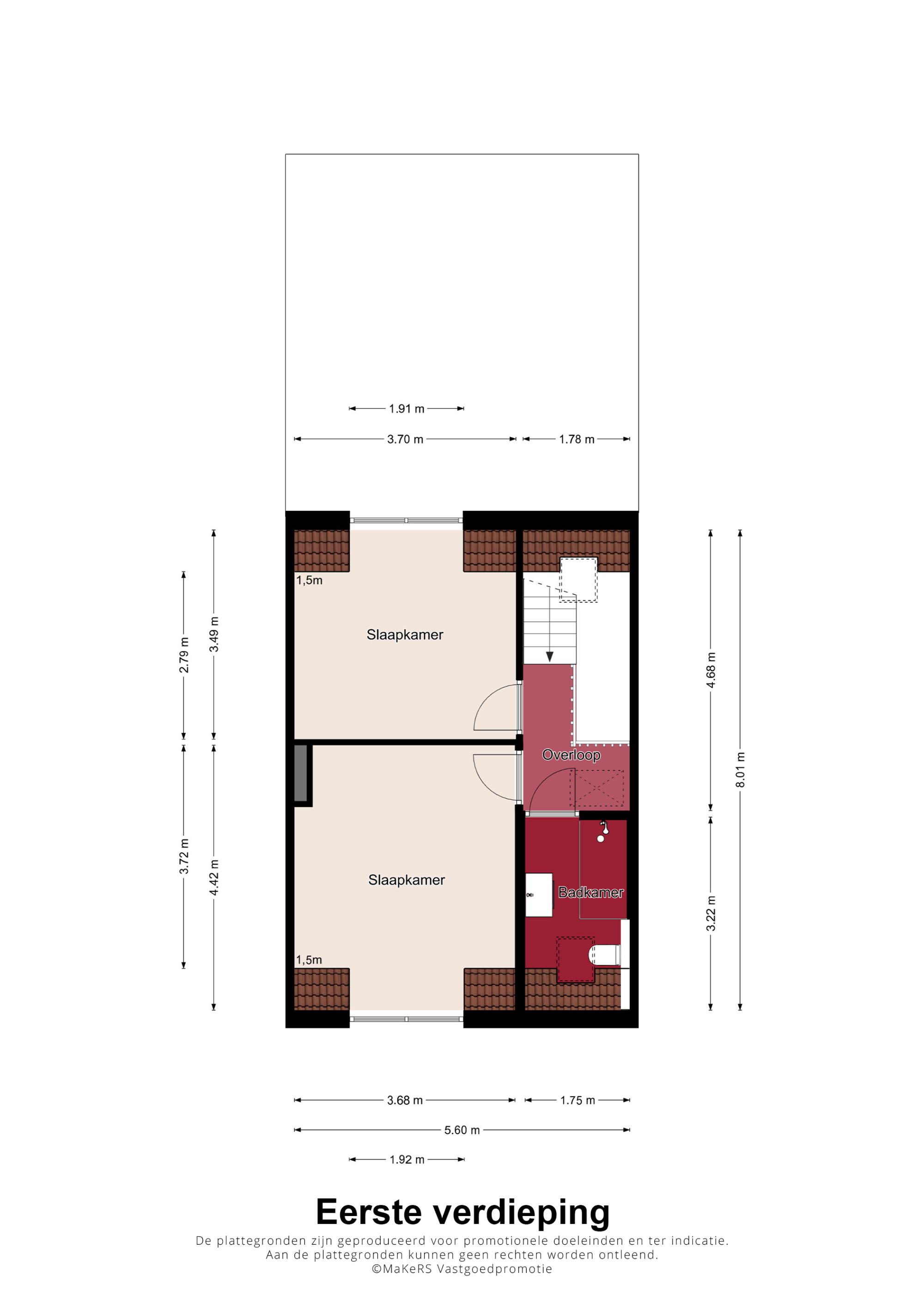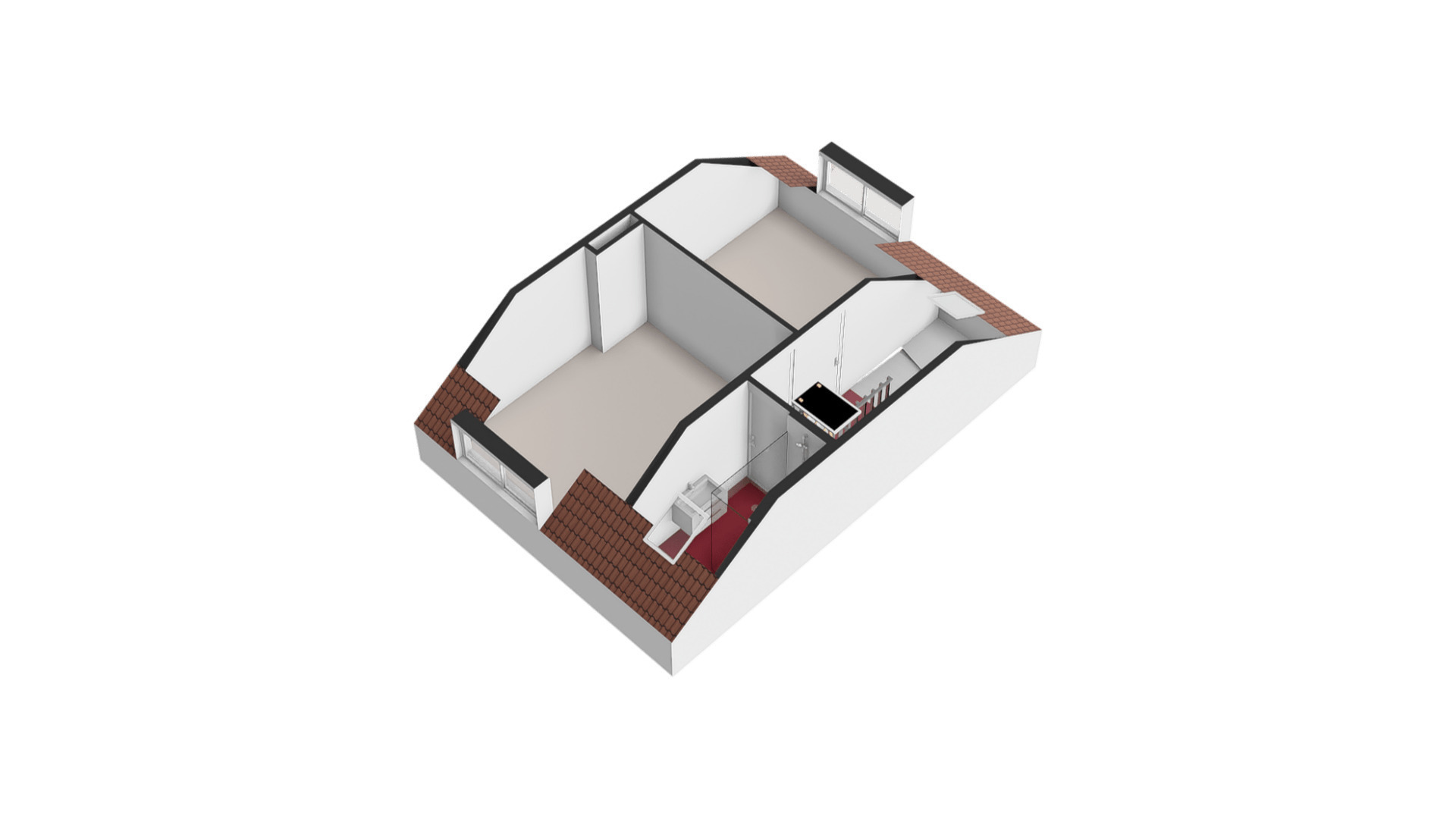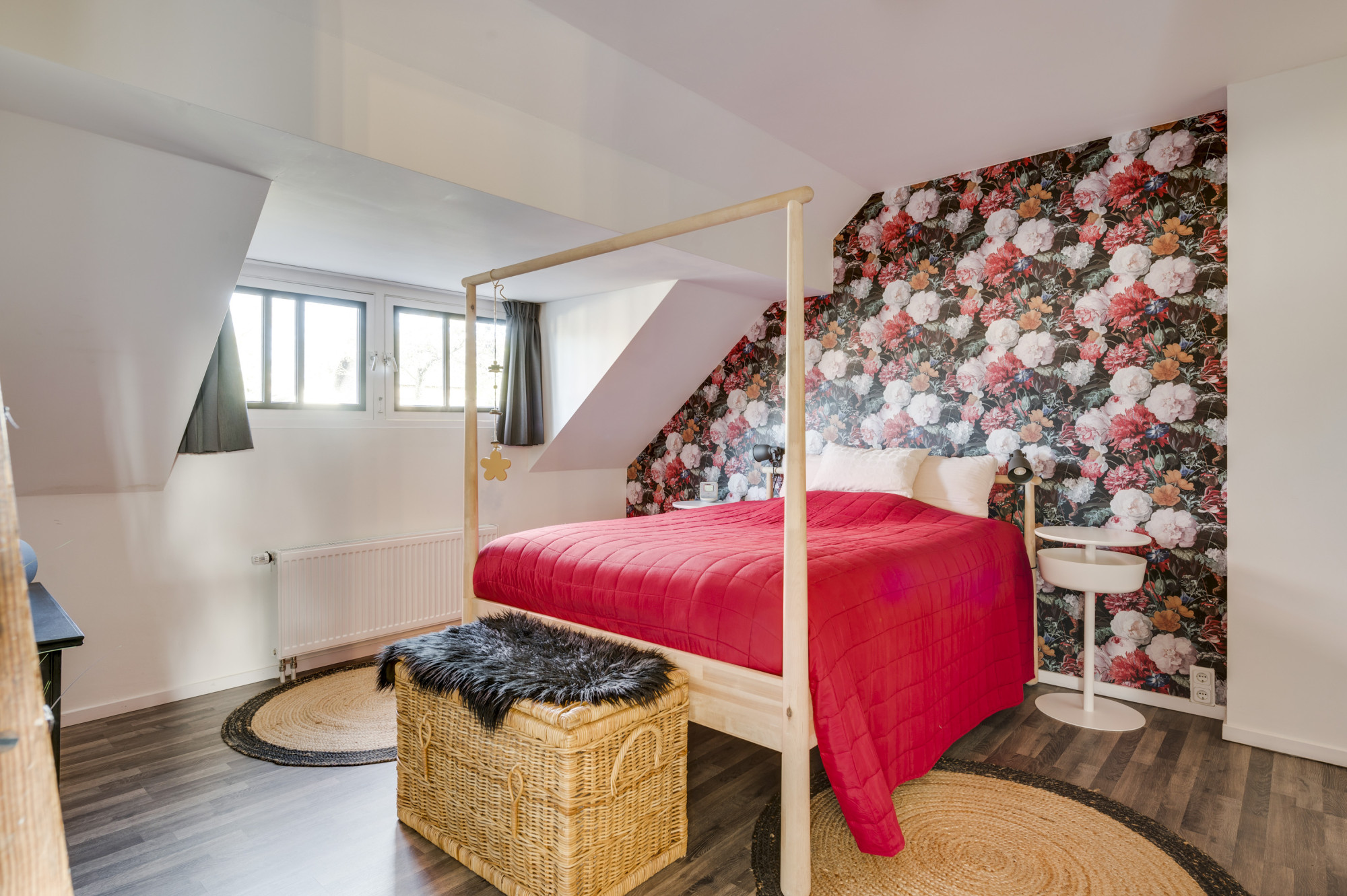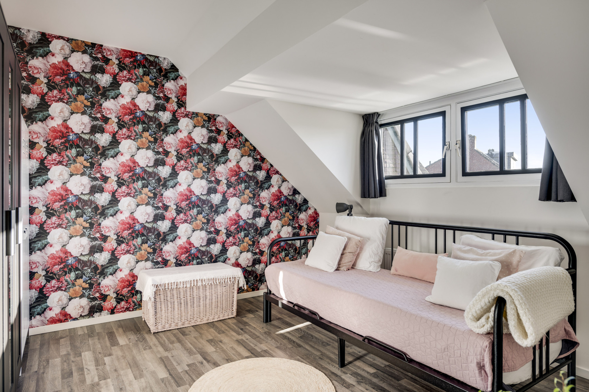 De overloop op de eerste verdieping geeft toegang tot twee royale slaapkamers, beide uitgerust met een dakkapel, wat zorgt voor extra licht en ruimte. De badkamer is modern ingericht met een ruime douche, een stijlvol wastafelmeubel en een zwevend toilet.