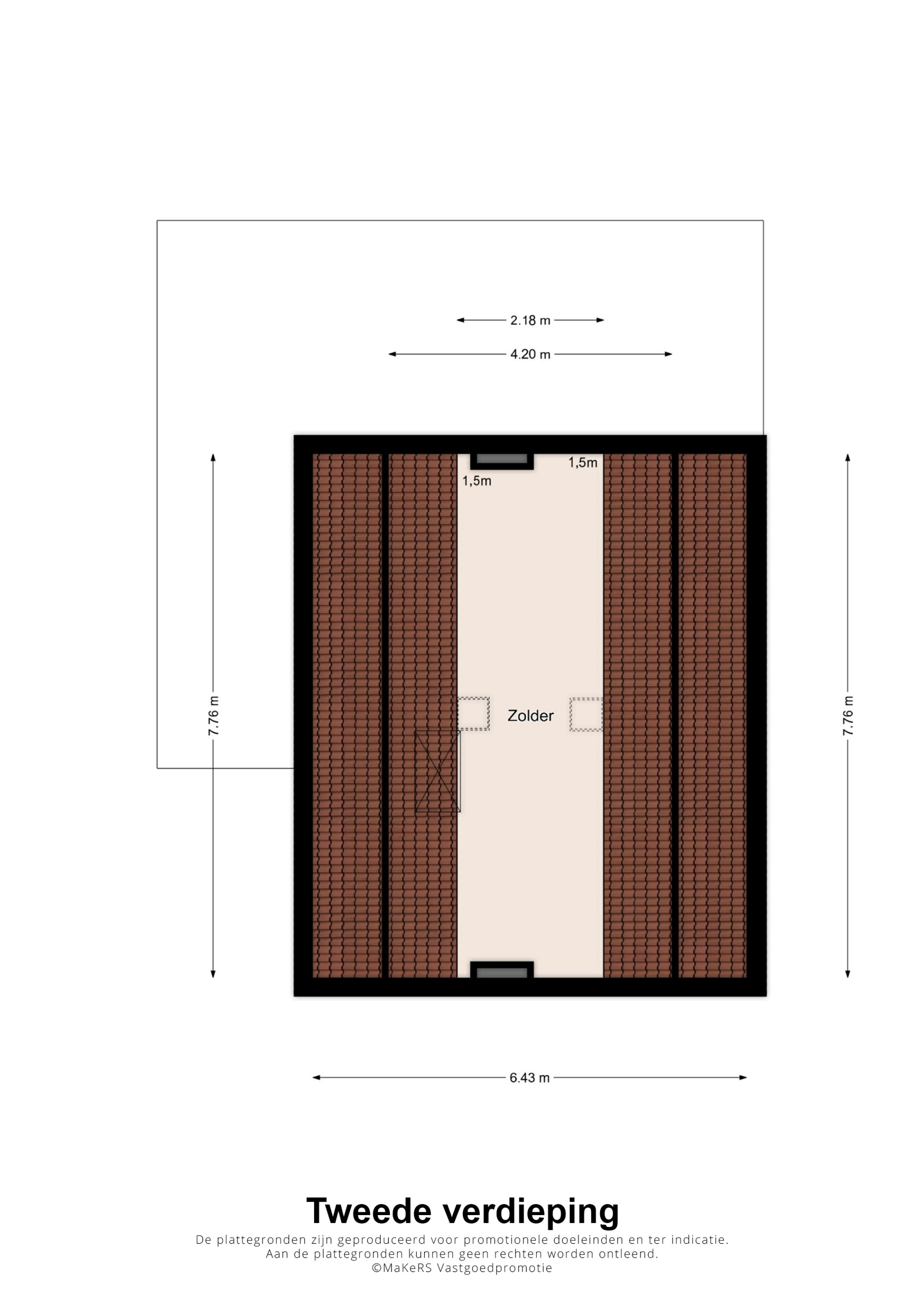 Een vlizotrap leidt naar de bergzolder, ideaal voor het opslaan van seizoensspullen. Mogelijkheid vaste trap is aanwezig om een extra kamer op deze verdieping te realiseren.