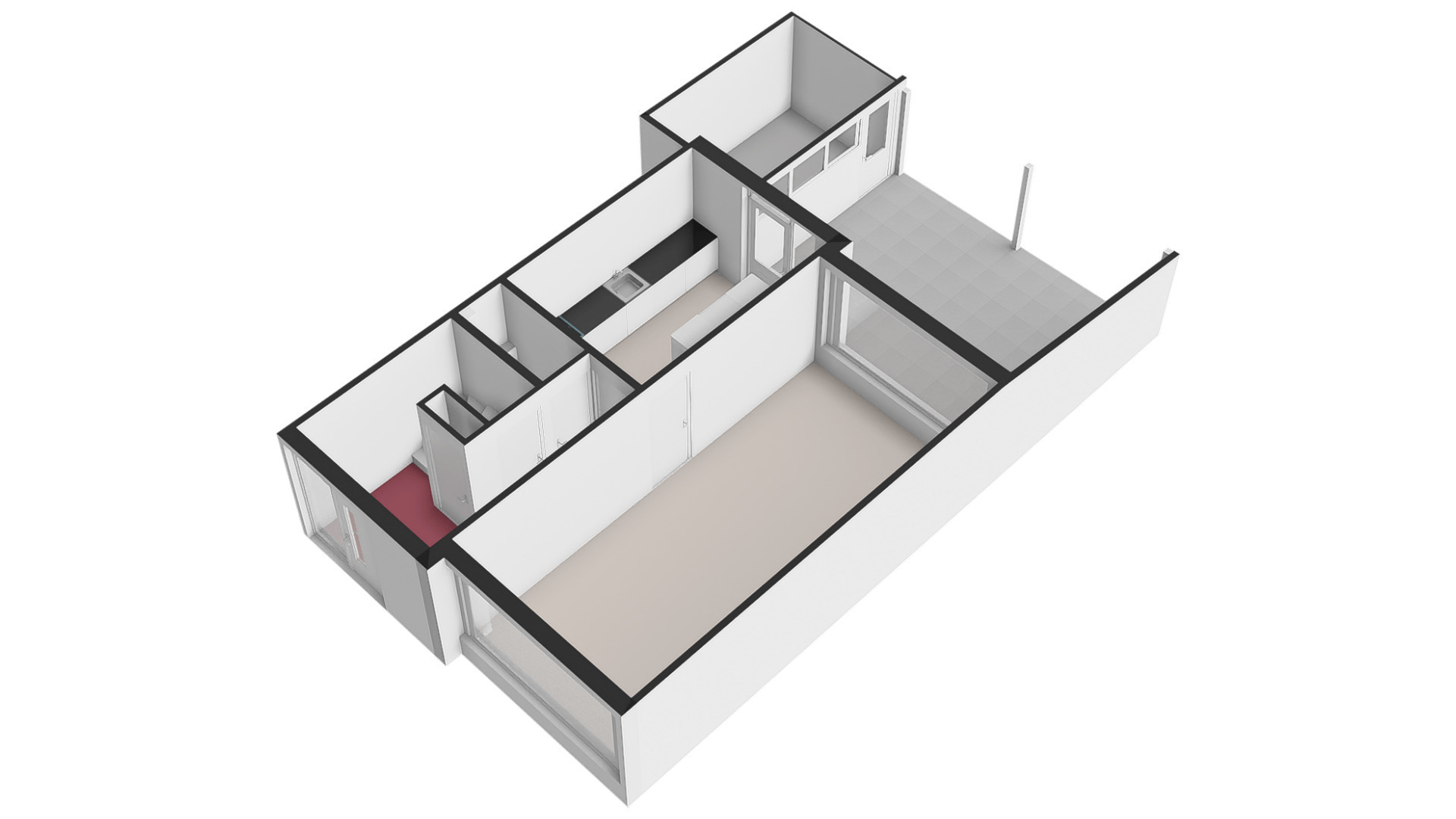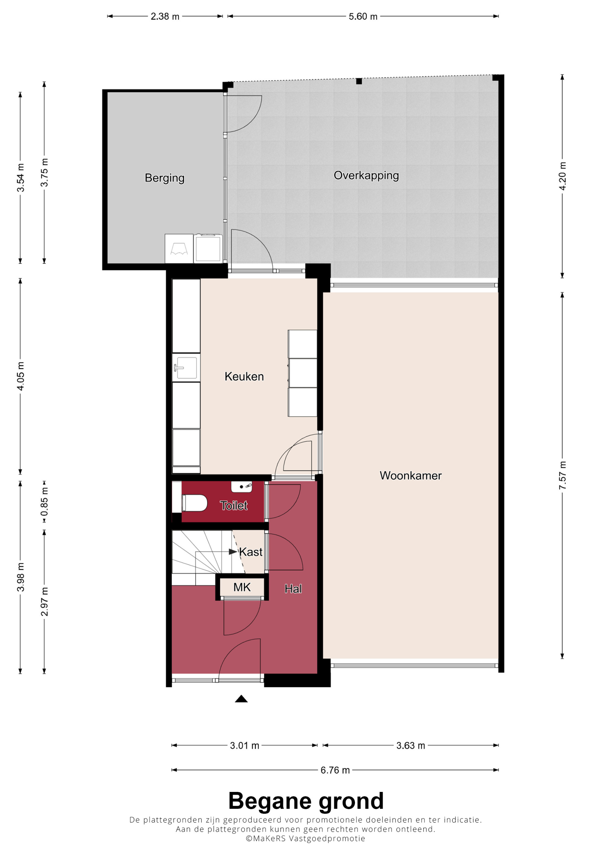 Begane grond (voorzien van een tegelvloer en een novilon vloer):