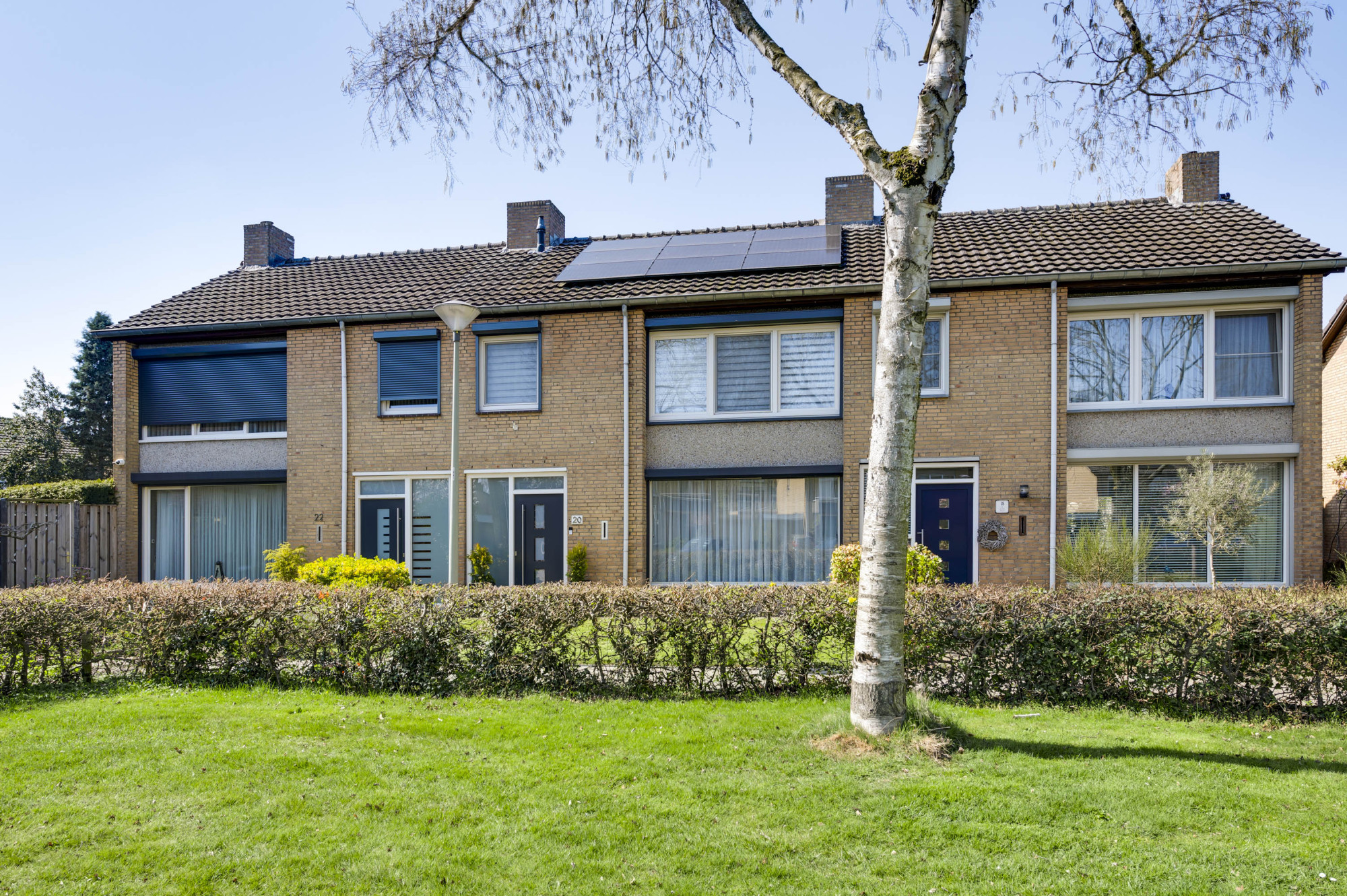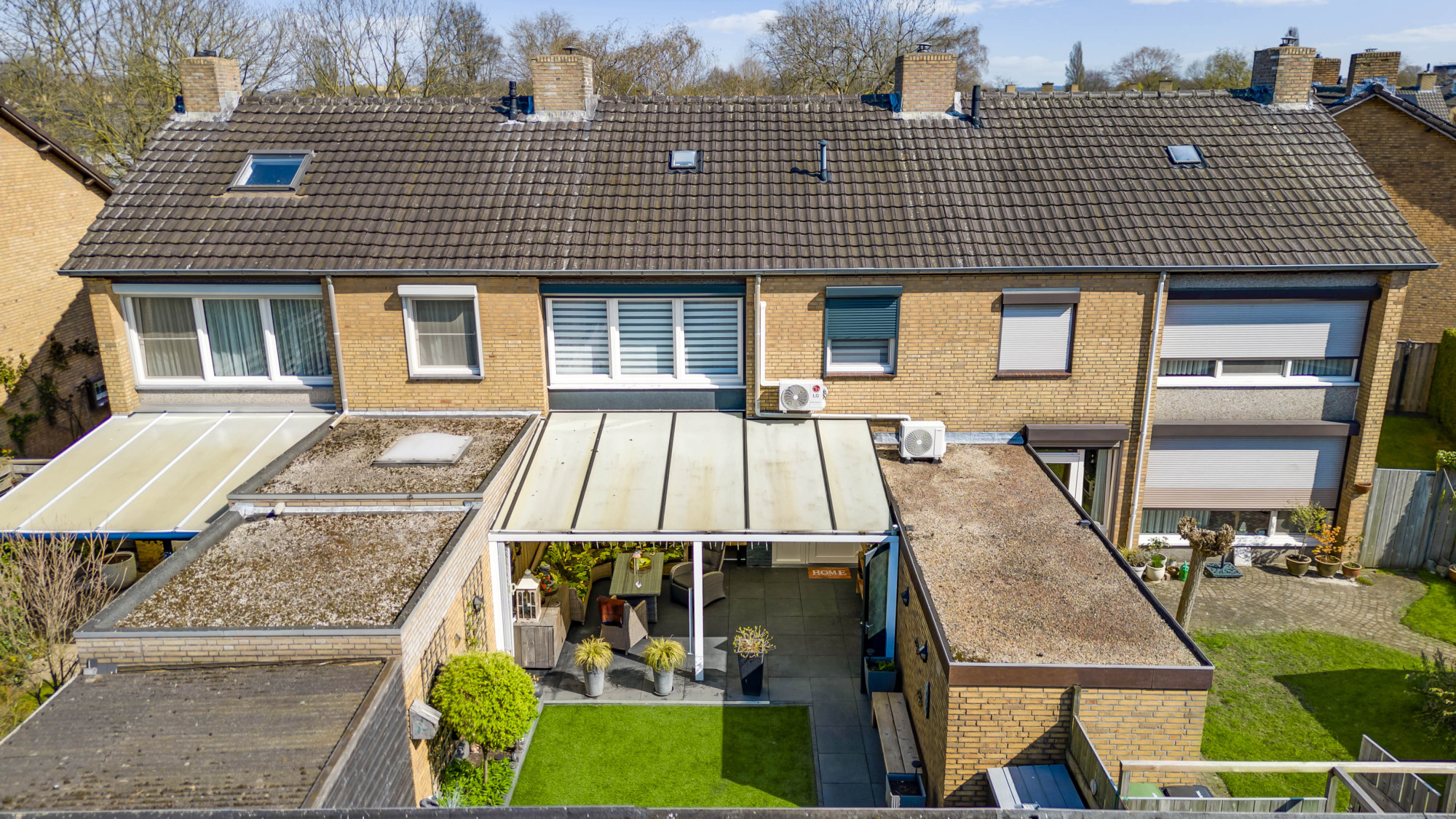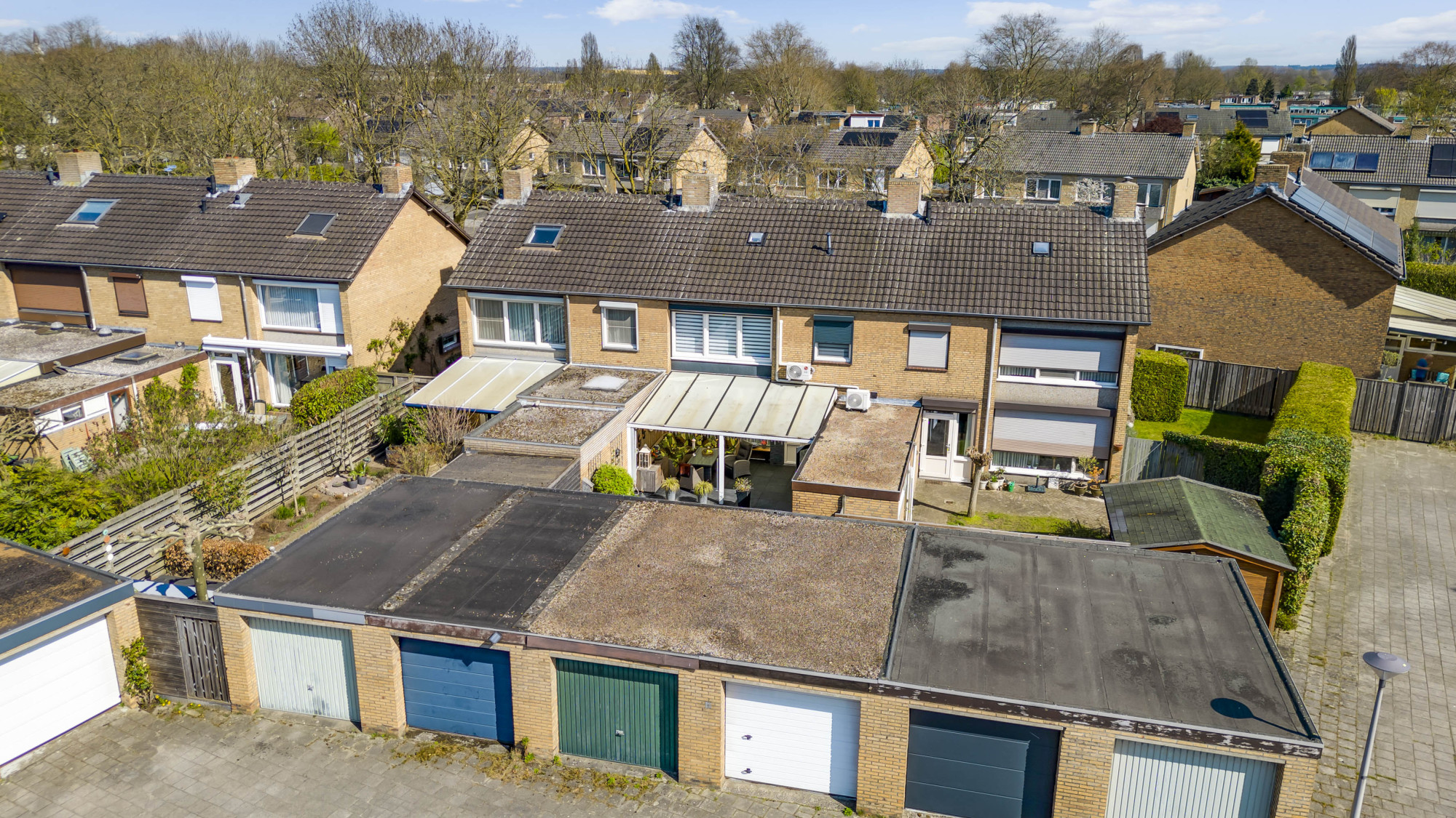 De voor- en achtertuin zijn mooi aangelegd, waarvan de zonnige achtertuin is voorzien van een terras met hoogwaardige overkapping, kunstgazon, borders, berging en een vrije achterom! Verder is er nog, direct vanuit de eigen tuin, toegang tot de garage met elektrische sectionaalpoort die leidt naar het achter terrein.