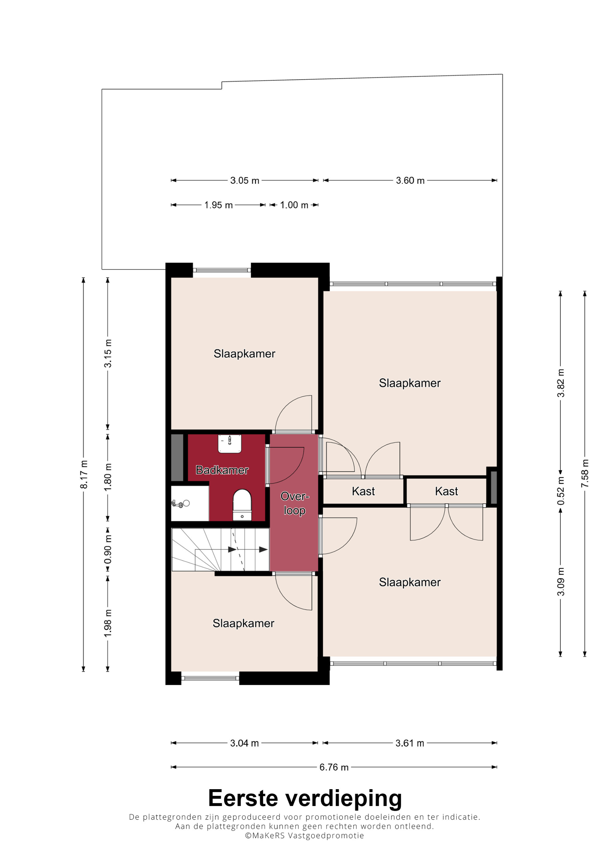 1e verdieping (voorzien van een laminaatvloer):