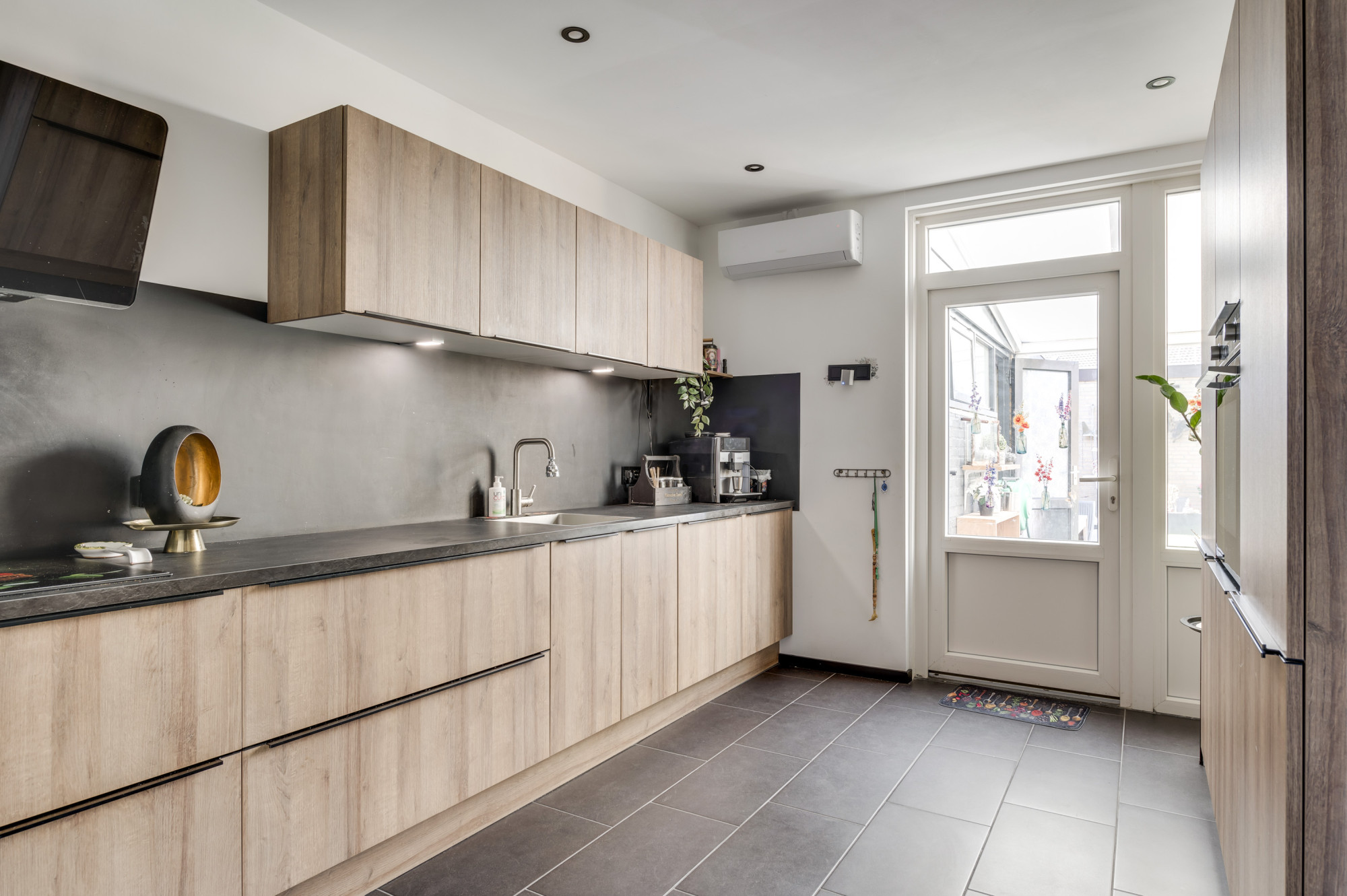 Verrassend ruime hal/entree met tegelvloer, vernieuwde meterkast en een vernieuwde toiletruimte met toilet en fonteintje. De woonkamer biedt een novilon vloer en heeft natuurlijk licht inval en fraai vrij uitzicht! De woonkeuken met tegelvloer en airconditioning (verwarmen en koelen) is voorzien van een luxe combinatie (2024) met diverse inbouwapparatuur (inductiekookplaat, afzuigkap, combi-oven, koelkast, een close-in-boiler en een vaatwasser). Verder is er een heerlijke overkapping en een aangebouwde berging/bijkeuken aanwezig met tegelvloer en witgoedaansluitingen.