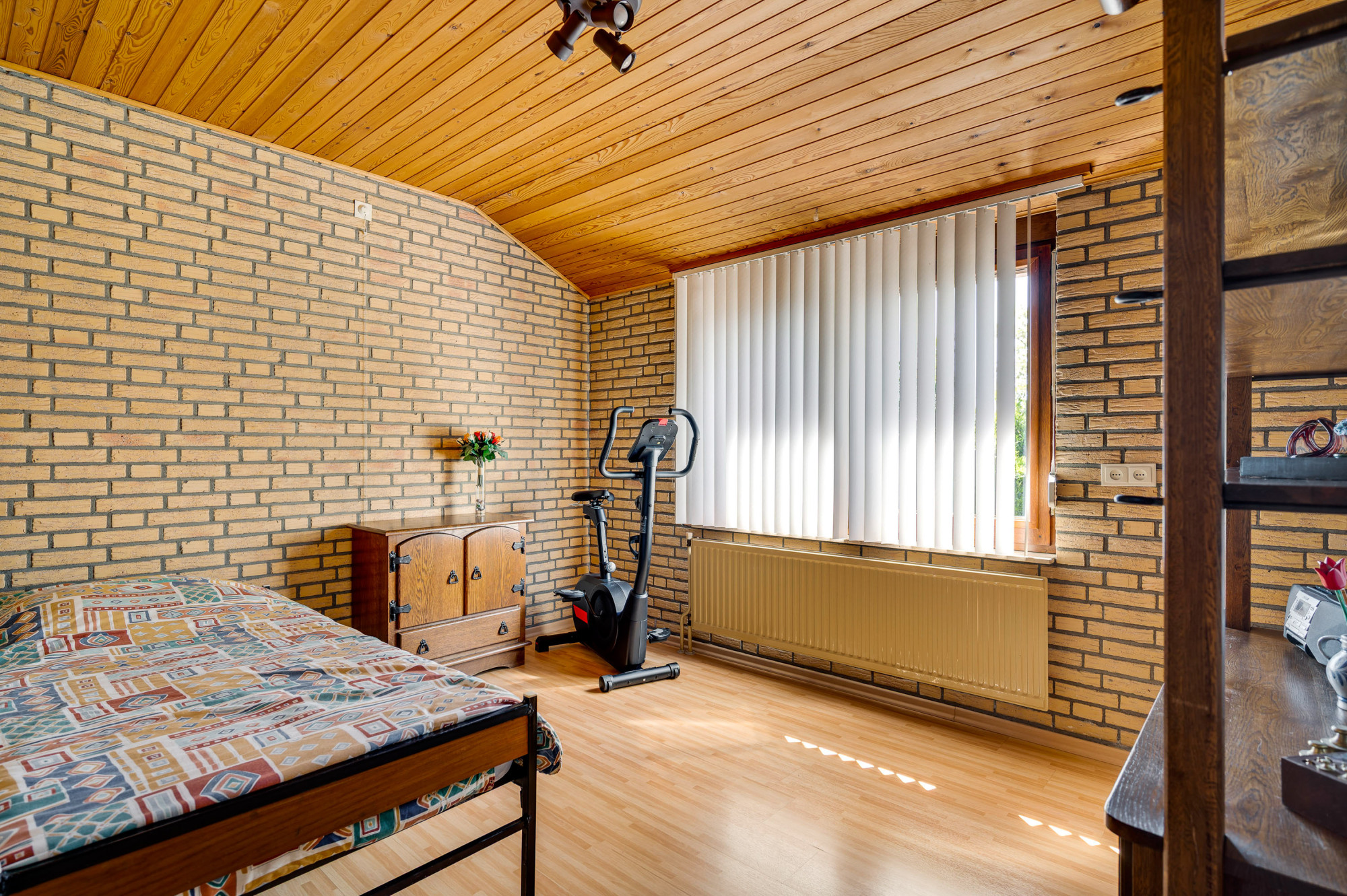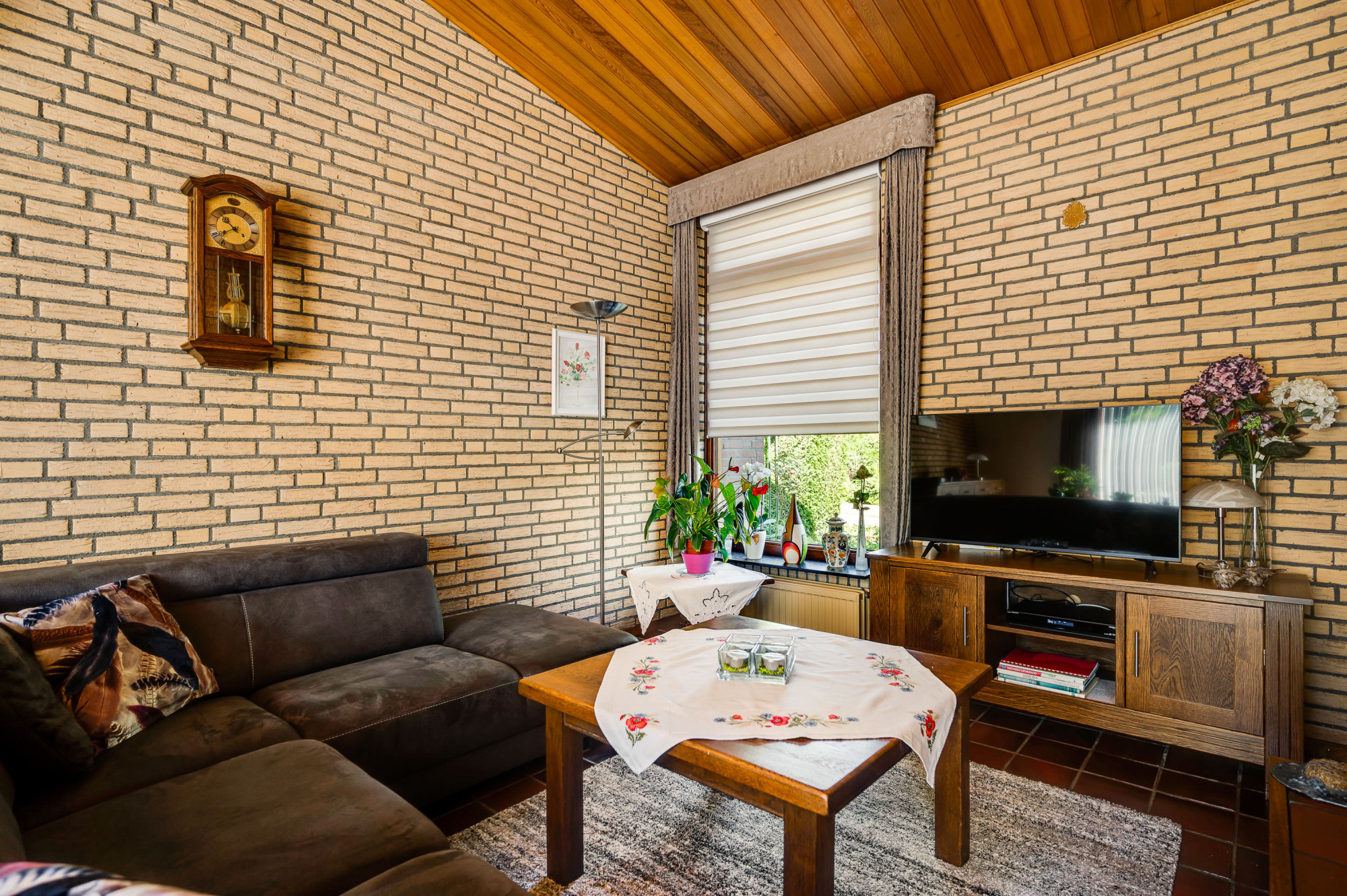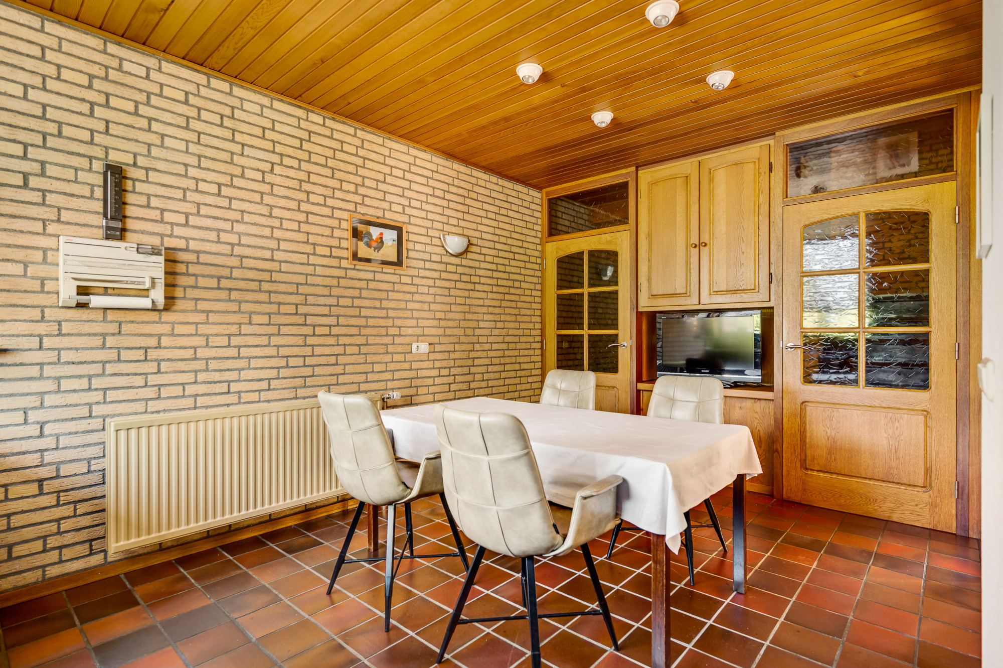 U betreedt de woning via de hal, met toegang tot de woonkamer, de woonkeuken en een moderne toiletruimte voorzien van een zwevend toilet en fonteintje. De riante L-vormige woonkamer biedt een prettige lichtinval en een directe verbinding met de tuin via een dubbele schuifpui. Hier komt het buitenleven letterlijk naar binnen. Een sfeervolle open haard en airconditioning zorgen voor extra comfort in elk seizoen. De woonkeuken is ook vanuit de woonkamer bereikbaar en beschikt over een eenvoudige keukenopstelling met diverse inbouwapparatuur, waaronder een gasfornuis, afzuigkap en koelkast. Middels een tussenportaal is de verdieping toegankelijk.