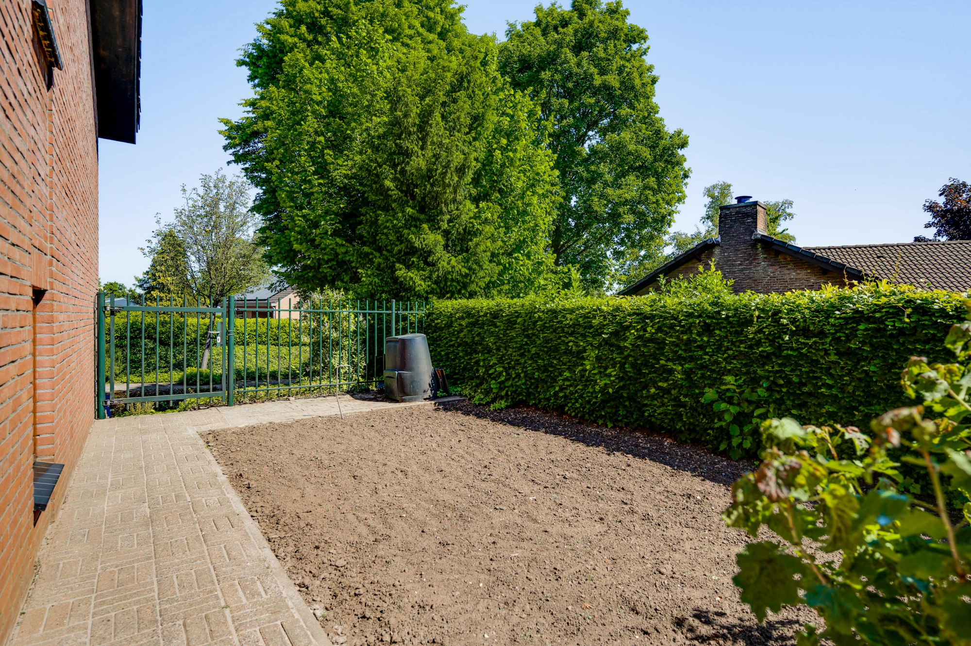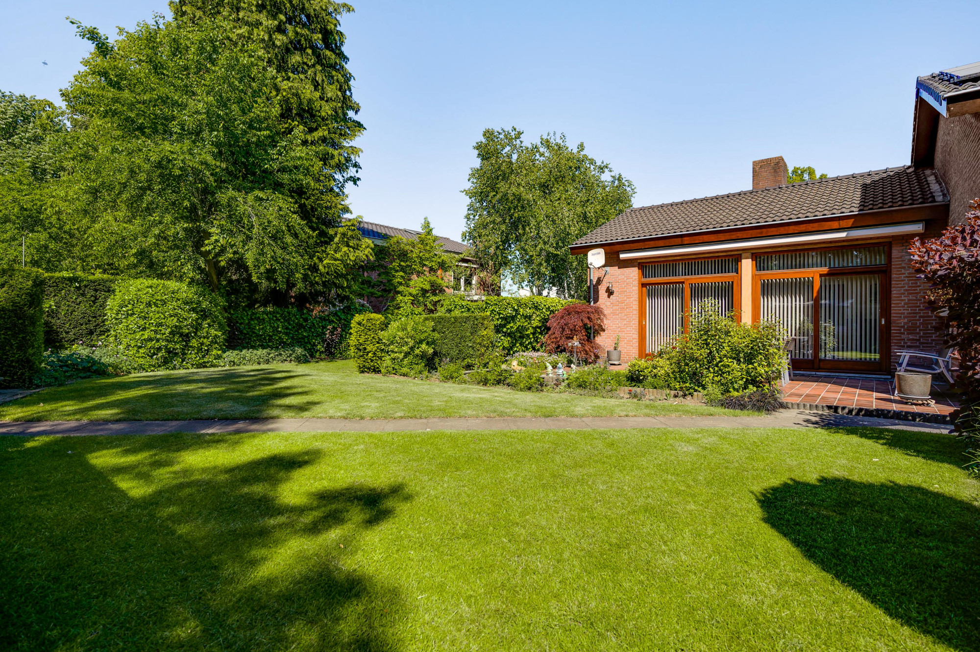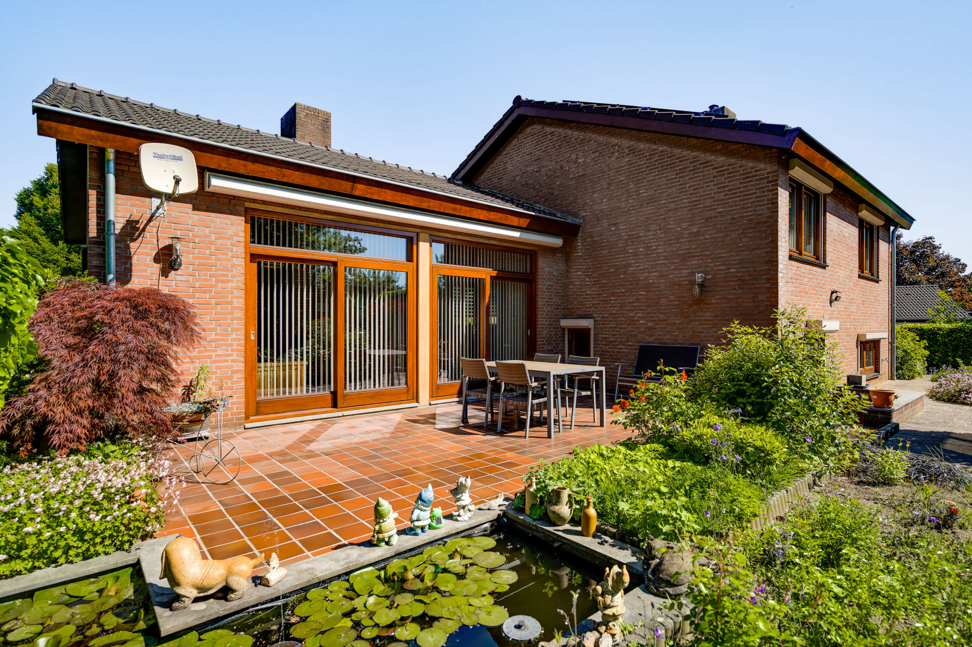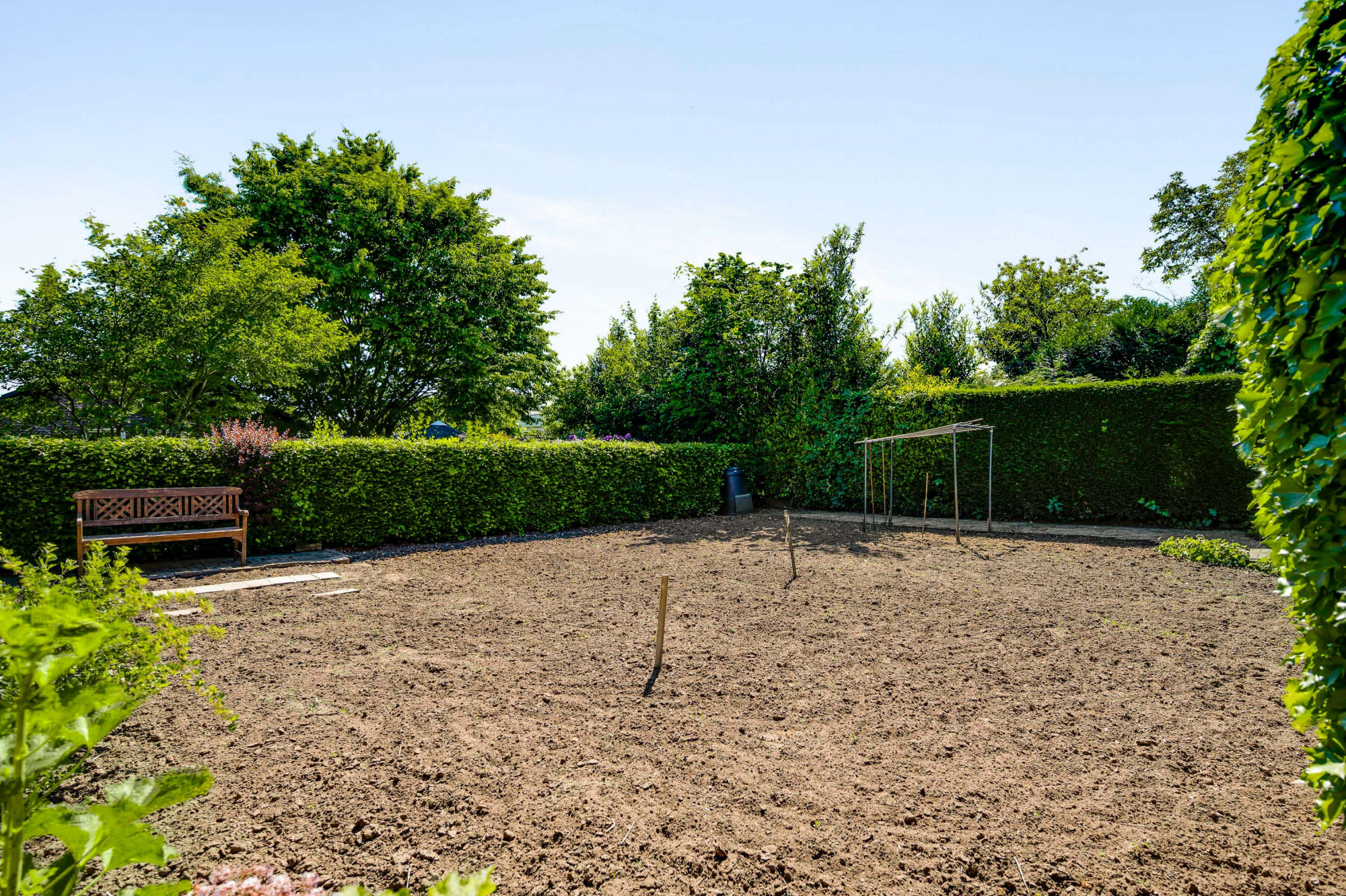 Een van de absolute pluspunten van deze woning is de tuin. De fraai aangelegde tuin rondom de woning biedt niet alleen een verzorgde voortuin en een oprit naar de garage, maar ook een riante achtertuin op het zuidoosten met volop zon, rust en privacy. De tuin is ingericht met een ruim terras met zonnescherm, een gazon, vijver, borders, volwassen beplanting, bestrating, een houten tuinhuis, een grondwaterput met een pomp en een vrij in te richten gedeelte (de moestuin), doch ook ideaal voor bijvoorbeeld speelruimte, een zwembad en/of een extra terras. Een brede vrije achterom maakt het plaatje compleet.