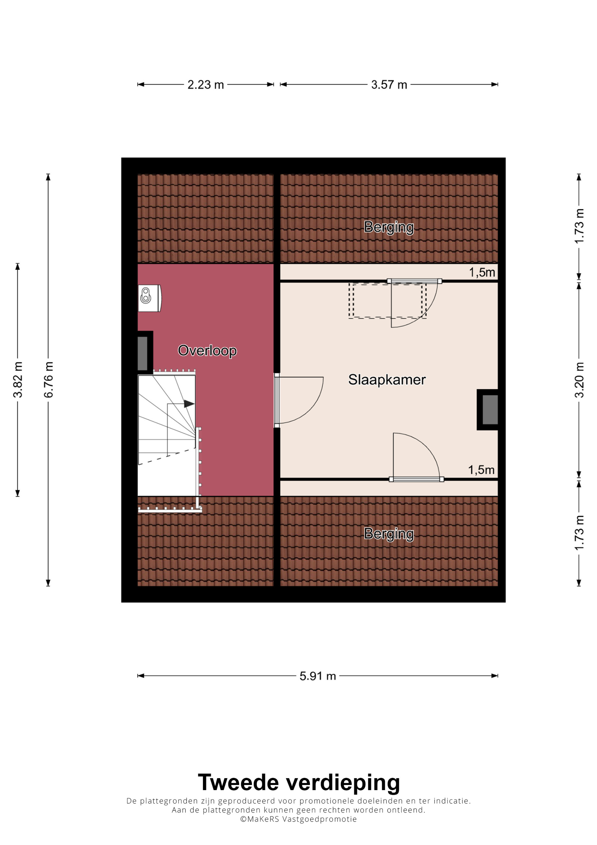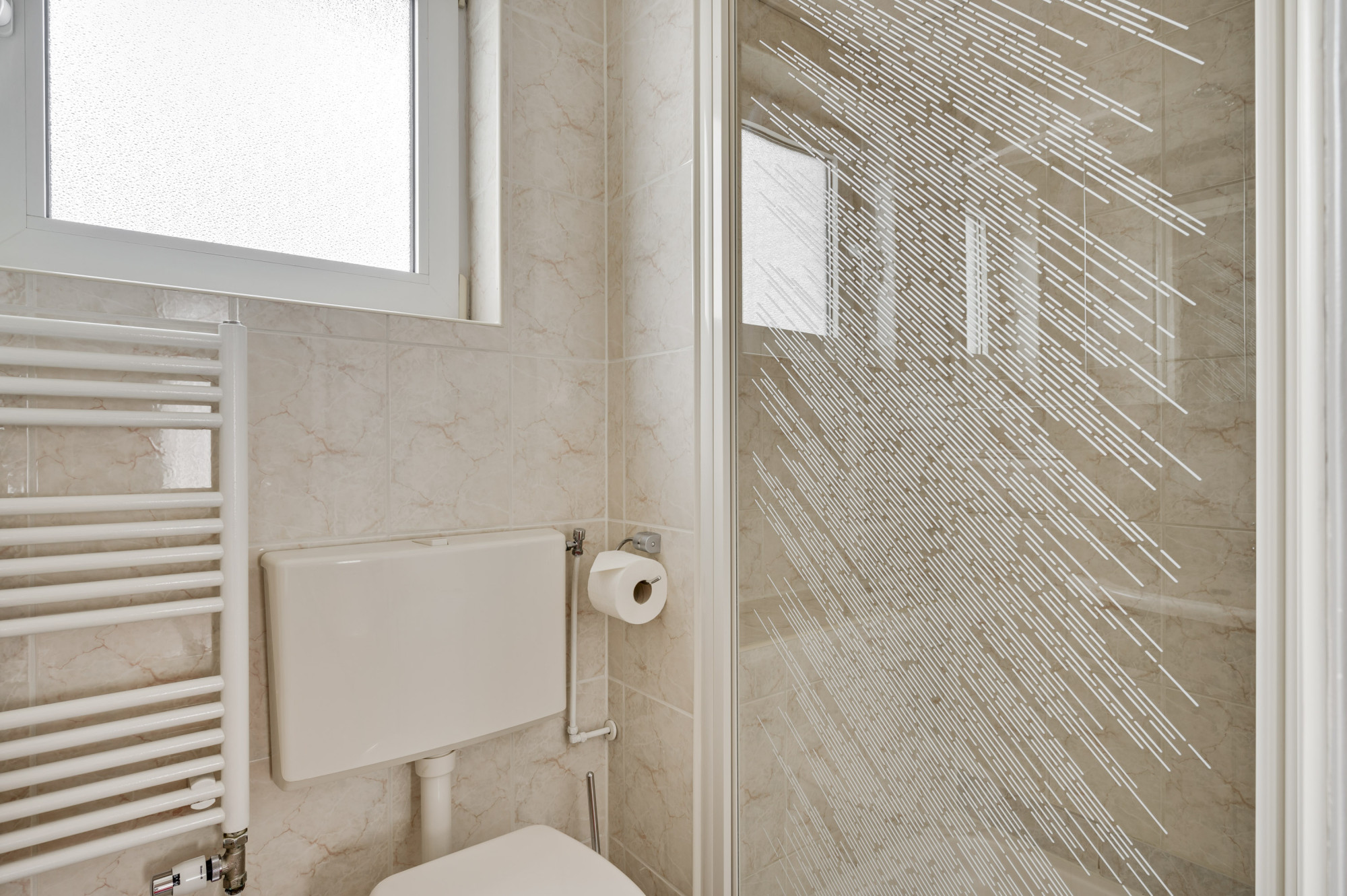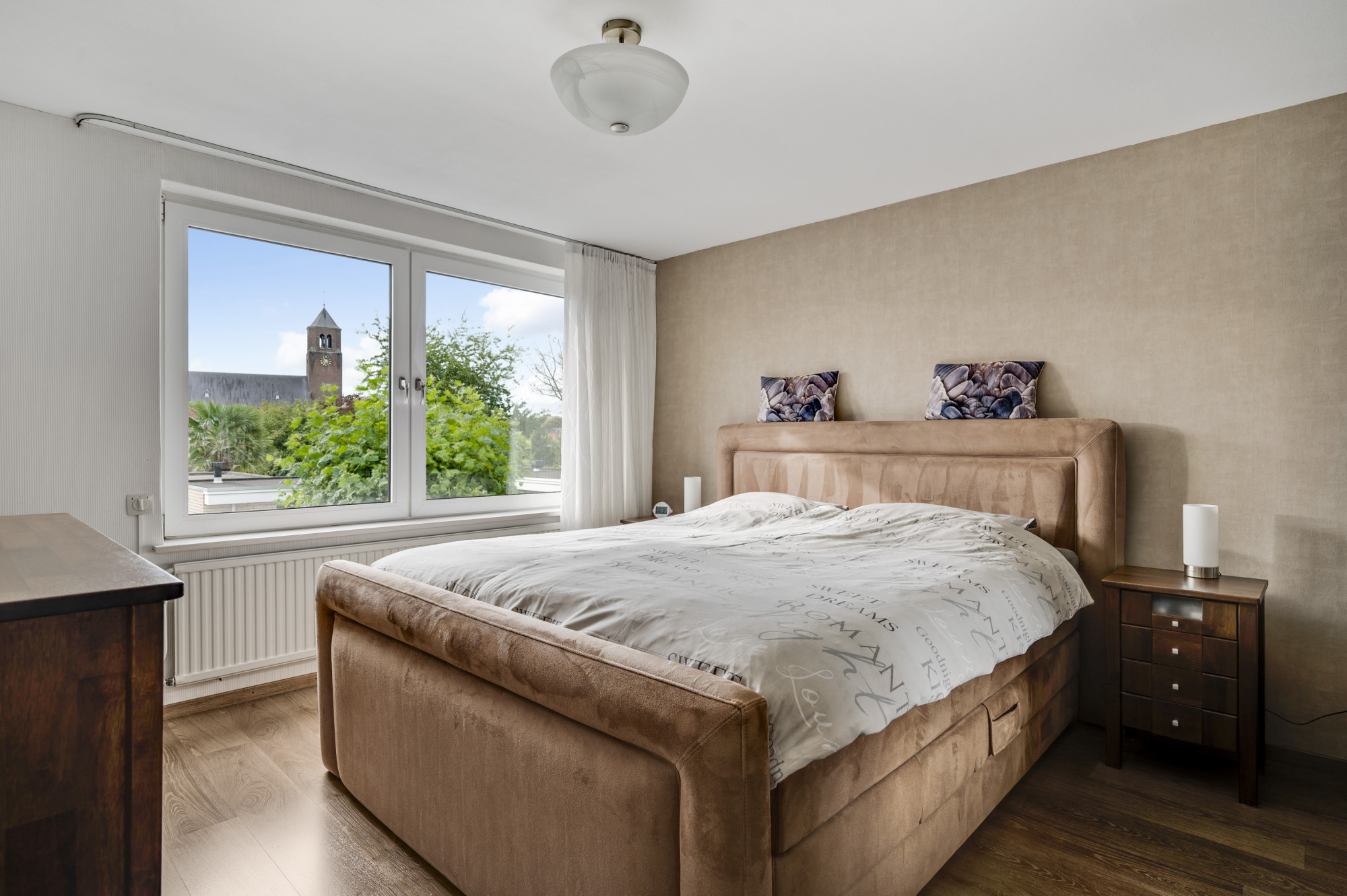 De tweede verdieping is bereikbaar via een vaste trap. Hier vindt u een ruime overloop met de aansluitingen voor wasmachine en droger, de opstelling van de cv-ketel (Intergas HR, ca. 2016, huur) en toegang tot de vierde slaapkamer. Deze kamer beschikt over een dakraam en extra bergruimte in het knieschot, ideaal als logeer- of werkkamer.