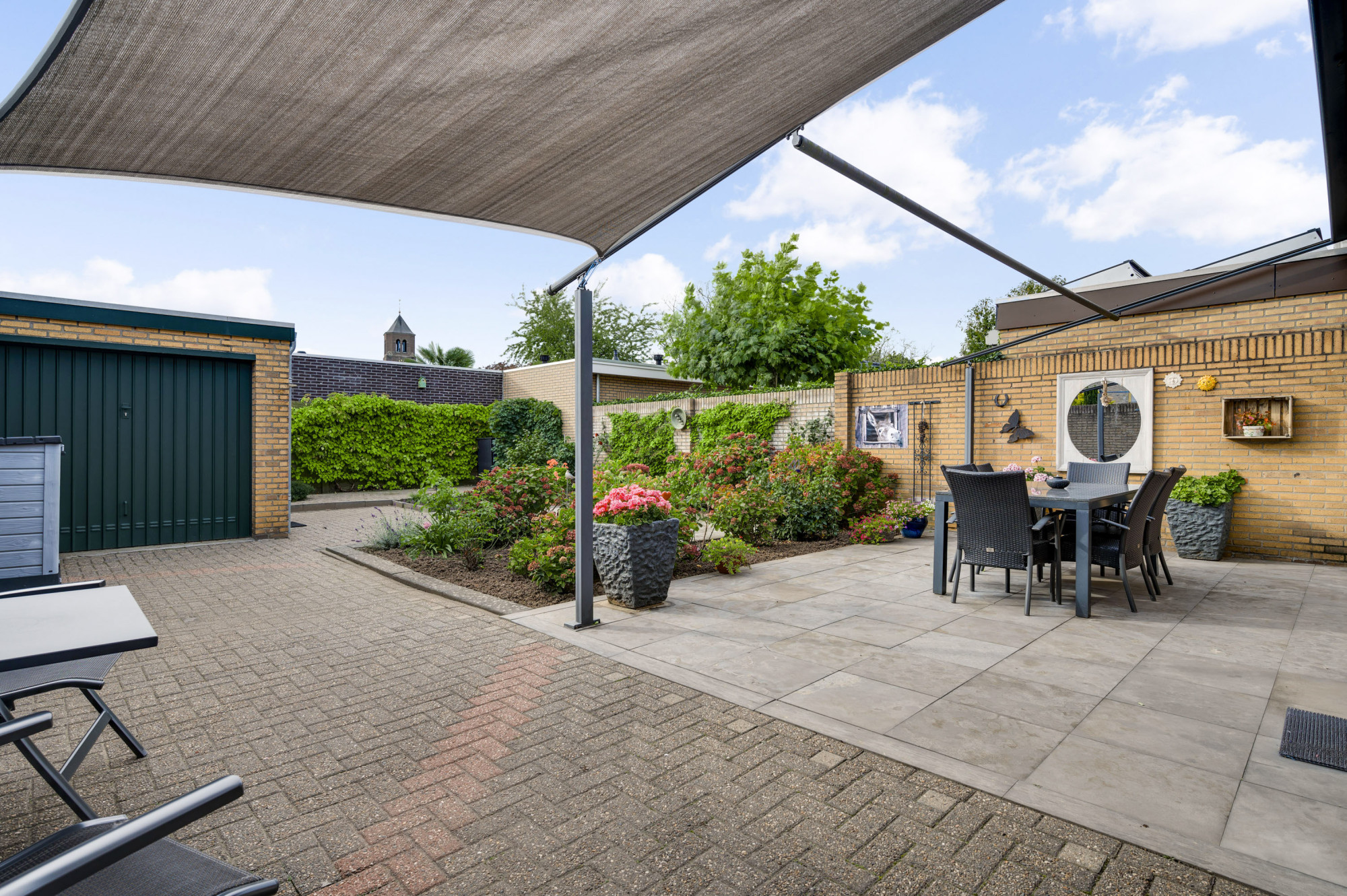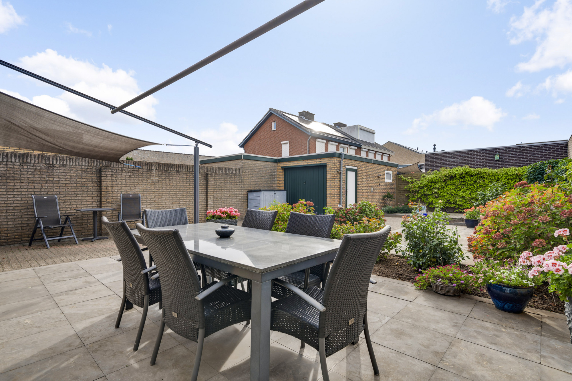 Ook buiten is het prettig wonen. Aan de voorzijde beschikt u over een verzorgde voortuin met een diepe oprit, die via een afsluitbare poort toegang biedt tot de achtertuin. De achtertuin biedt veel privacy en is voorzien van een terras met een elektrisch zonnescherm, bestrating en borders. Achter in de tuin staat een vrijstaande garage met ruimte voor opslag, hobby of het stallen van een auto.