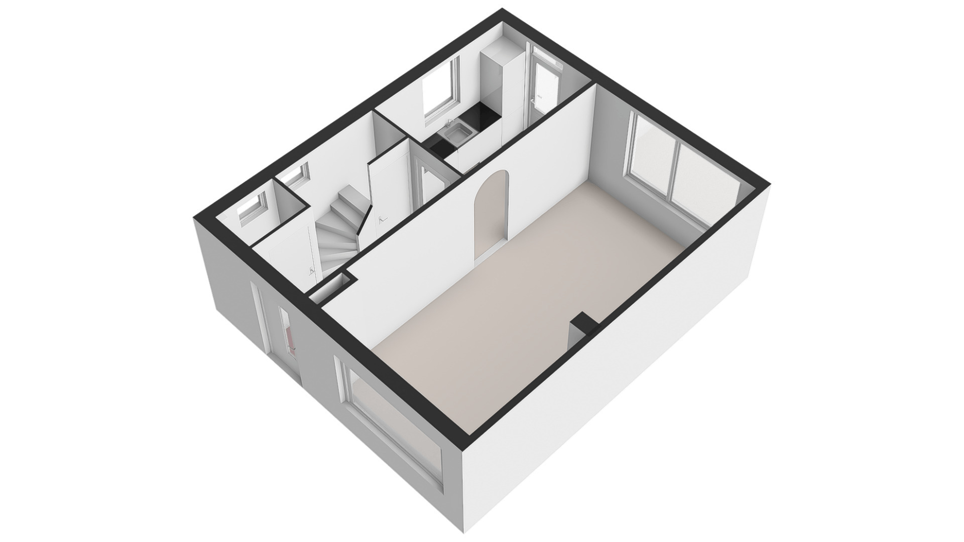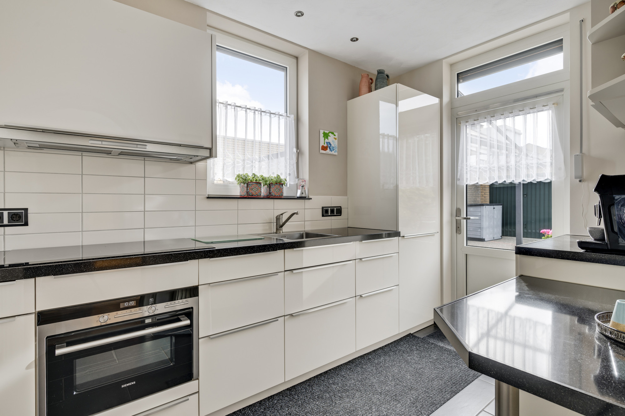Bij binnenkomst betreedt u de hal met toegang tot de toiletruimte, de meterkast, een praktische trapkast en de trapopgang naar de eerste verdieping. Vanuit de hal loopt u door naar de halfopen keuken, die is ingericht met een moderne opstelling in twee delen. De keuken is voorzien van diverse inbouwapparatuur, waaronder een inductiekookplaat, afzuigkap, combi-oven en een koel-/vriescombinatie. Via een loopdeur heeft u toegang tot de achtertuin. Aansluitend bereikt u de lichte woonkamer, waar grote ramen aan de voor- en achterzijde zorgen voor een prettige lichtinval en een uitnodigende sfeer. Deze leefruimte biedt voldoende plek voor zowel een gezellige zithoek als een ruime eettafel.