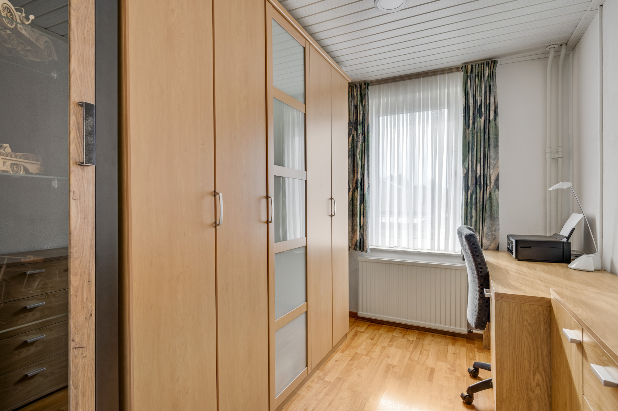 Op de eerste verdieping geeft de overloop toegang tot drie goed bemeten slaapkamers. De badkamer is compleet uitgerust met een douche, toilet, wastafel en bijpassend meubel. Ook deze verdieping is netjes afgewerkt en goed onderhouden.