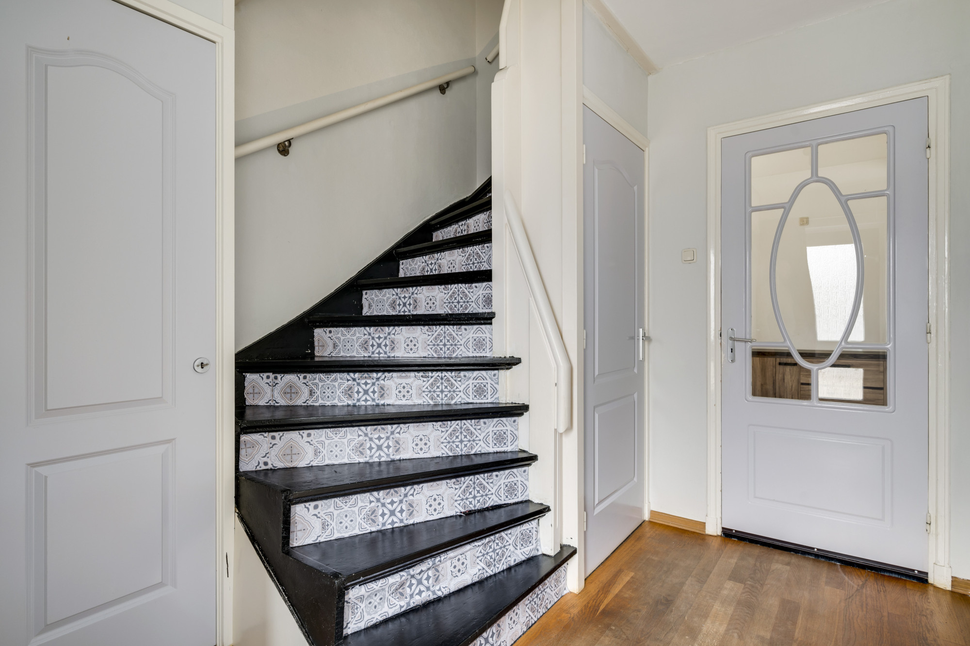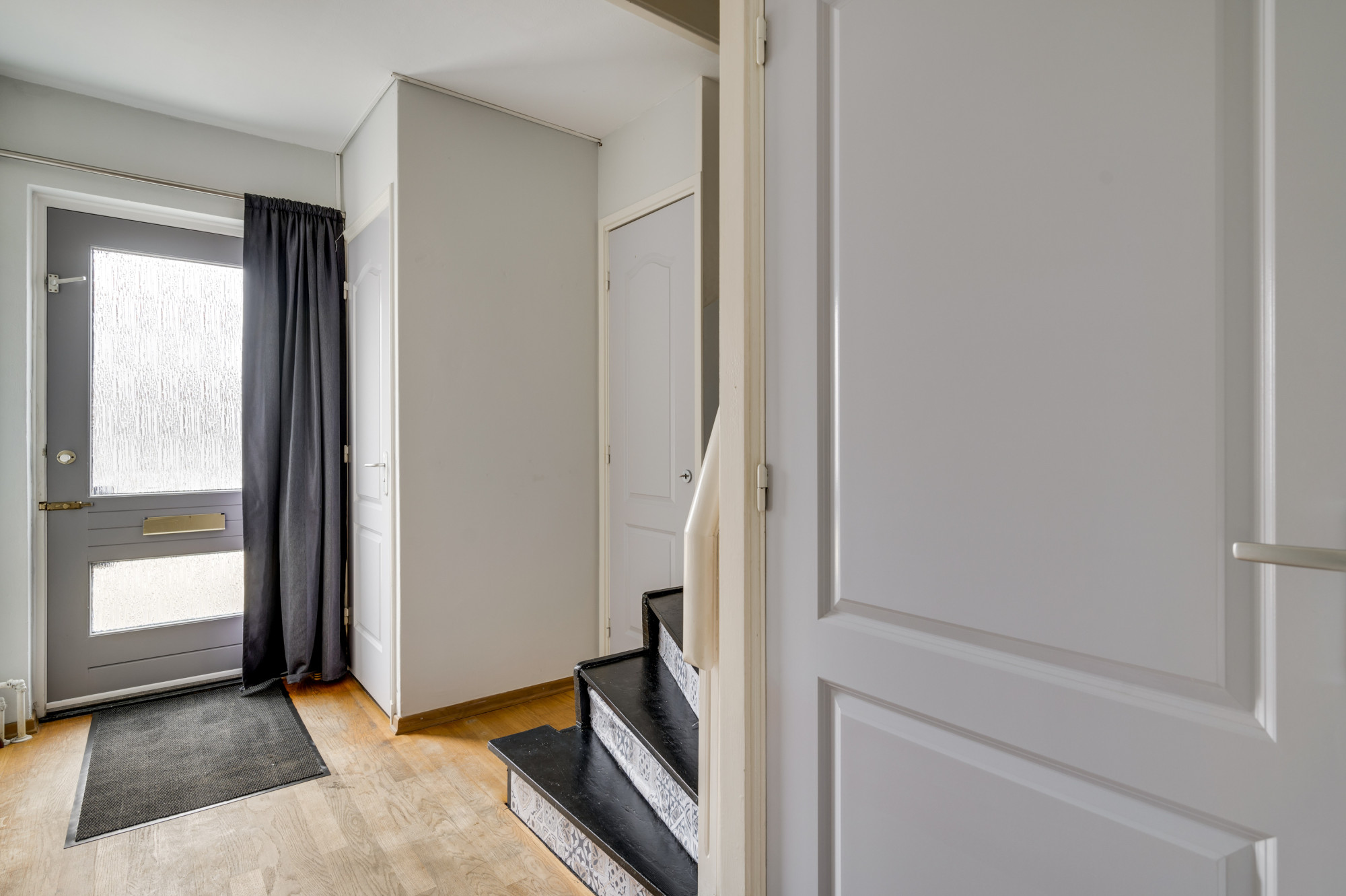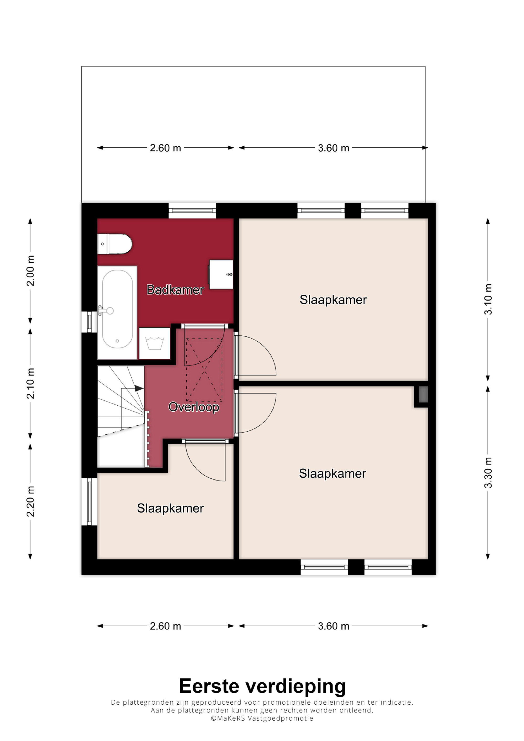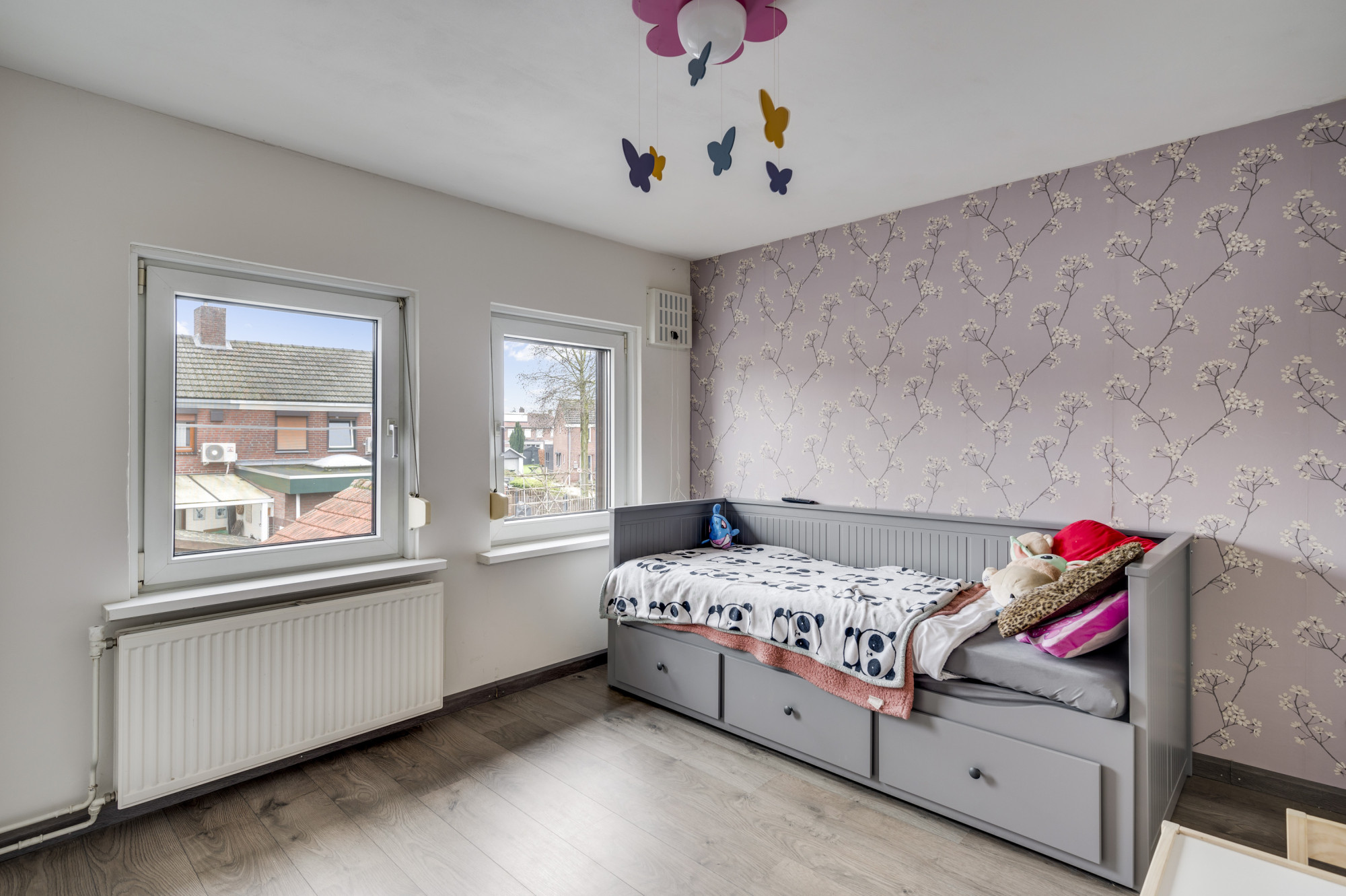 De overloop geeft hier toegang tot 3 slaapkamers, allen voorzien van een fraaie doorlopende laminaatvloer. De badkamer is uitgerust met een nette pvc-vloer en een ligbad, douche, badkamermeubel met wastafel en een zwevend toilet en hier bevindt zich de wasmachineaansluiting.