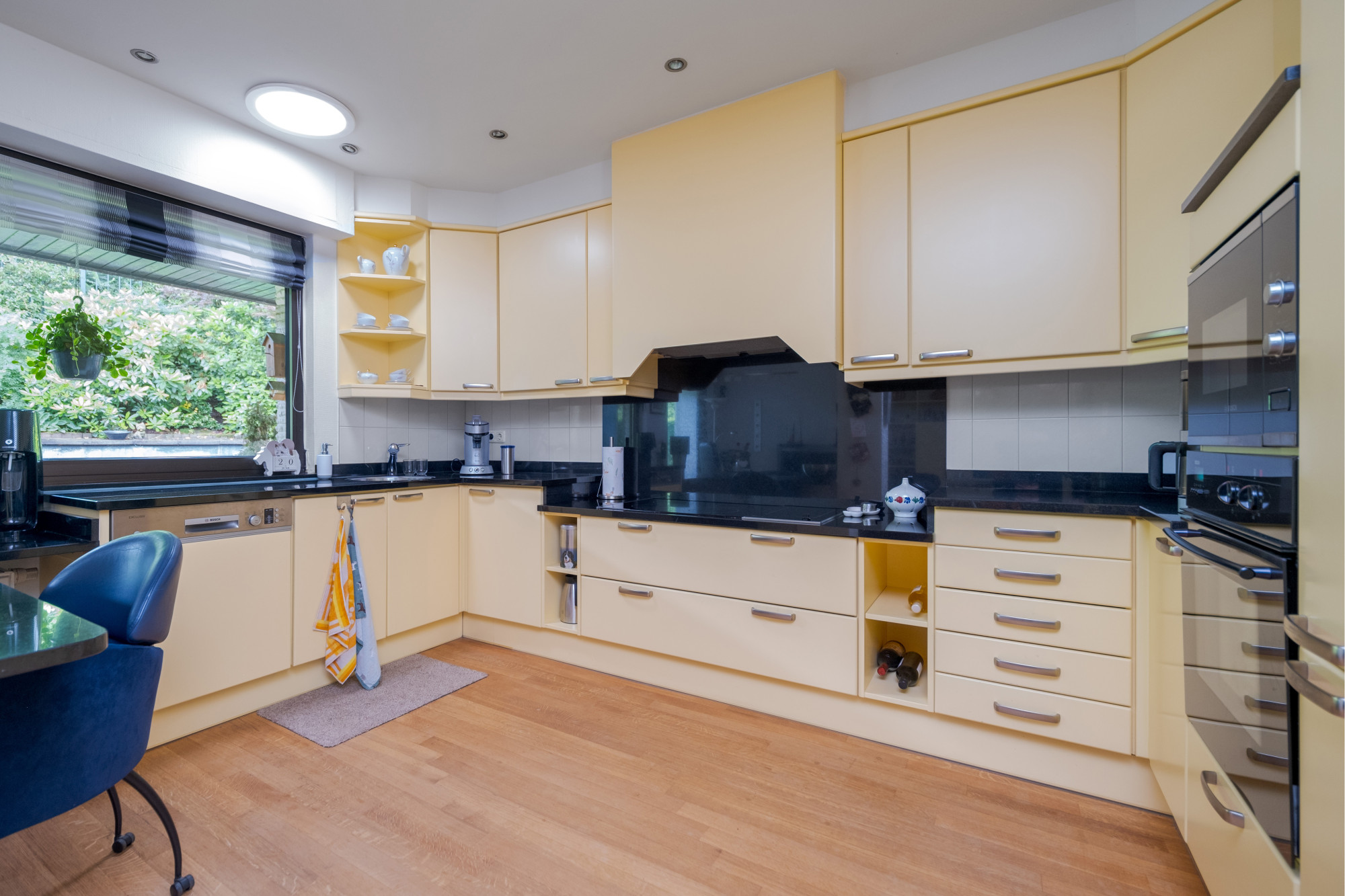 Bijkeuken/bergruimte/wasruimte (3.68mx2.92m), tegelvloer en kleine aanrecht, In het keukentje zit nog een vaatwasser, koelkast, diepvriezer en opstelplaats voor wasmachine en droger.