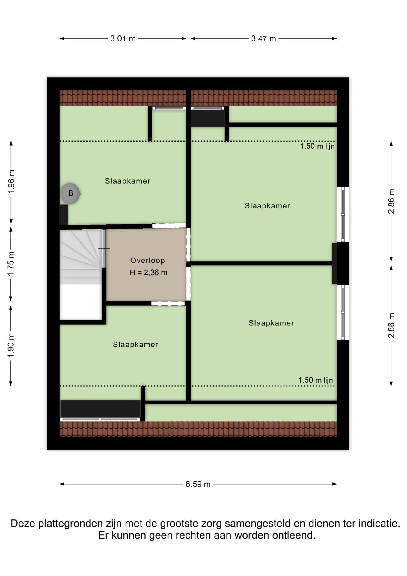 Alle door ons kantoor verstrekte informatie omtrent onroerende zaken, moet beschouwd worden als een uitnodiging om in onderhandeling te treden, en is geheel vrijblijvend! Alle vermelde maten en afmetingen zijn slechts bij benadering. Aan deze beperkte info kunnen geen rechten worden ontleend. Indien in enige documentatie of op enige website informatie staat die niet overeen komt met de werkelijkheid, dan geldt de feitelijke situatie waarin de woning zich bevindt, zoals koper deze tijdens de bezichtiging heeft kunnen waarnemen, en wordt de woning in deze feitelijke situatie/staat verkocht. Een (eventueel) bijgevoegde plattegrond dient uitsluitend als globale indicatie/visualisatie. Hieraan kunnen uitdrukkelijk geen rechten worden ontleend.