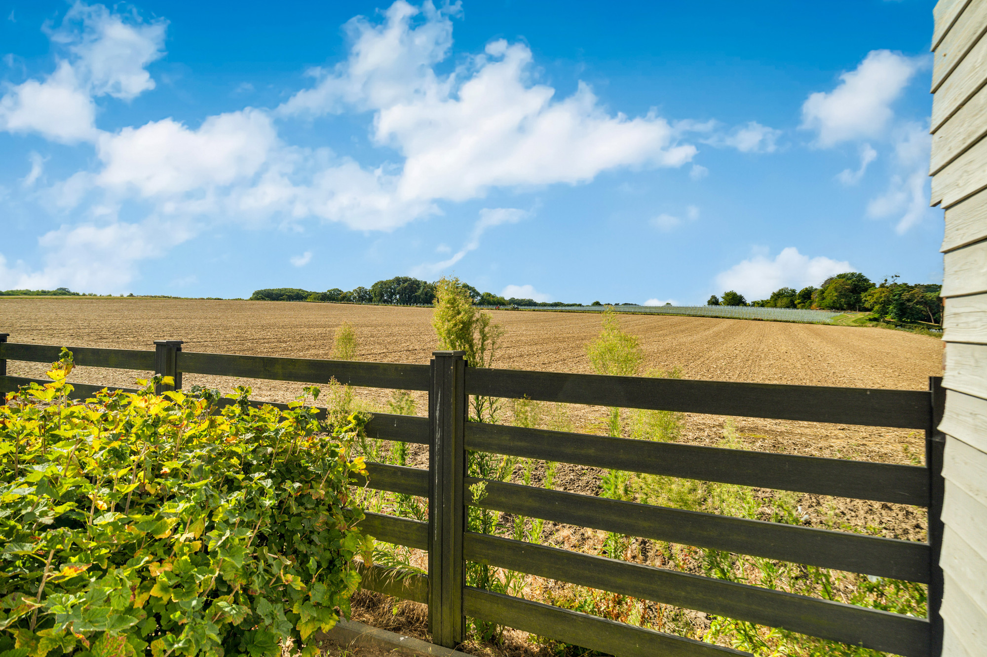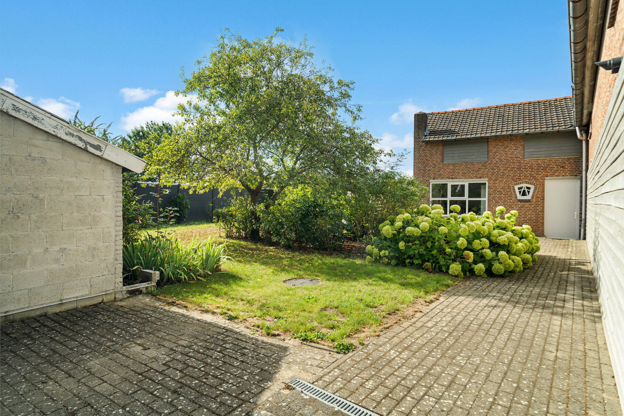 Vanuit de keuken stap je de tuin in. Hier geniet je onder de overkapping van een gezellig eetgedeelte en een prachtig vrij uitzicht over de achterliggende landerijen. De tuin is deels betegeld, deels groen en voorzien van een poort met oprit. Ook aan de voorzijde is de woning fraai aangelegd met kiezels en bloemen.