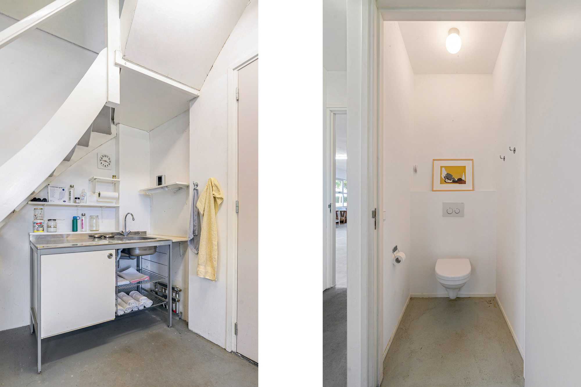- De tweede ruimte beschikt over een toilet en wateraansluiting met wasbak.