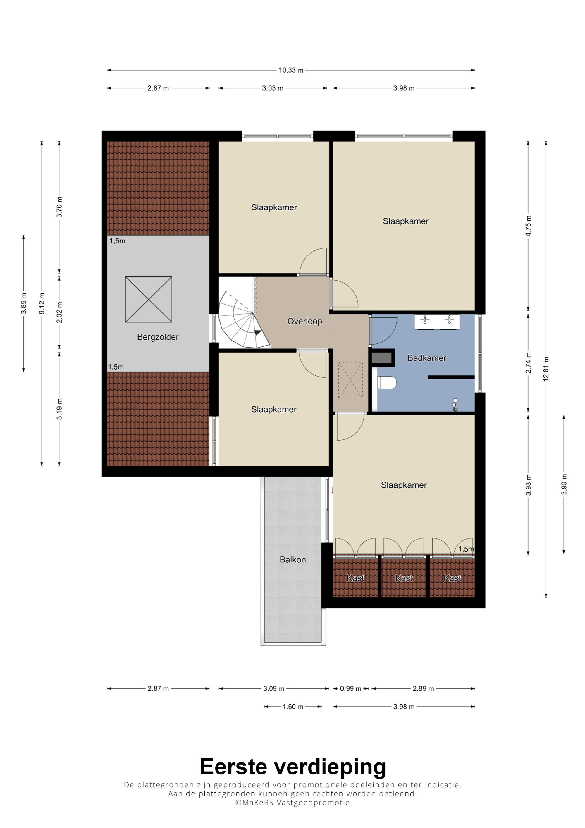 Een bijzonder ruime bergzolder is bereikbaar via een vlizotrap.