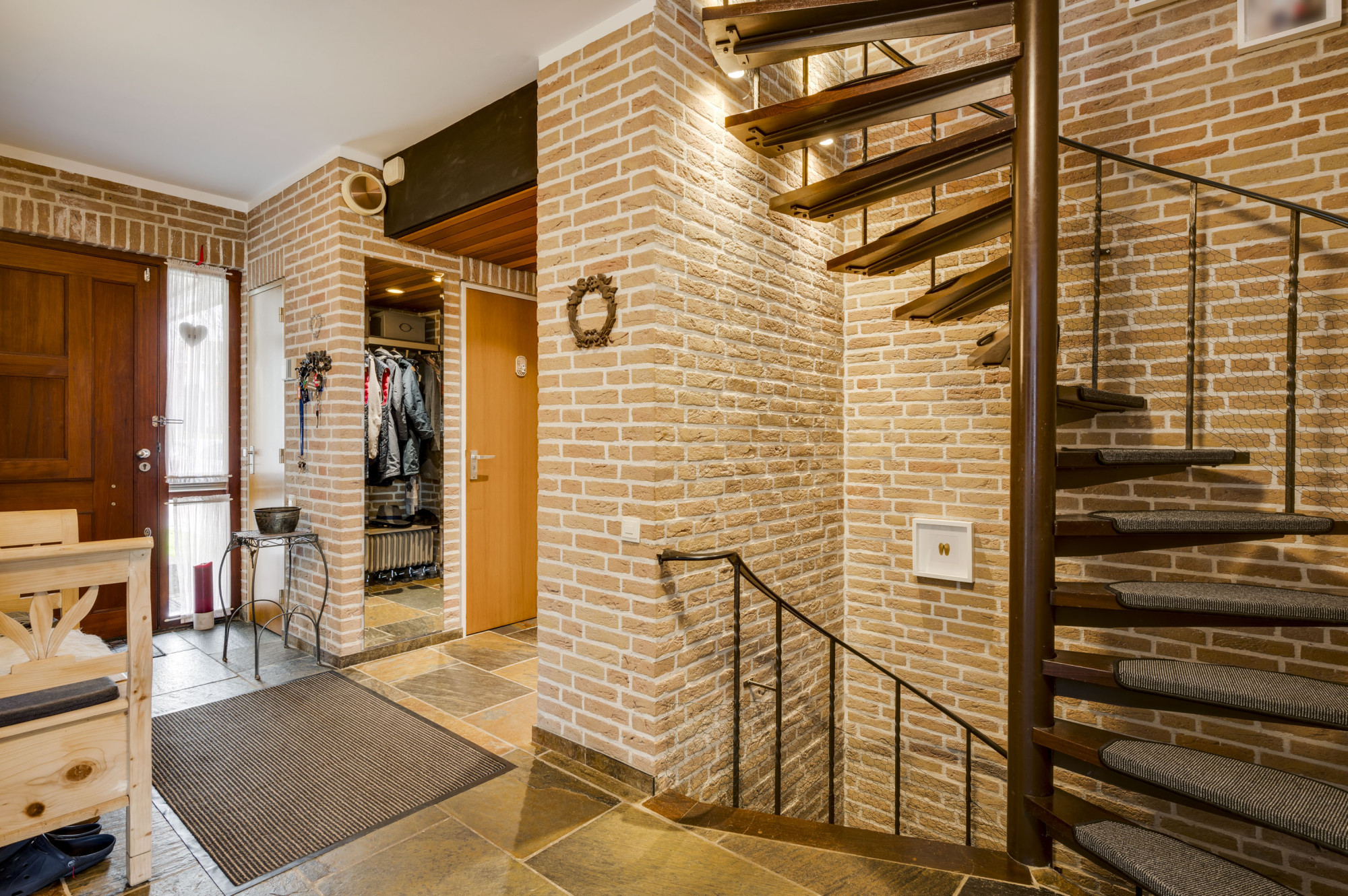 Ruime entree/hal met garderobe-nis, trappenhuis voorzien van een wenteltrap naar de verdieping en het souterrain. Meterkast voorzien van 11 groepsinstallatie / 2x aardlekschakelaar / digitale meters met dag- en nachtstroomaansluiting. Toegang tot de woonkamer middels dubbele pivoterende glazen deuren.