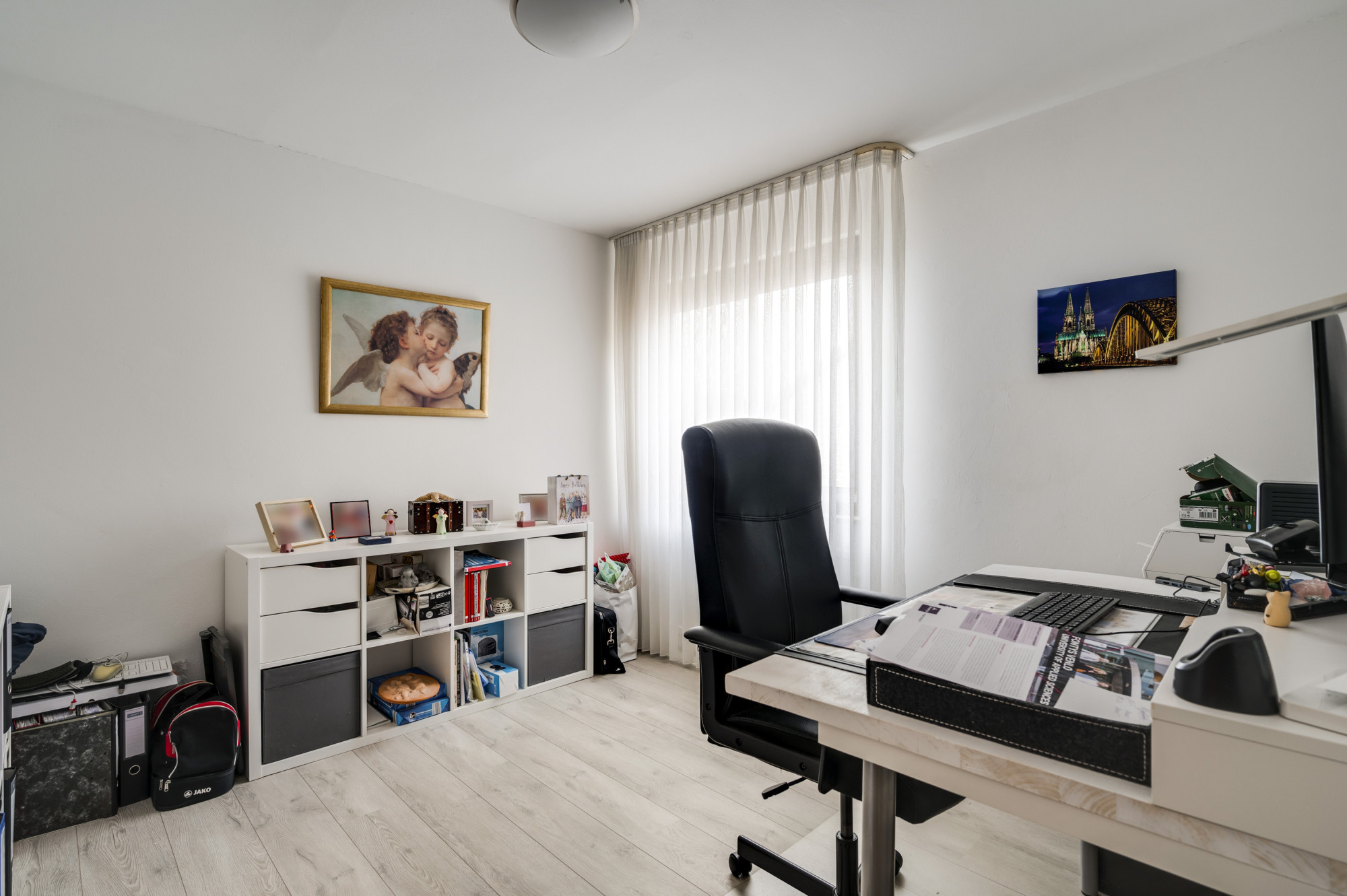 De tweede slaapkamer aan de linker voorzijde is in gebruik als hobby-/studeerkamer.